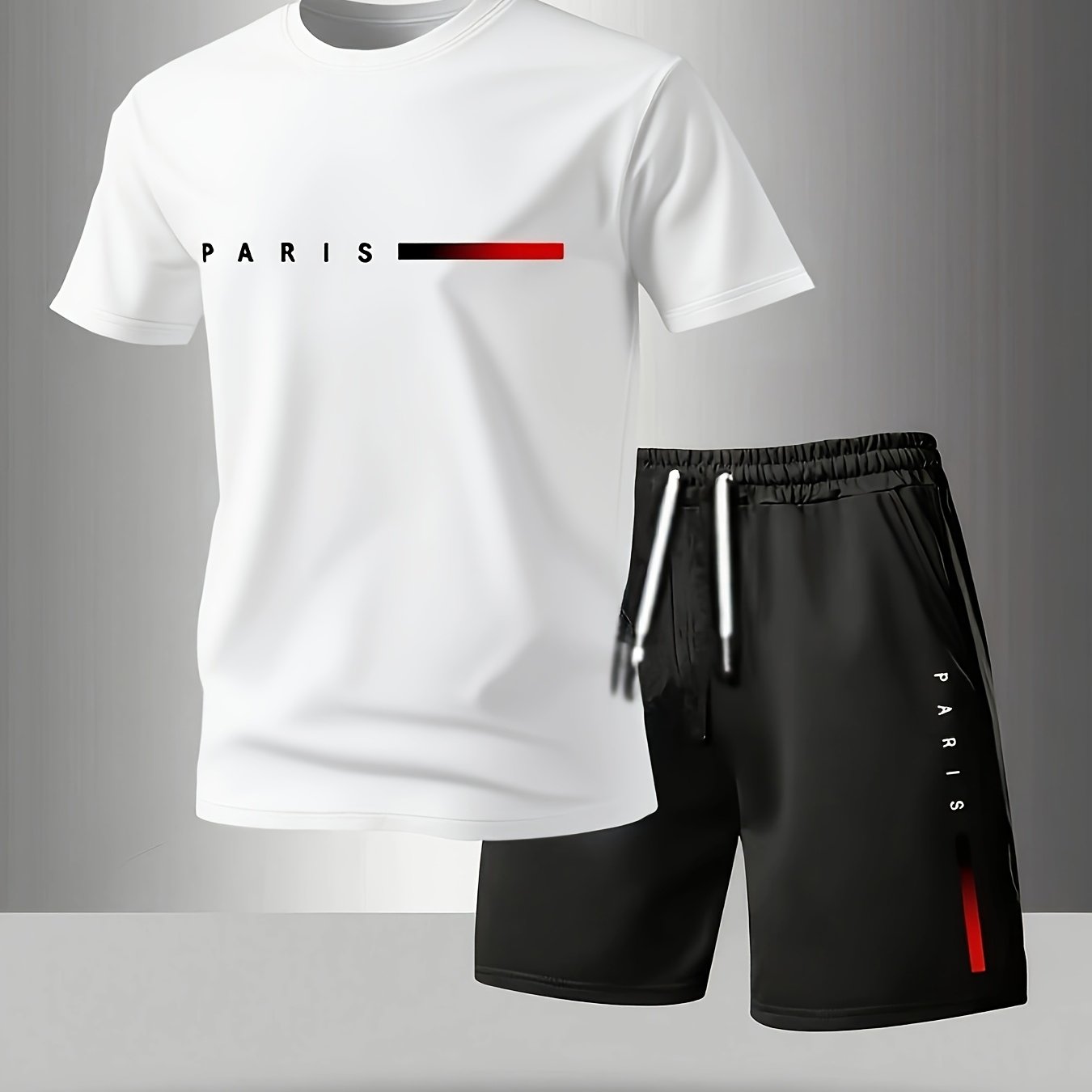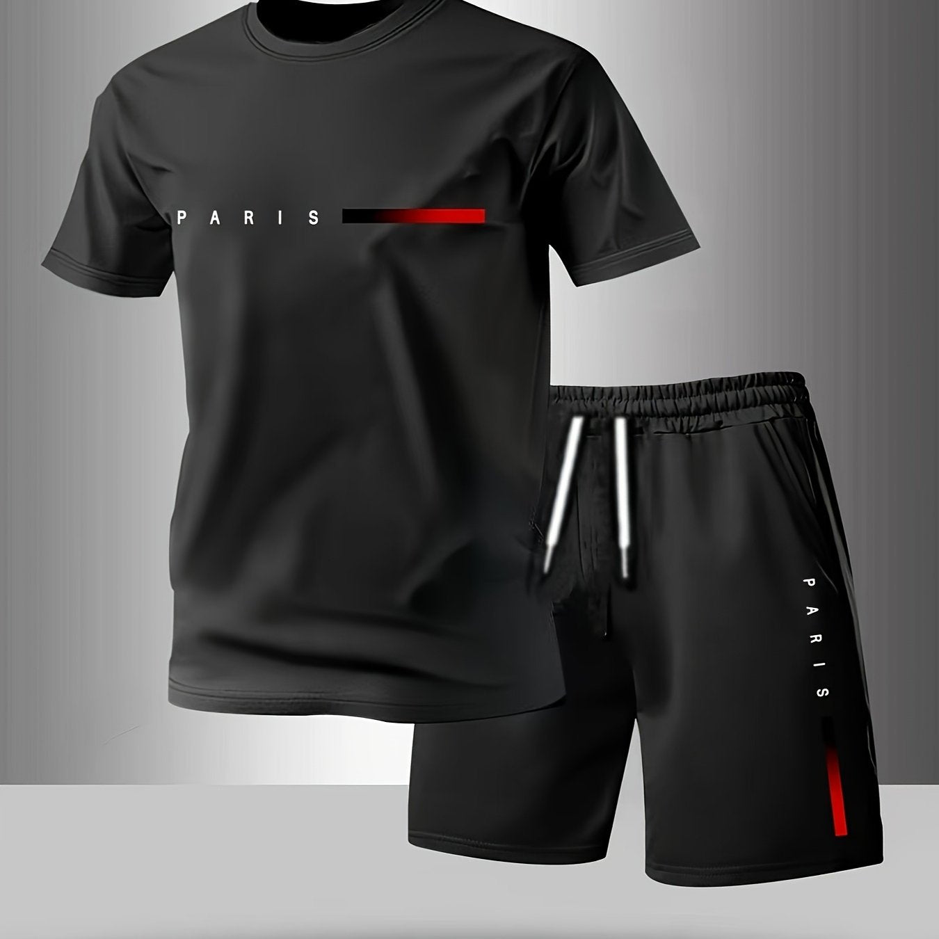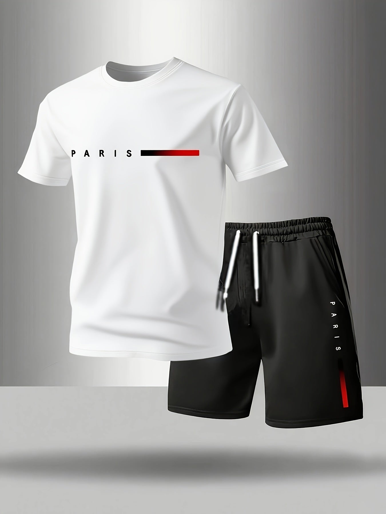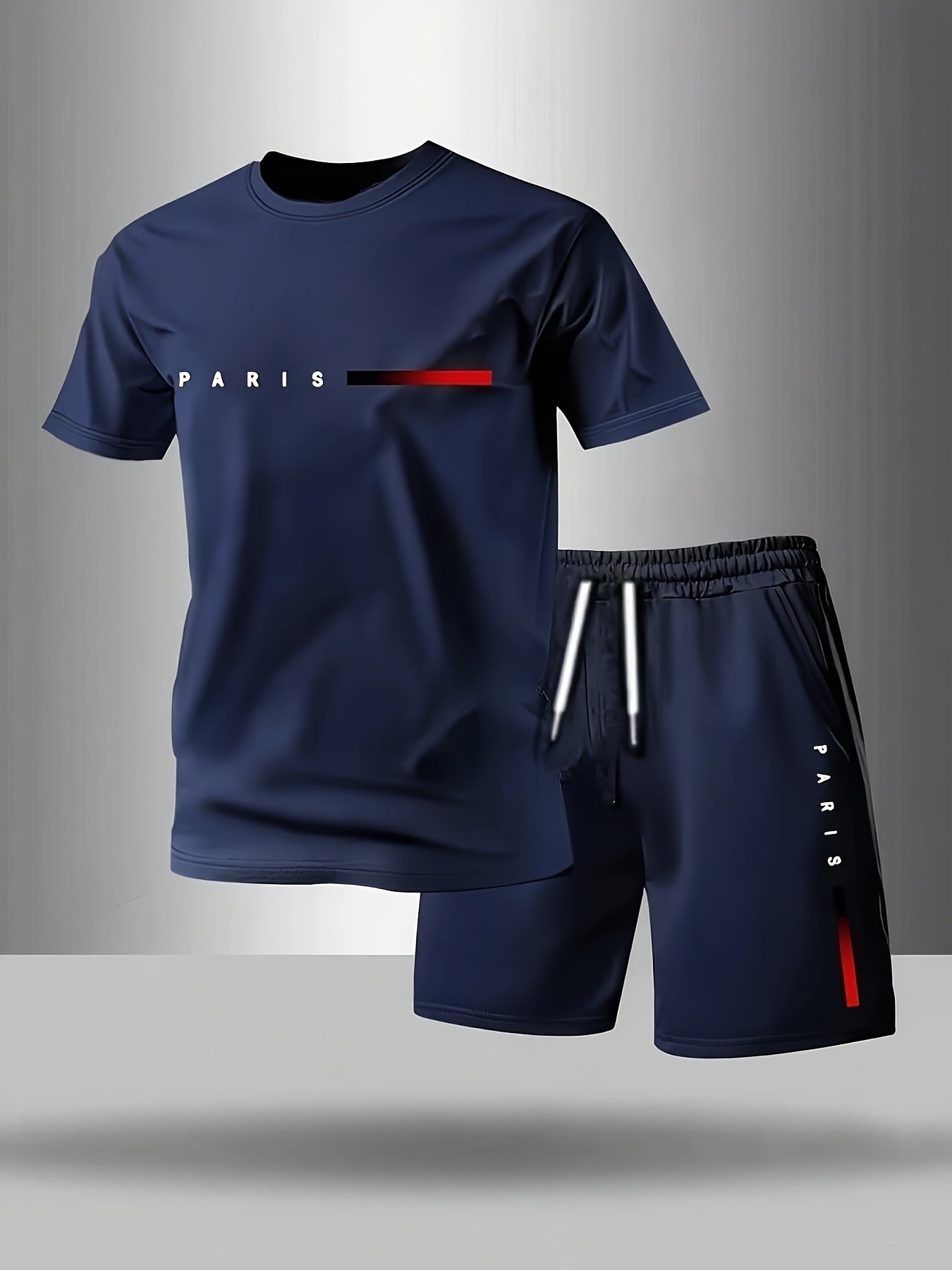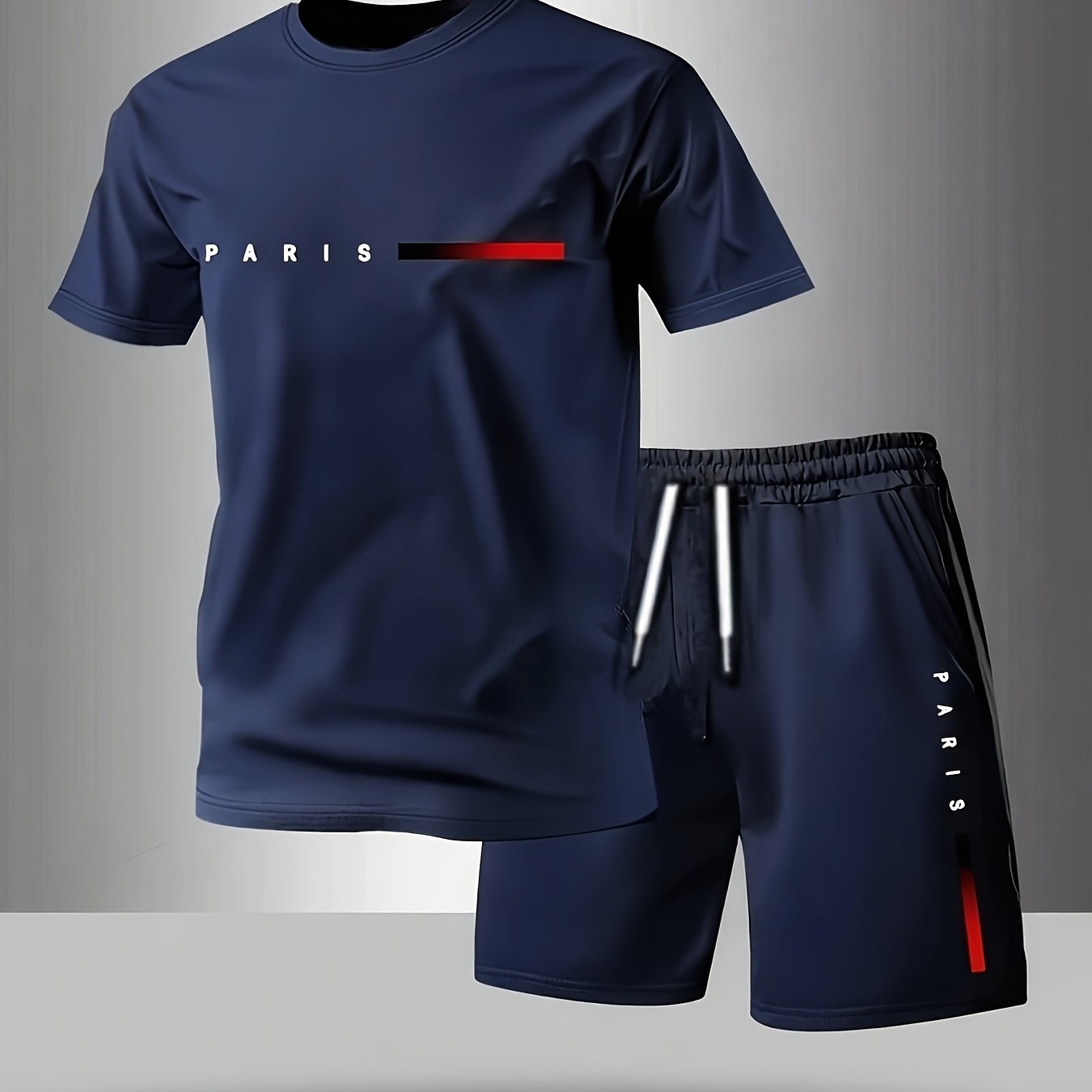 Men's Casual Summer T-Shirt & Shorts Set - Navy Blue Print