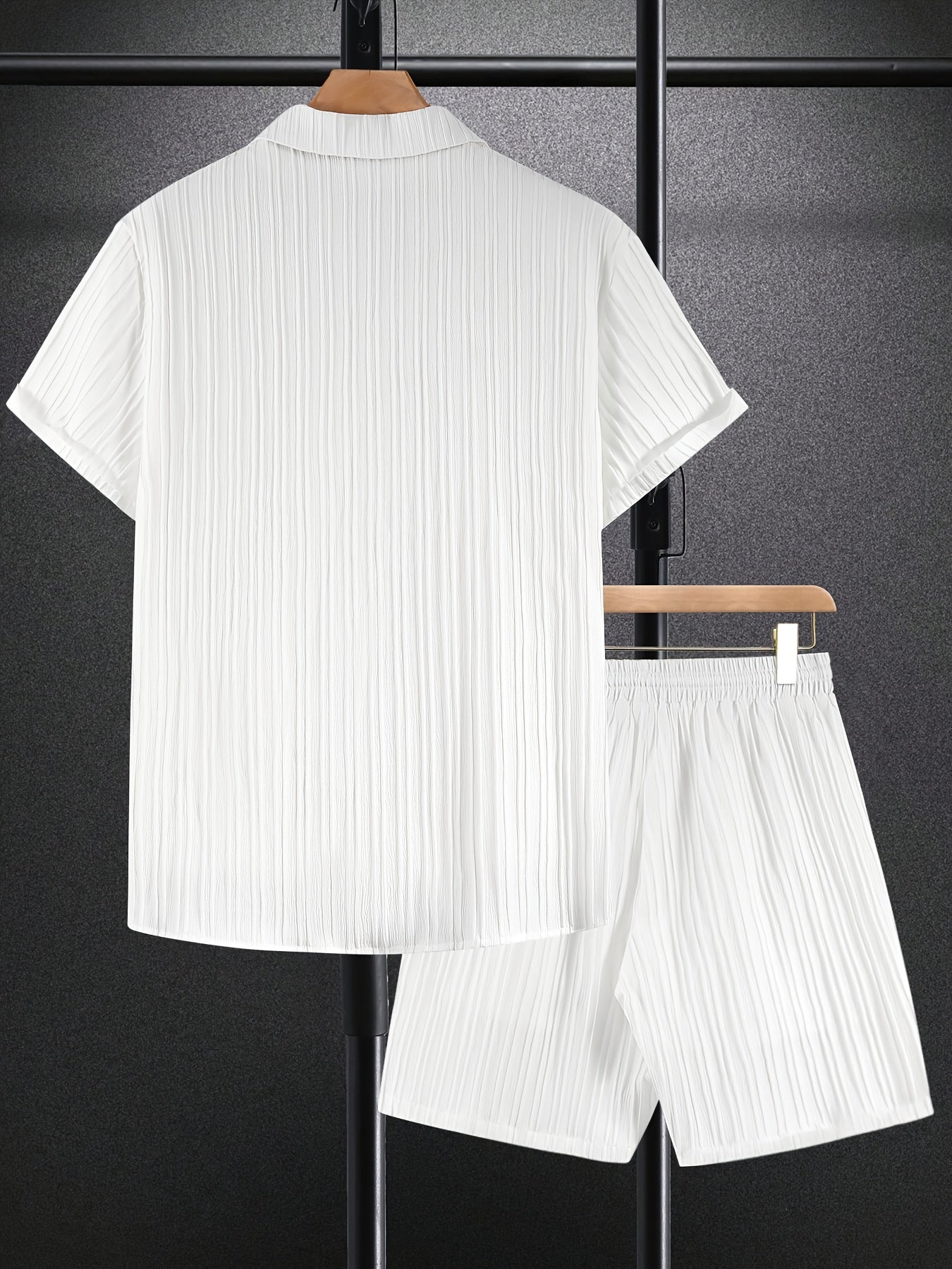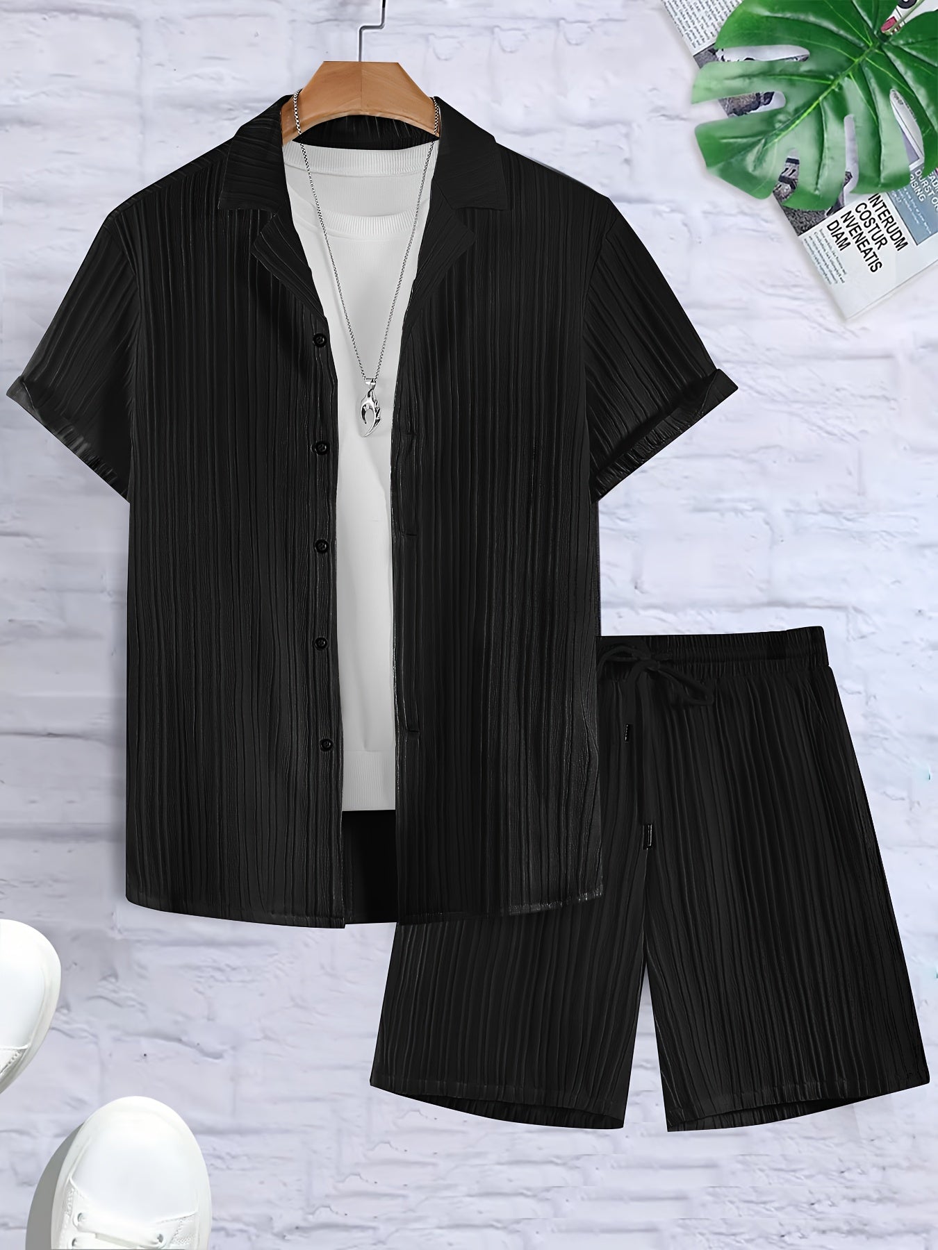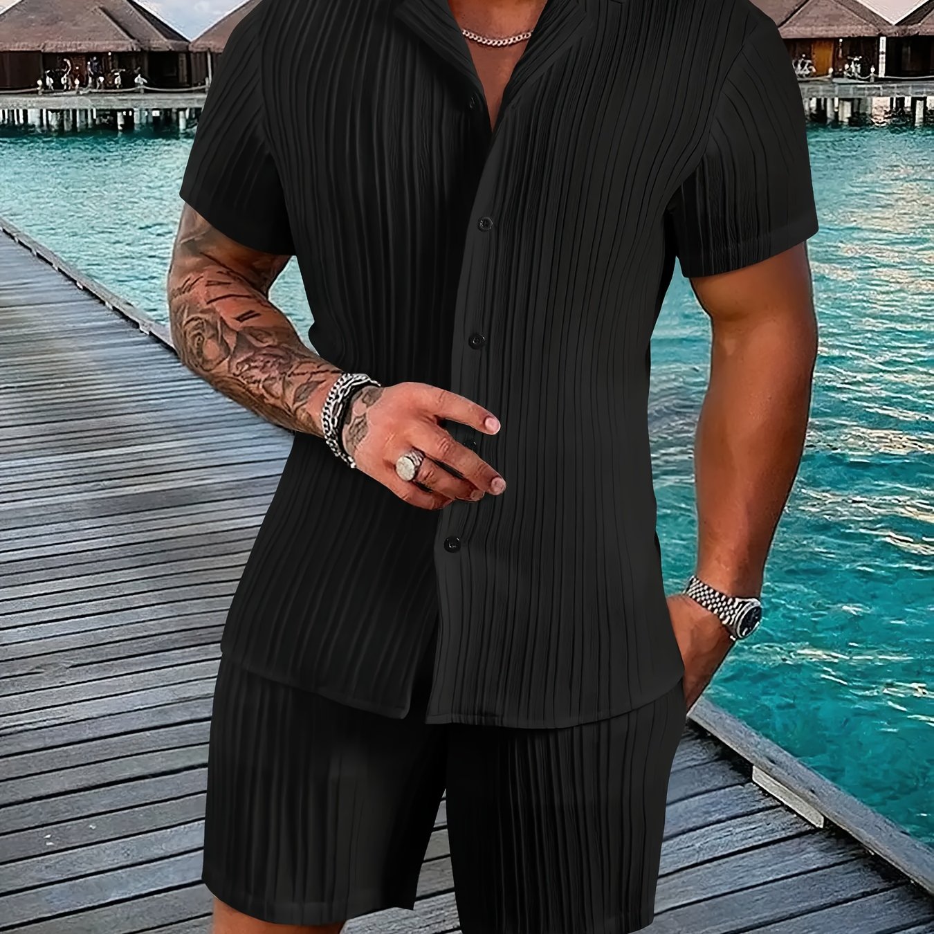 Men's Casual 2-Piece Summer Outfit - Button-Up Shirt & Shorts Set