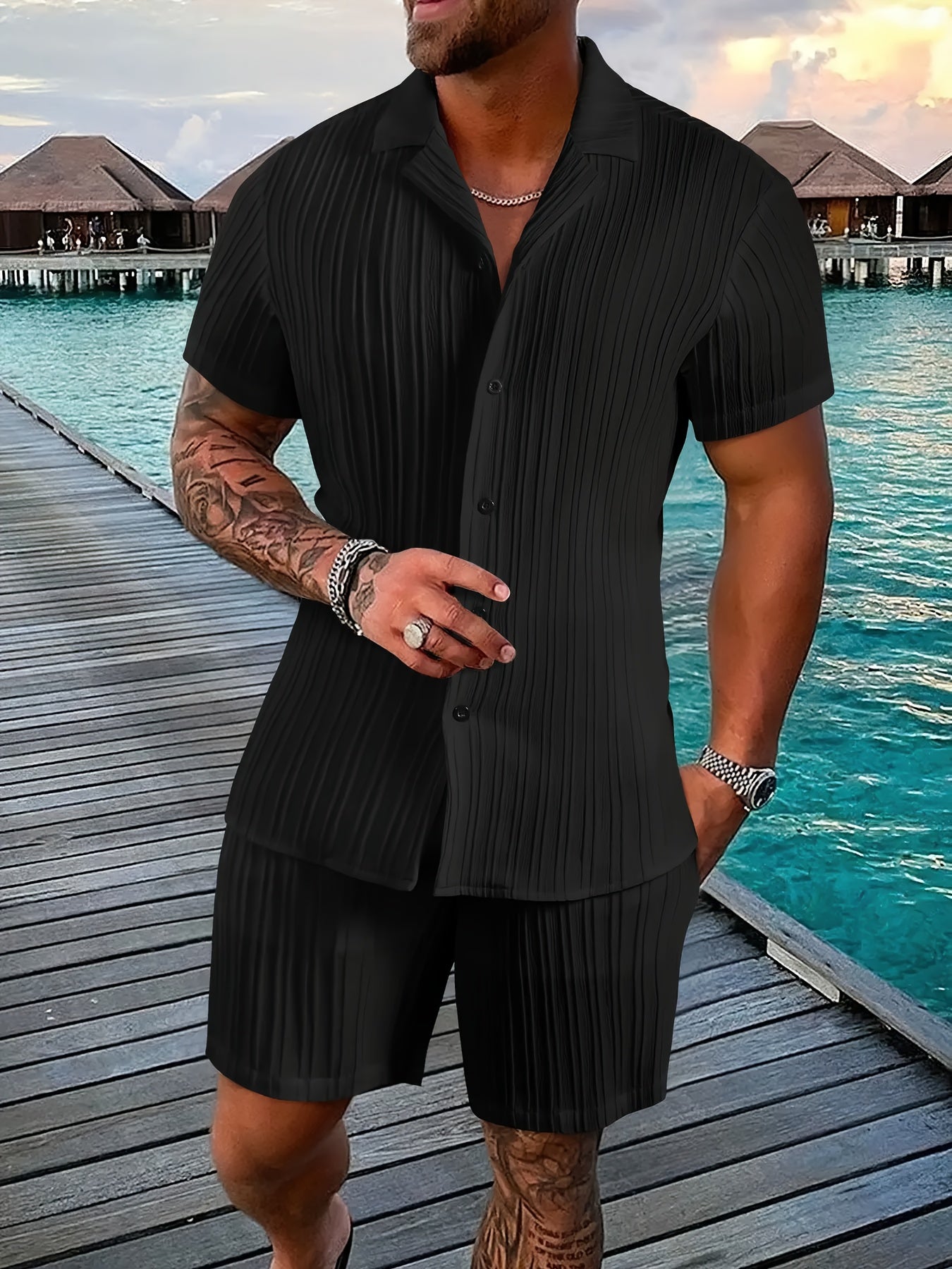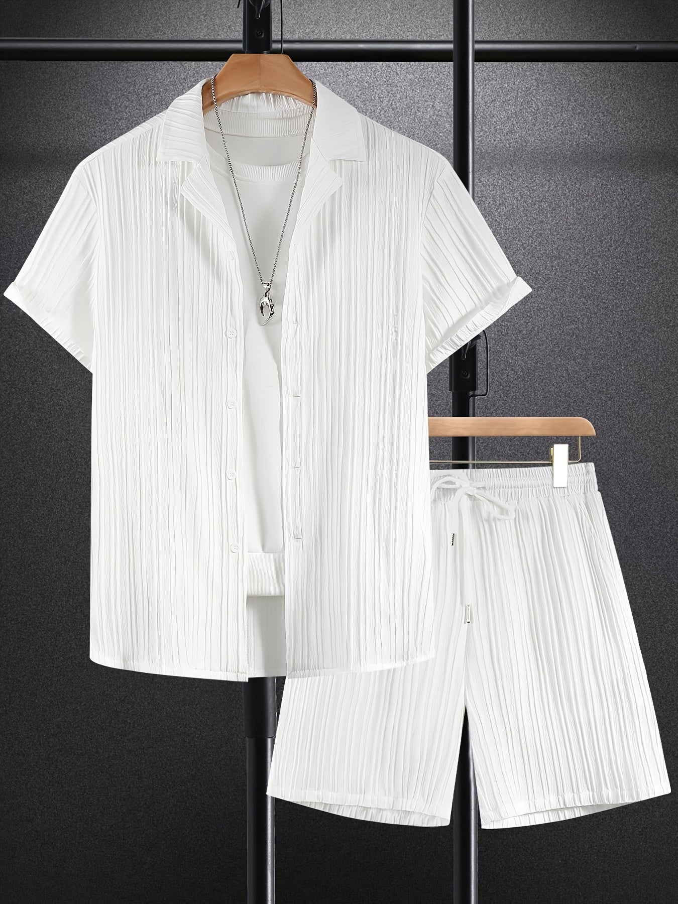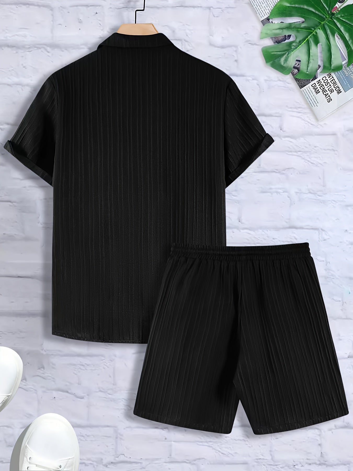 Men's Casual 2-Piece Summer Outfit - Button-Up Shirt & Shorts Set
