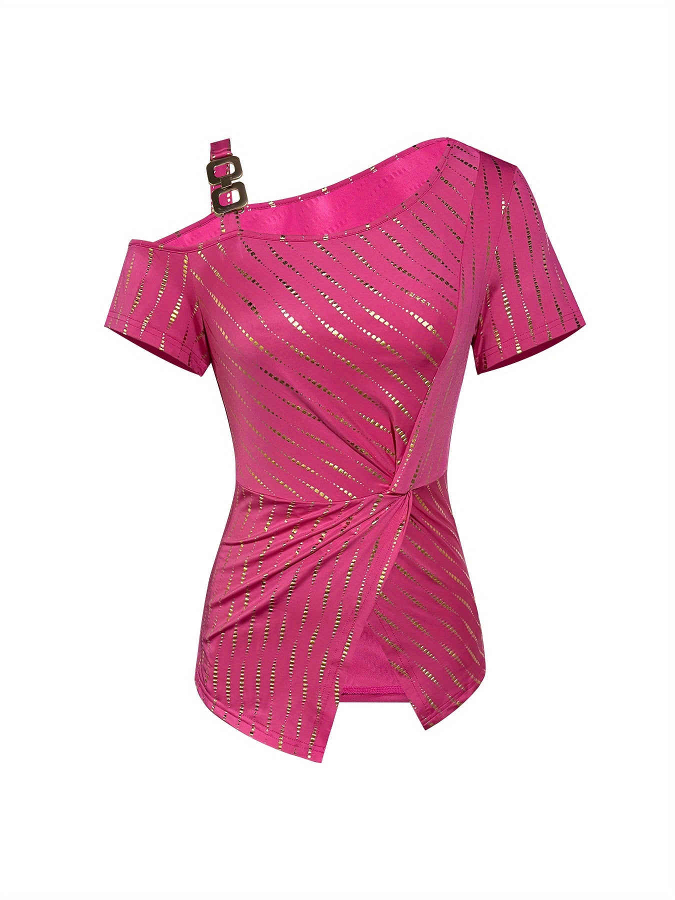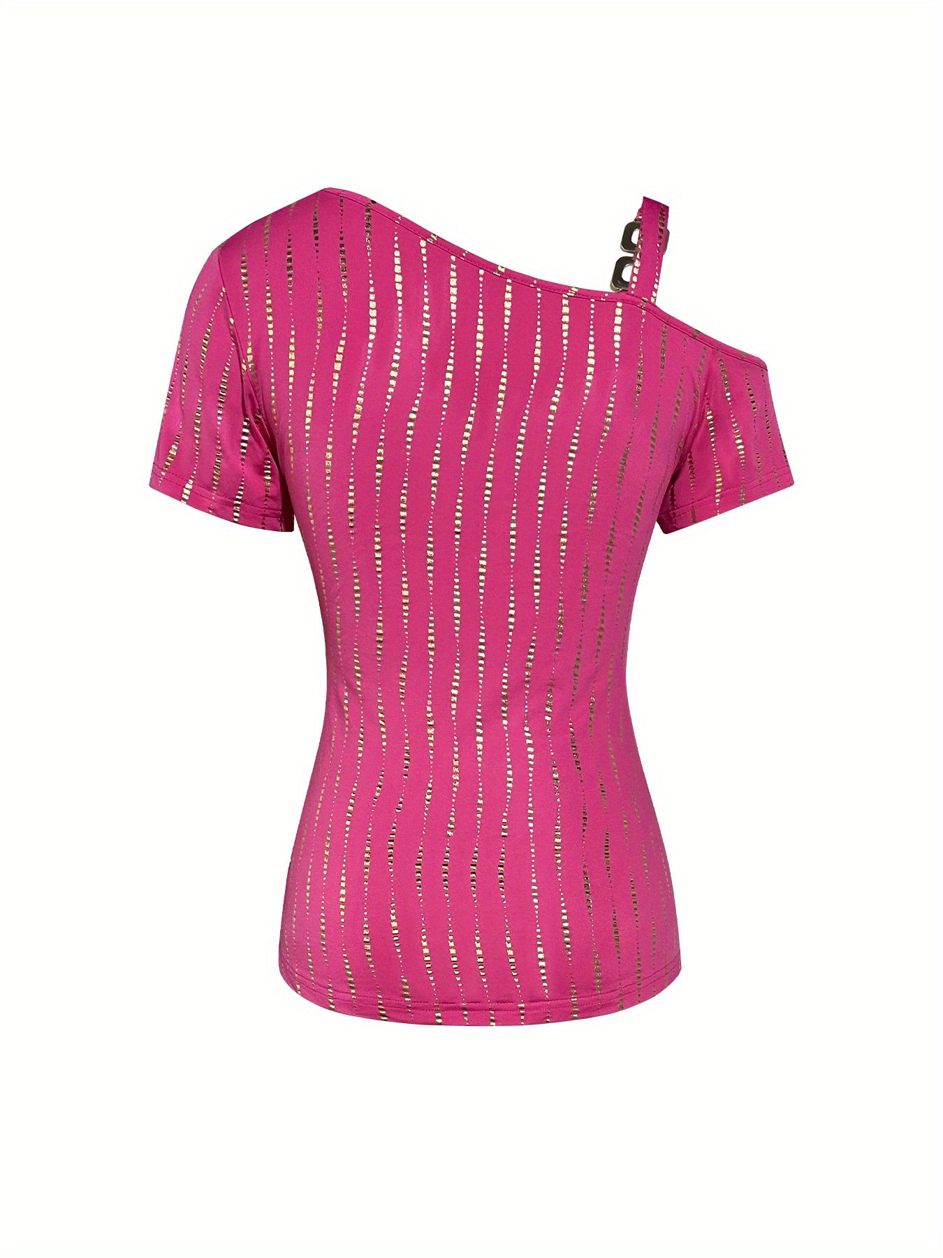 Elegant Striped One-Shoulder Top - Women's Summer Casual Wear