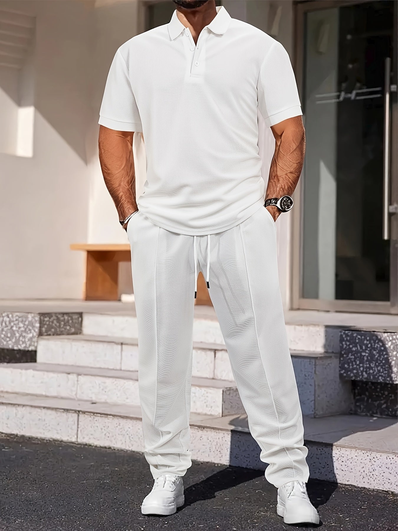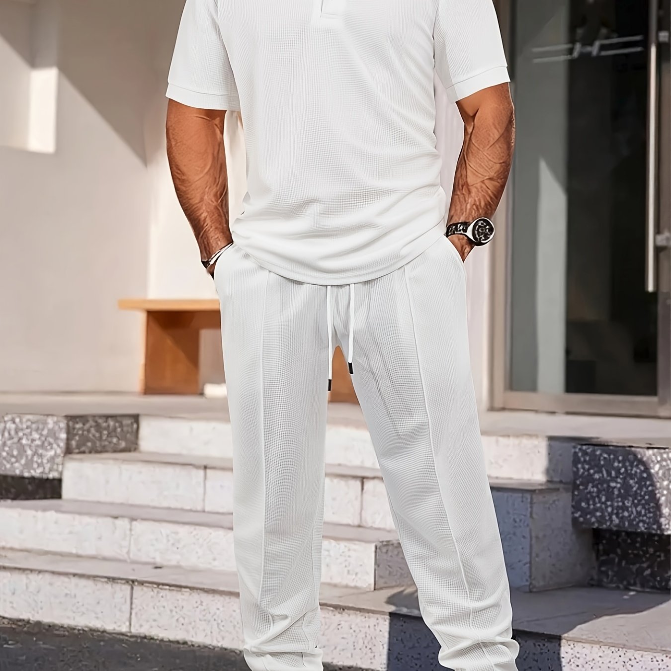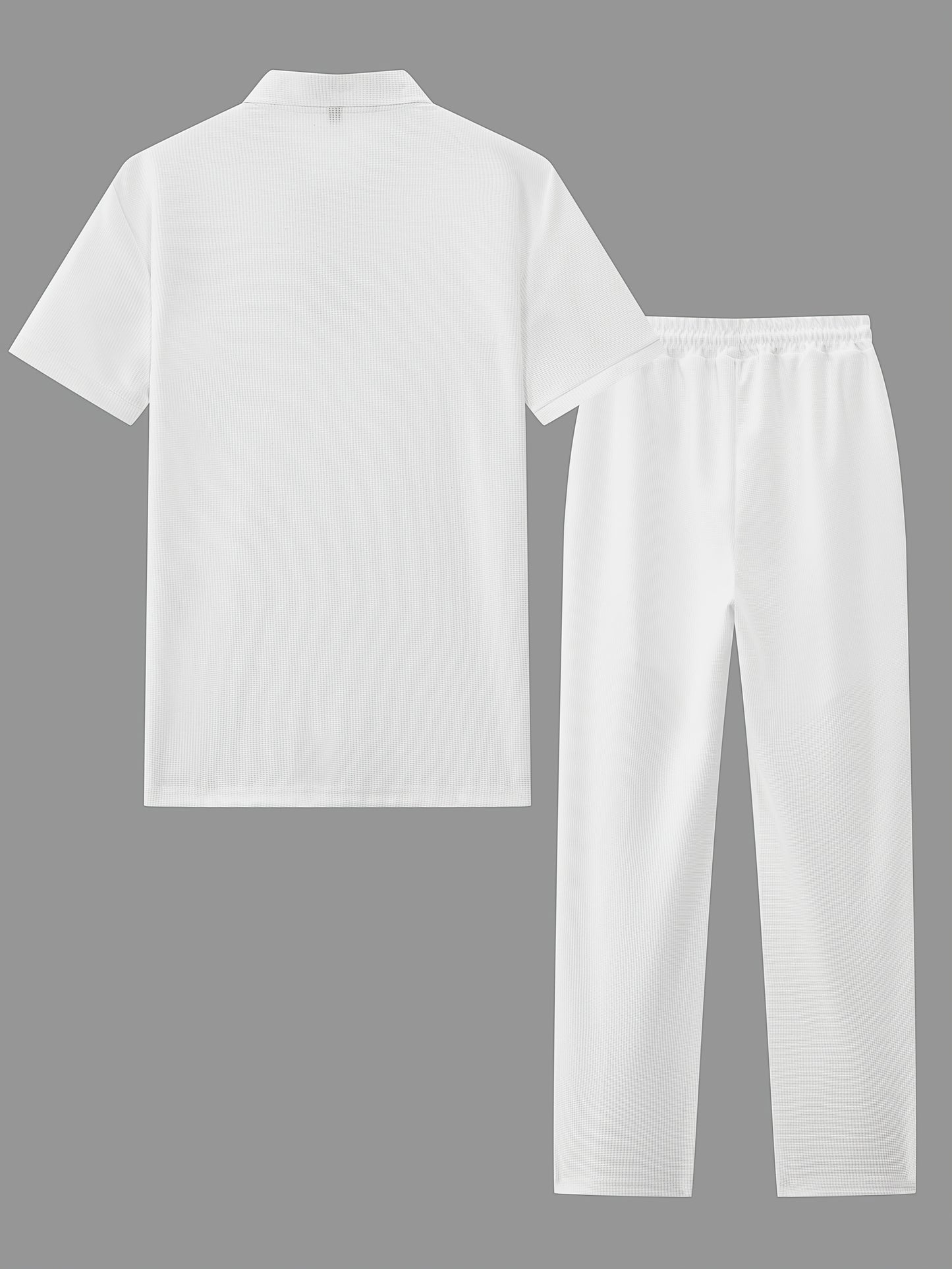 Men's Casual Summer Waffle Suit - Short Sleeve Shirt & Pants Set