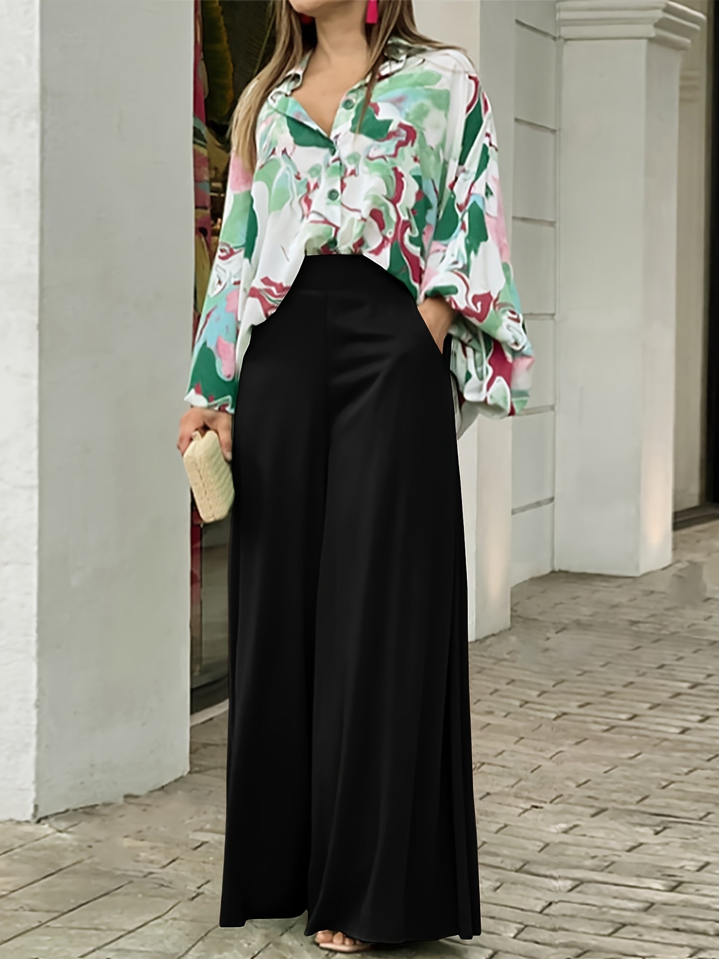 Women's Elegant High-Waisted Wide Leg Pants - Perfect for Spring & Fall