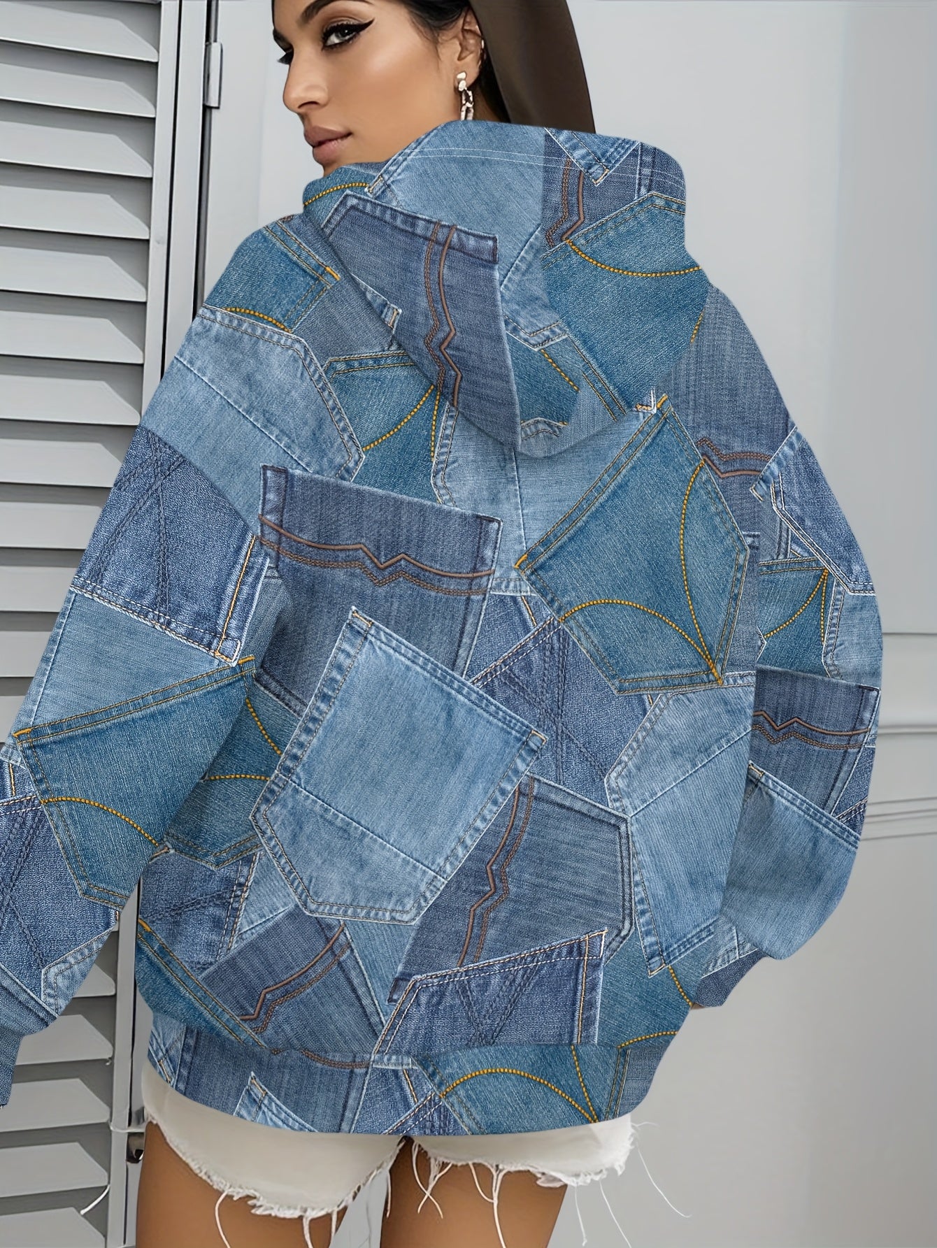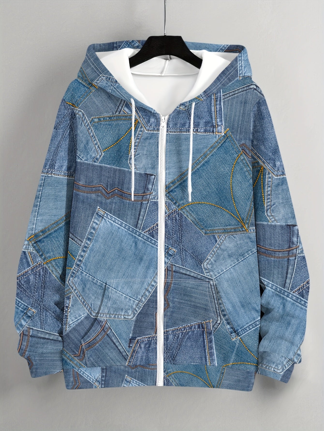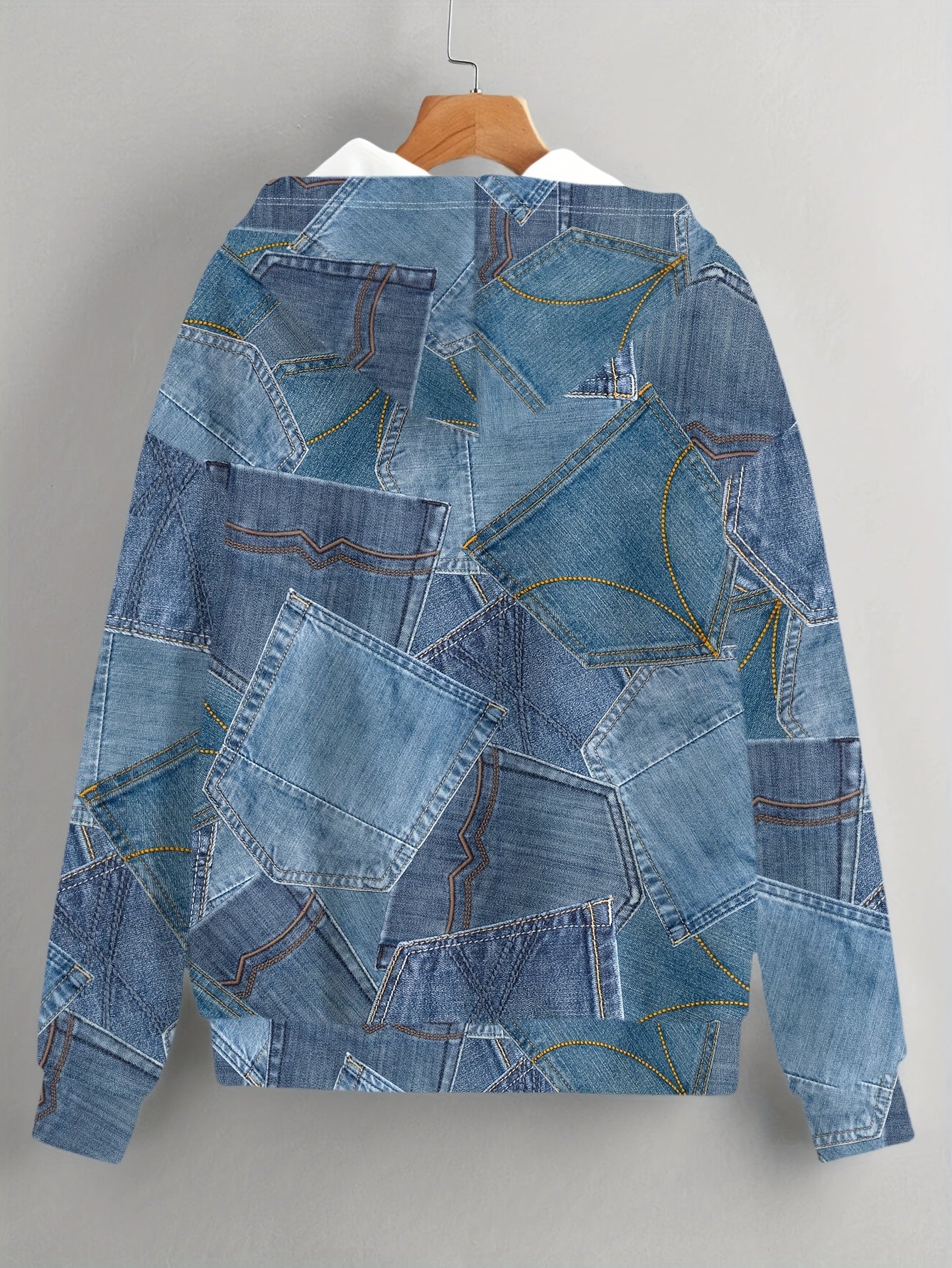 Elevate your fall and winter wardrobe with our Women's Casual Faux Denim Zip-Up Sweatshirt. Made from 100% polyester, this stylish sweatshirt combines comfort with a trendy patchwork design, perfect for everyday wear and outings. Its micro elasticity ensures a comfortable fit, making it an essential piece for those cooler months.
