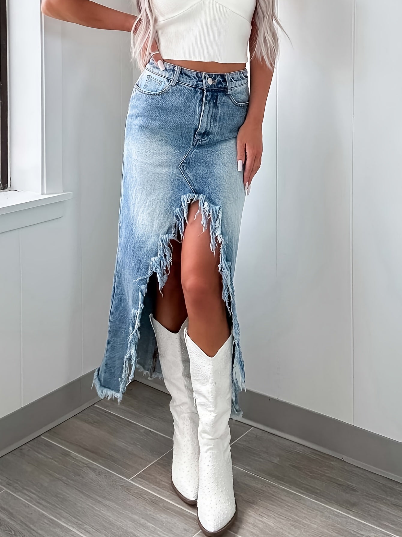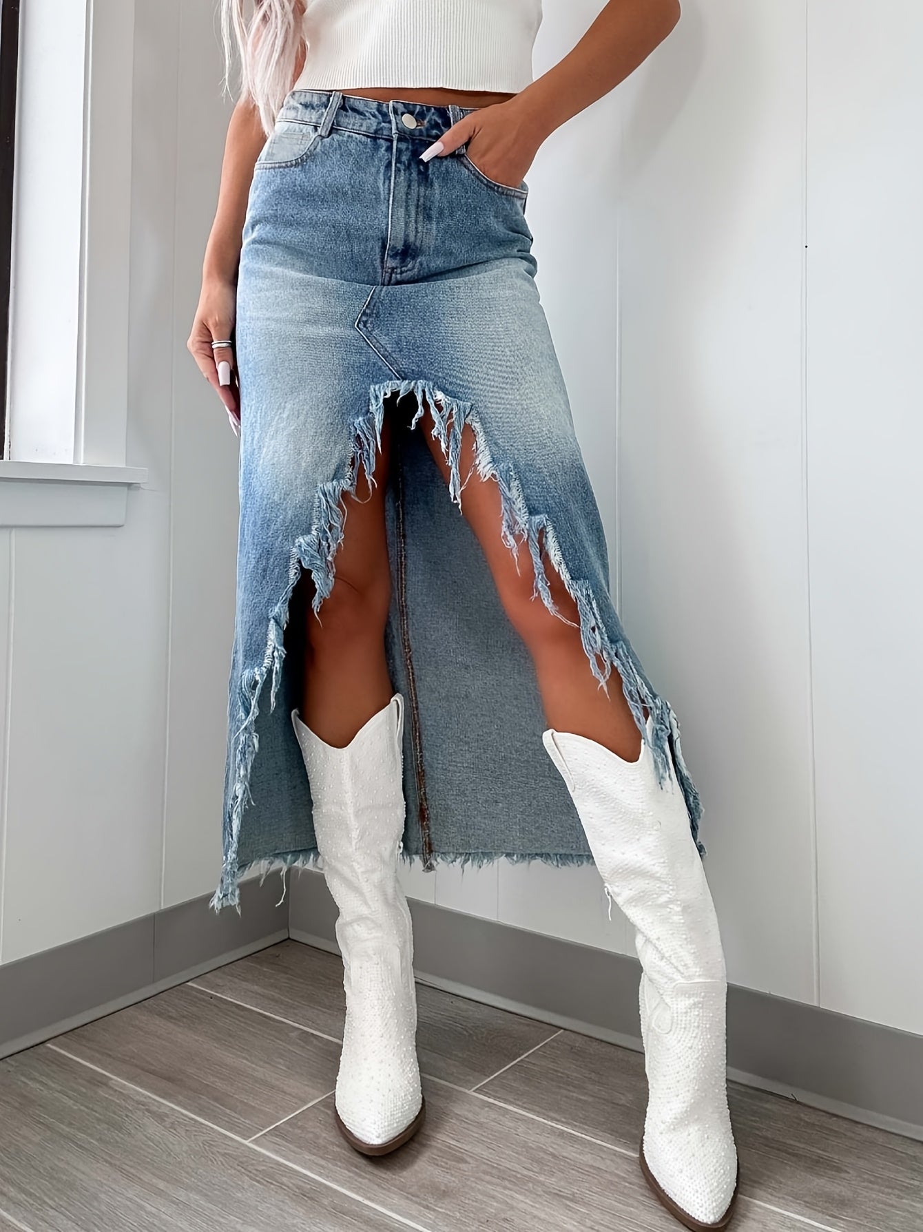 Elevate your fashion game with this elegant denim skirt that combines timeless style with modern comfort. Perfect for casual outings or dressed-up occasions, this versatile piece easily transitions from day to night. Pair it with your favorite tops and accessories to create limitless stylish ensembles.