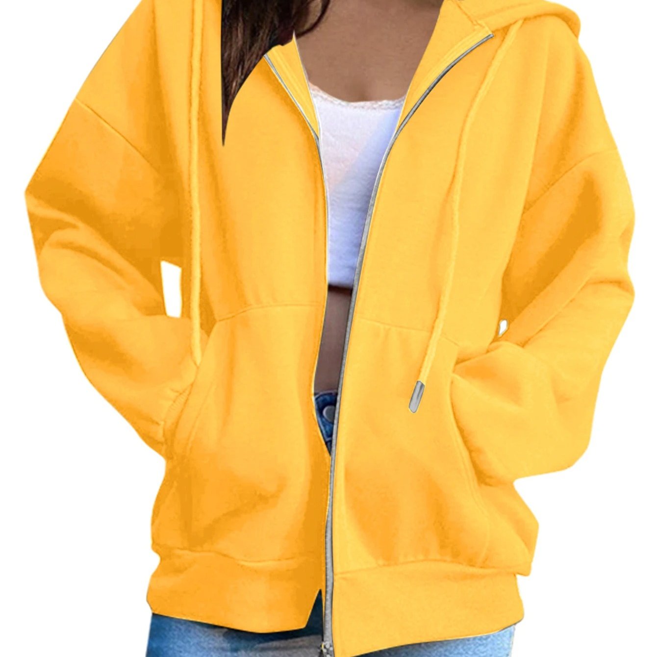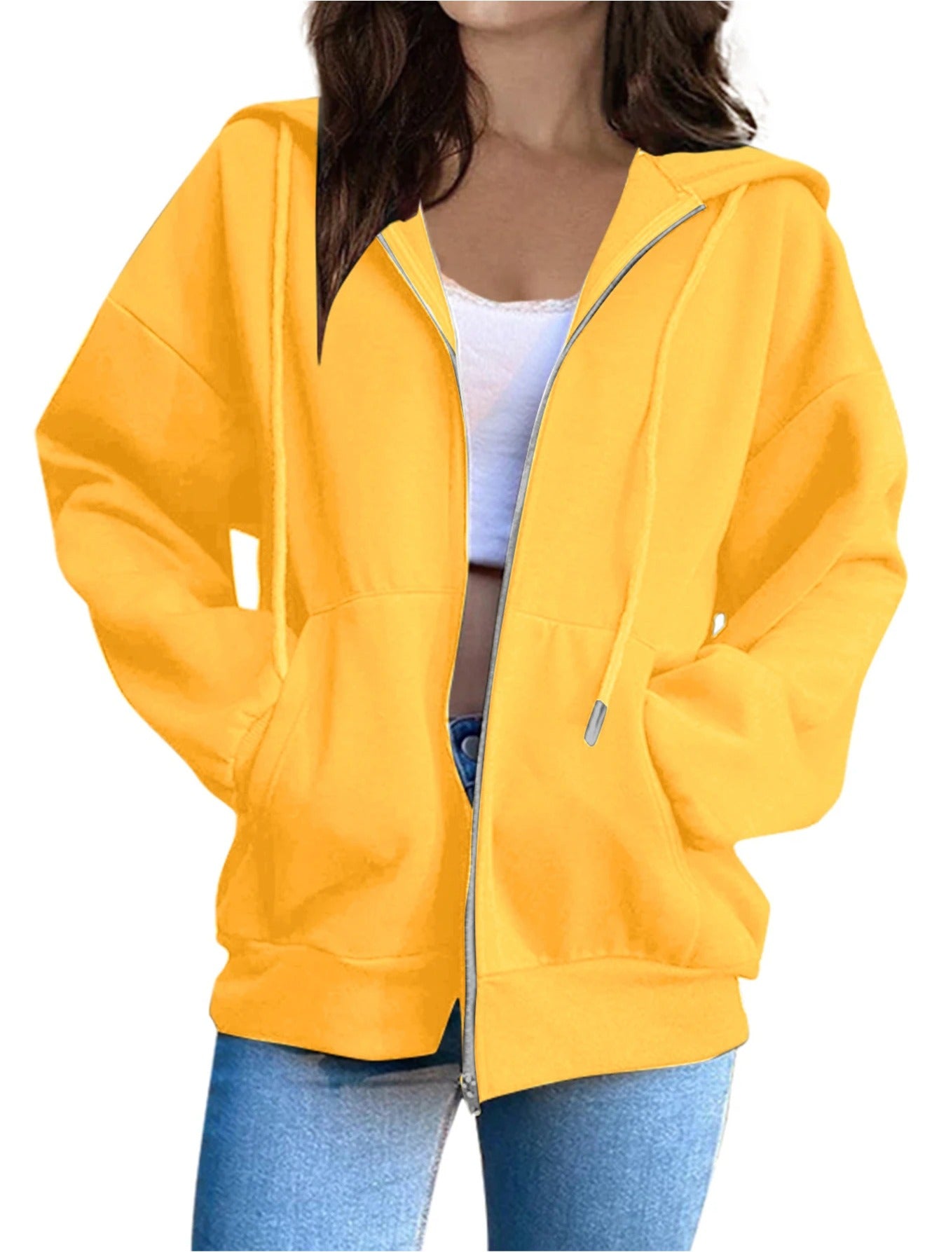 Embrace the chill of fall and winter with our Women's Bright Yellow Hooded Jacket. This lightweight coat combines style and comfort, crafted from 100% polyester. Its vibrant color and functional design make it a perfect choice for your casual outings.