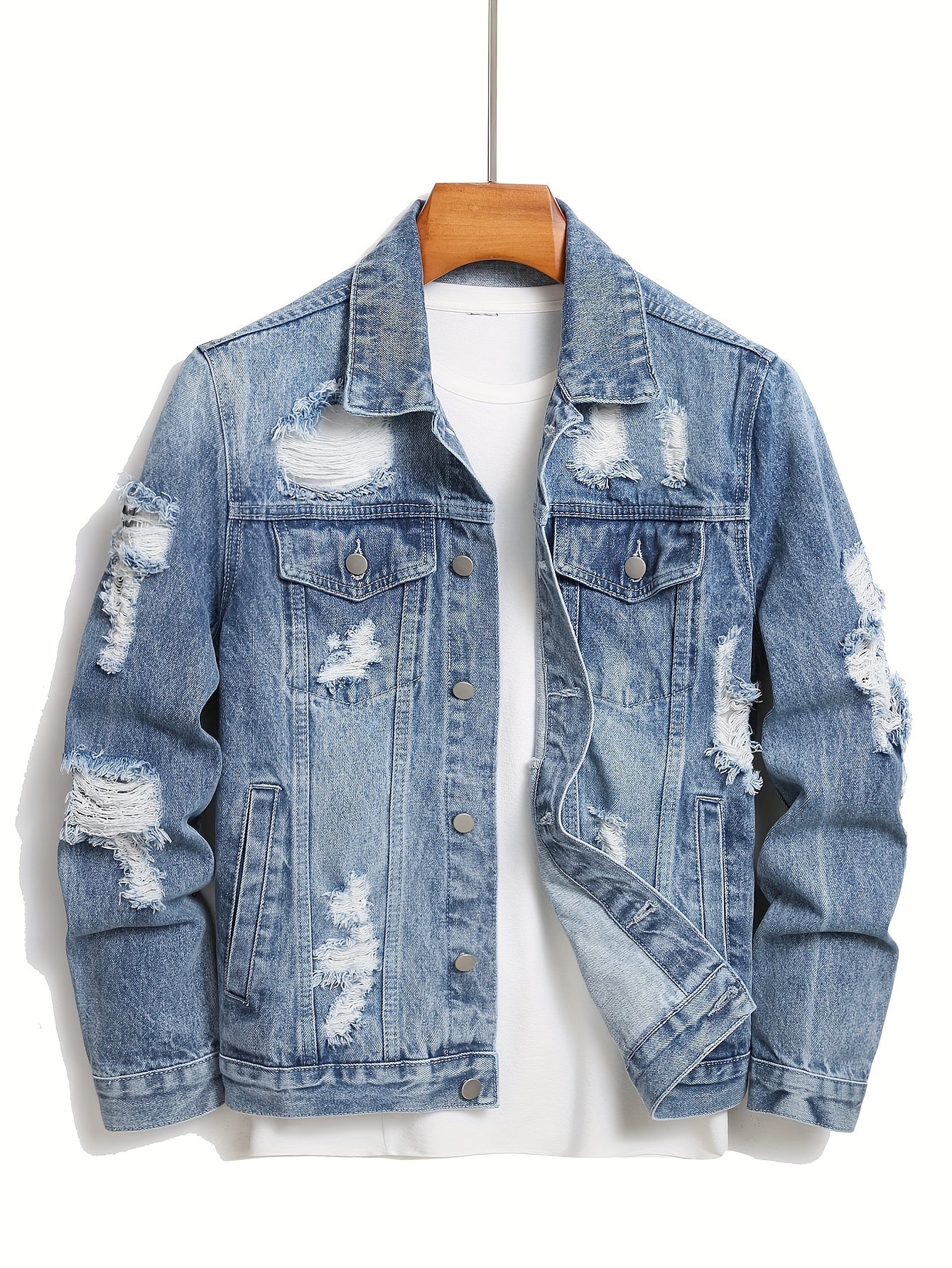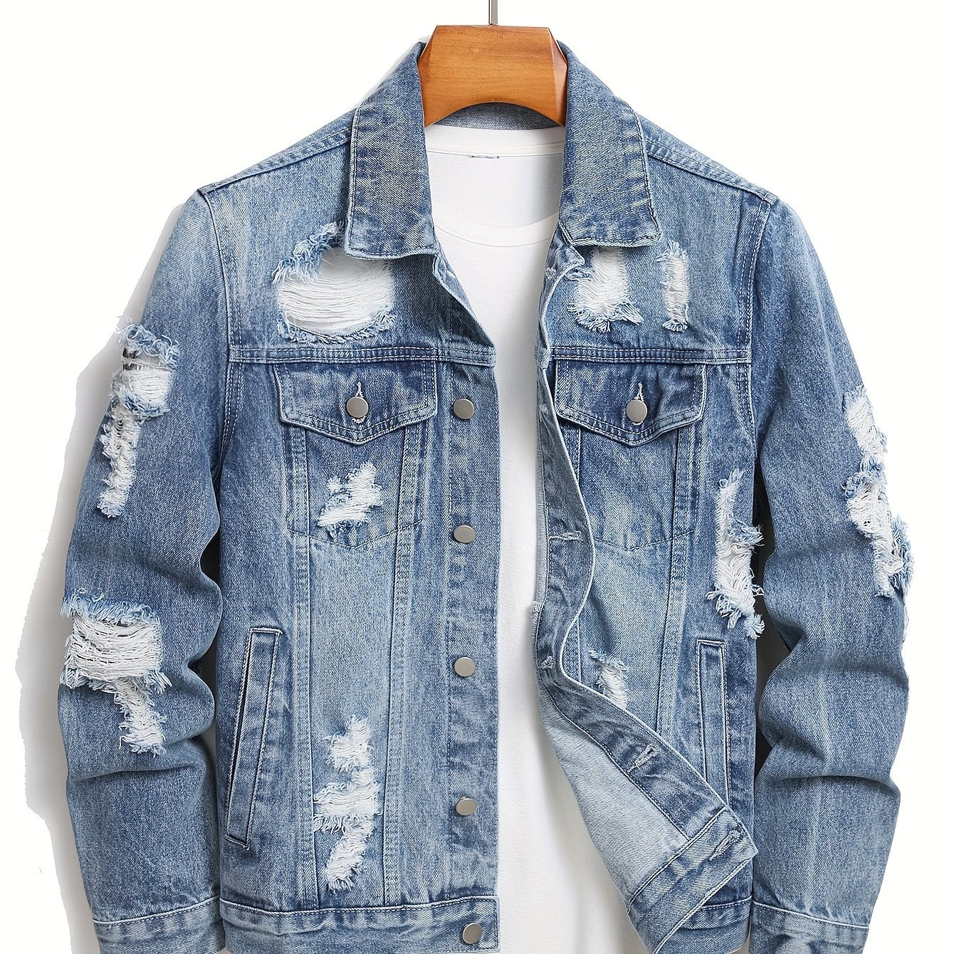 Elevate your street style with the Men's Distressed Denim Workwear Jacket. This versatile piece is more than just a stylish outer layer; it's designed to withstand the rigors of everyday wear while ensuring maximum comfort. Perfect for layering over shirts or tees, this jacket will make you stand out in any casual setting. Don't miss the chance to add this essential wardrobe staple to your collection!