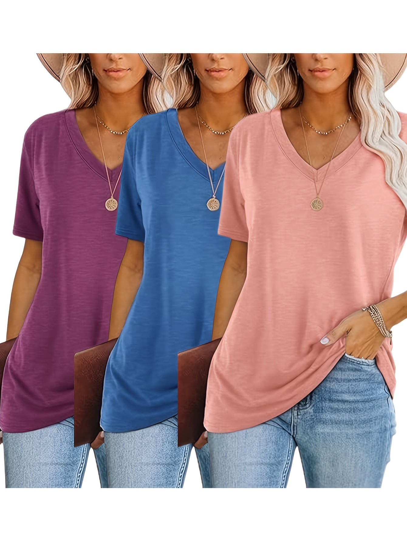 Women's Casual V-Neck T-Shirts - Soft & Breathable 3-Pack