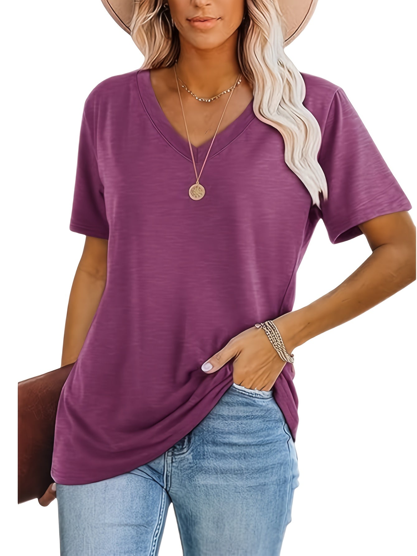 Elevate your casual wardrobe with our Women's Casual V-Neck T-Shirts. This versatile 3-pack offers not only style but also practicality, allowing you to mix and match effortlessly with your favorite jeans or shorts. The breathable fabric ensures you stay cool, making these tees perfect for any occasion, whether lounging at home or out on the town.