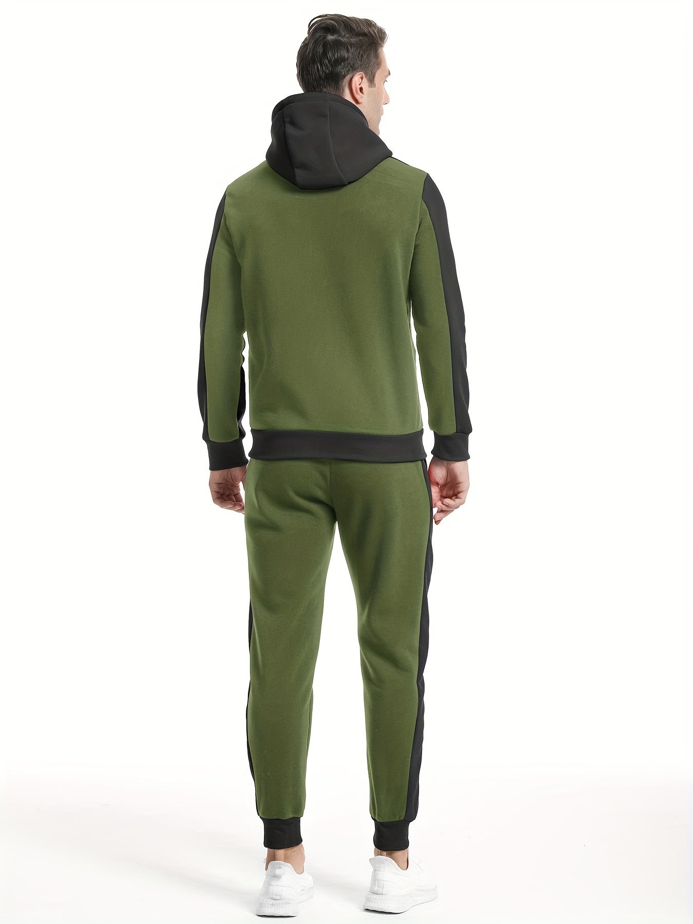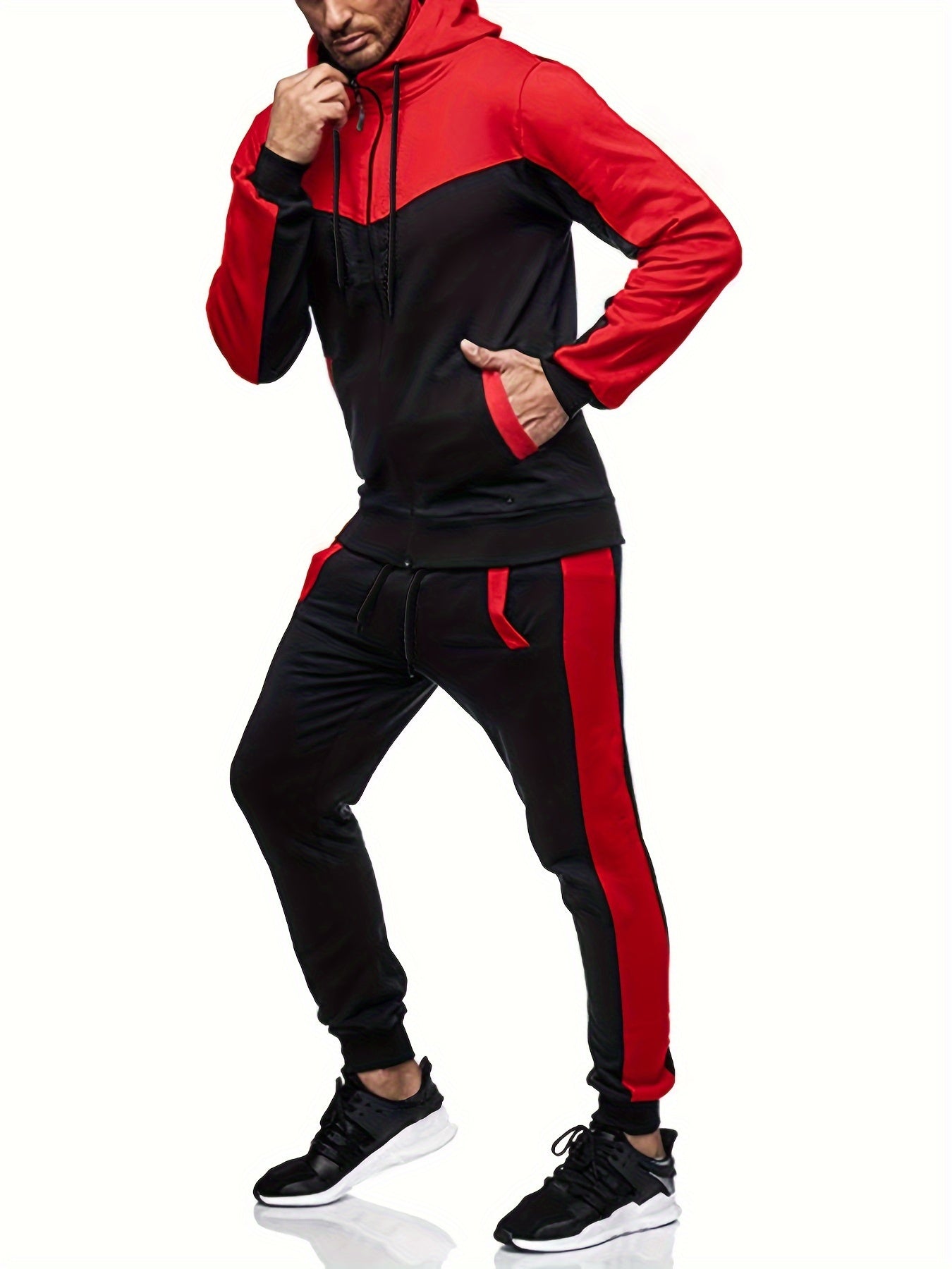 RISKROLE Men's Casual Hoodie Set - Color Block Zip-Up Jogging Suit