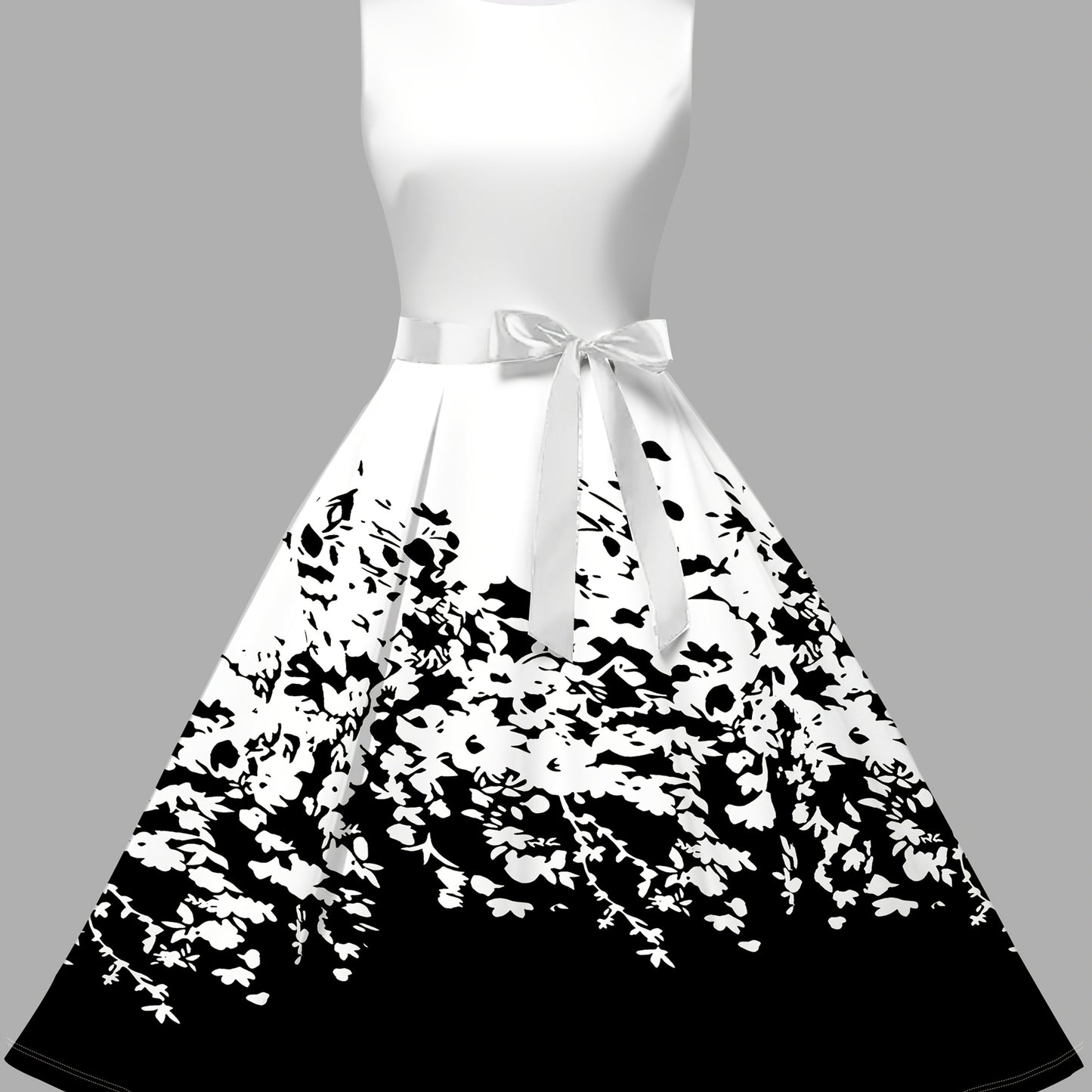 Elegant Black & White Floral Dress - Sleeveless A-Line Summer Fashion