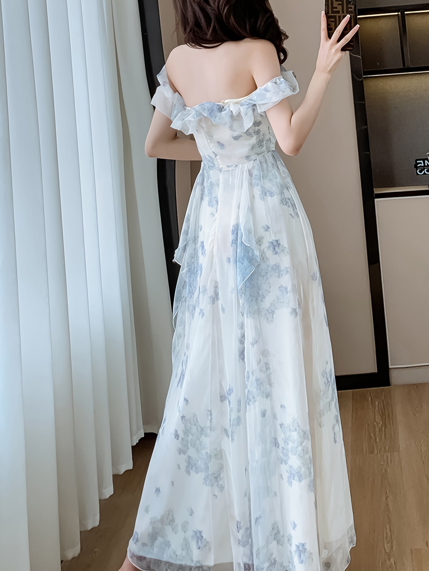 Elegant Off-Shoulder Floral Maxi Dress - Lightweight for Summer Outings