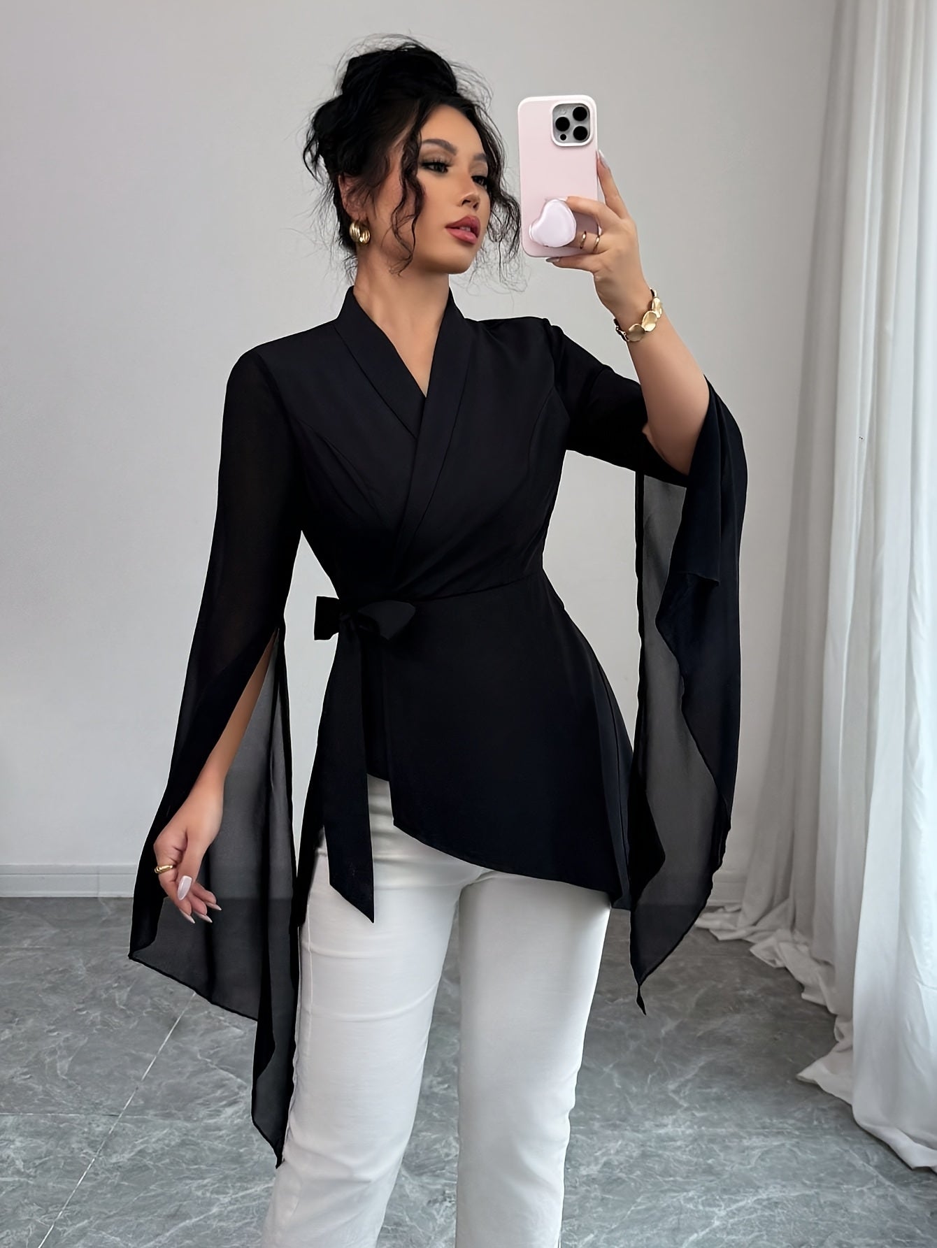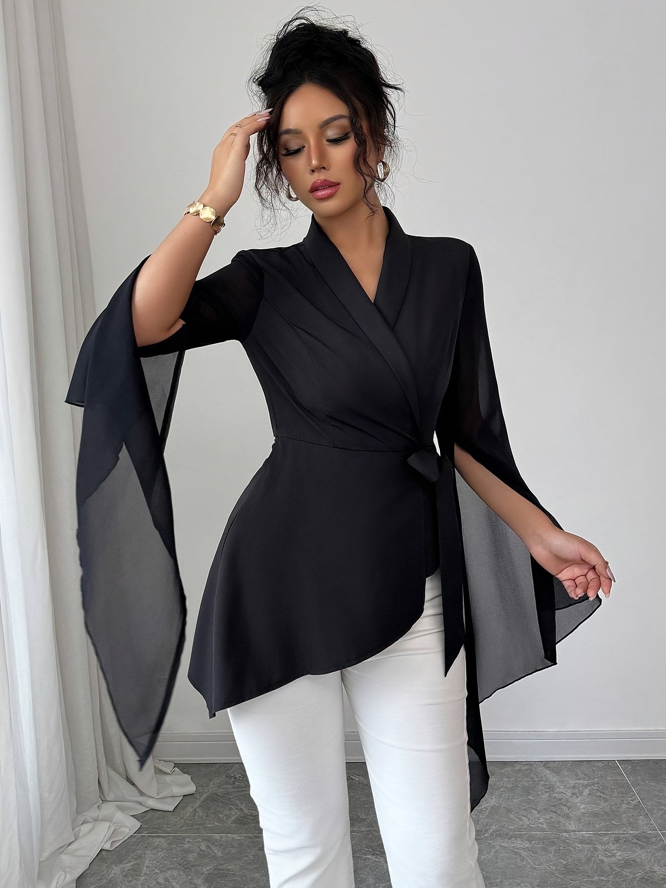 Elevate your wardrobe with our Elegant Asymmetrical Sleeve Blouse, the perfect blend of style and comfort. This versatile top is ideal for various occasions, whether you're dressing up for a night out or looking to create a chic casual look. Don't miss the chance to redefine your style with this must-have piece, tailored for contemporary women who appreciate fashion and elegance.