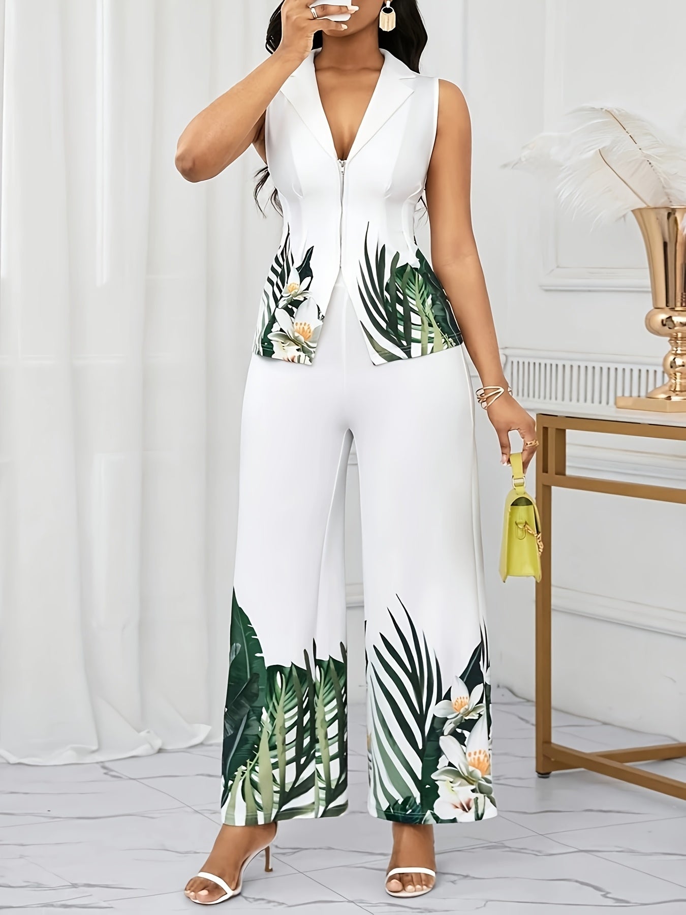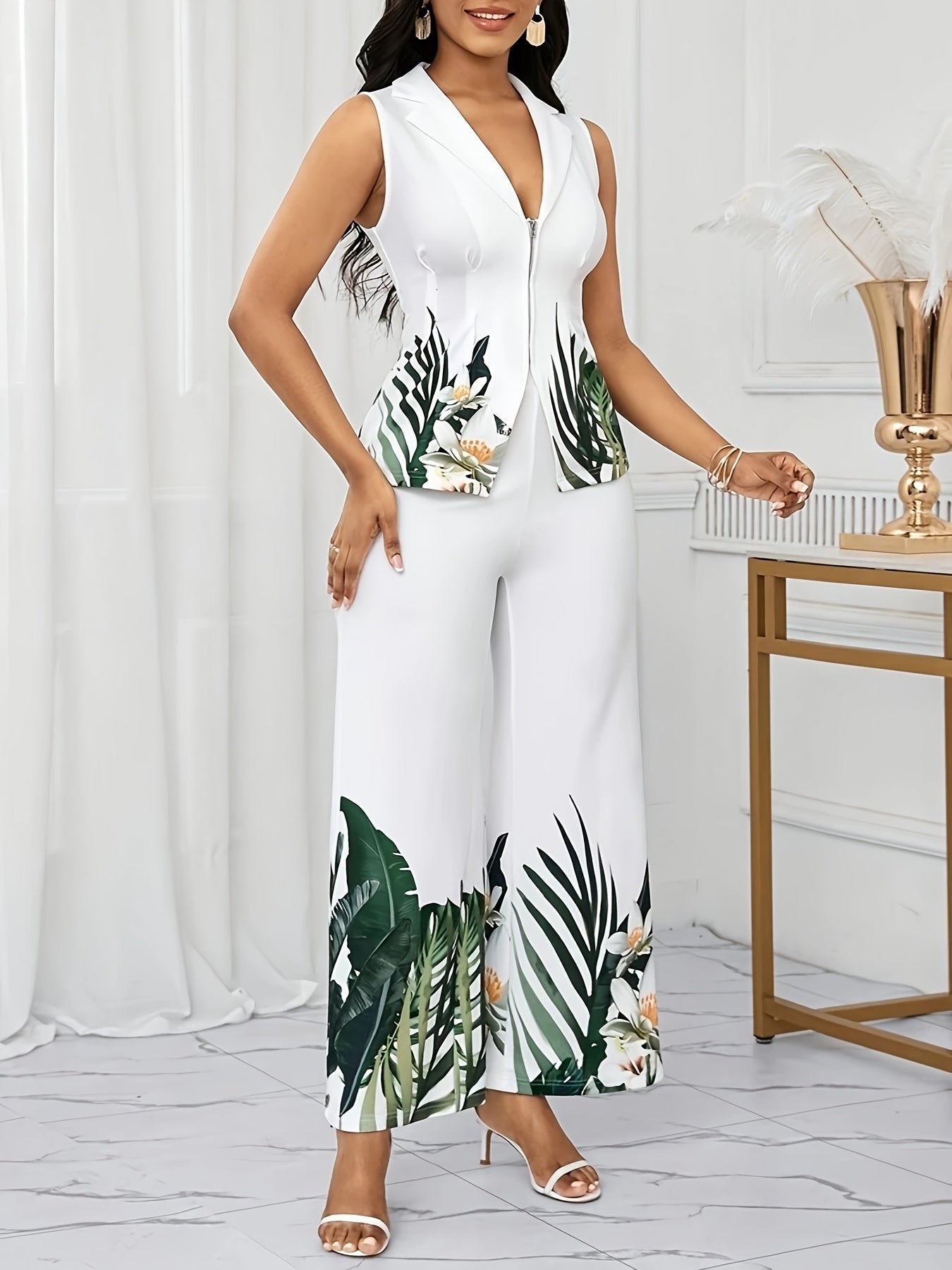 Elegant Floral Print Jumpsuit for Women - Chic Zip-Up & V-Neck