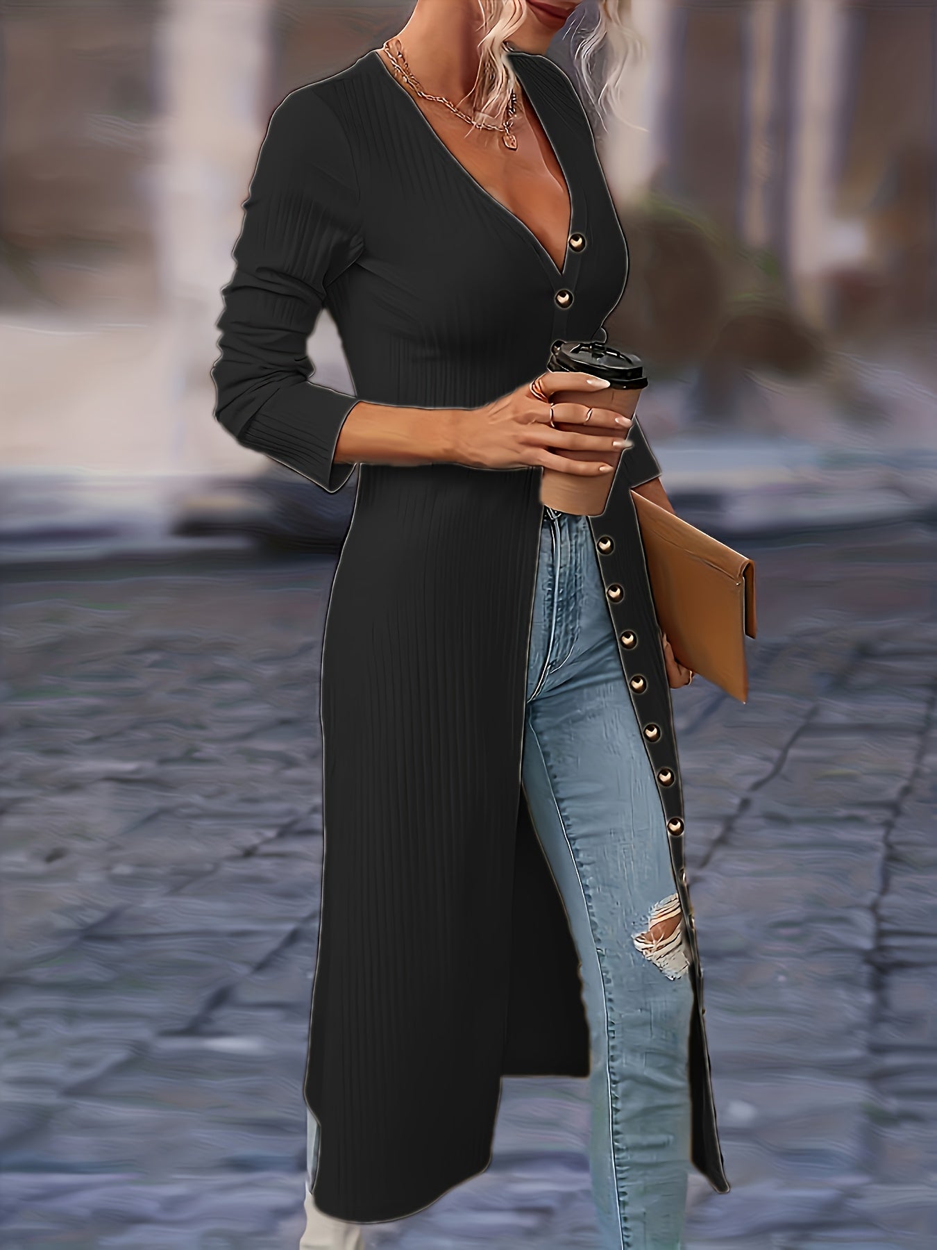 - Elegant v-neck design adds sophistication