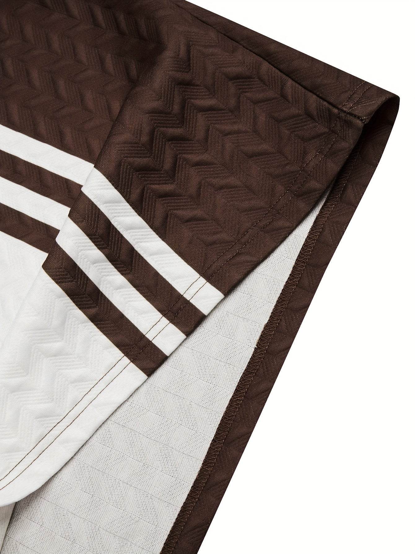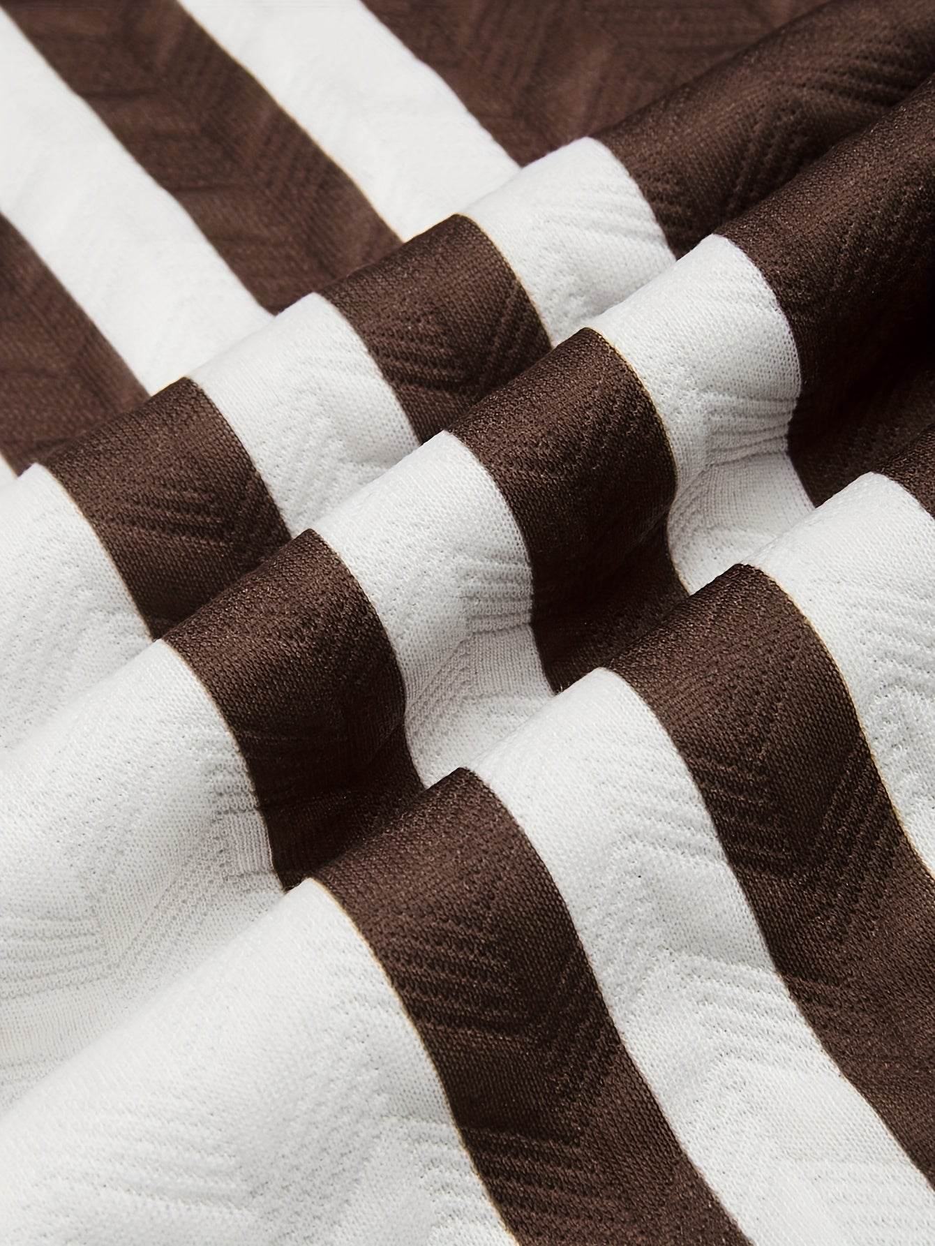 Discover the perfect blend of style and comfort with our Men's Casual Ribbed Texture Short Sleeve Shorts Set, designed for the summer fashion enthusiast. Crafted from 100% polyester, this outfit features a modern geometric pattern and a slight stretch that promises both fit and freedom of movement.
