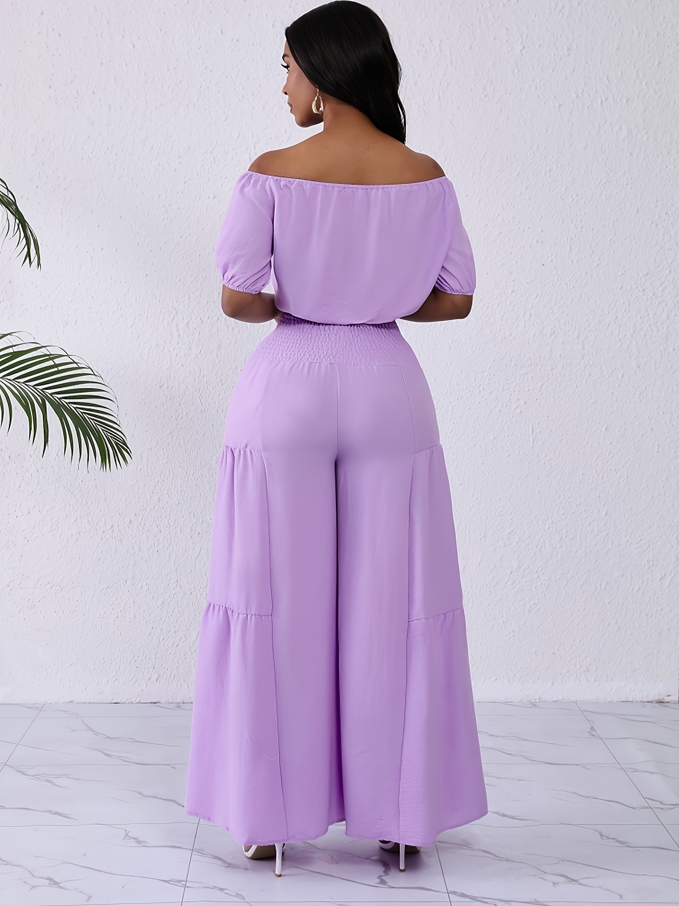 Women's Lavender Wide-Leg Pants - Smocked Waist & Casual Style