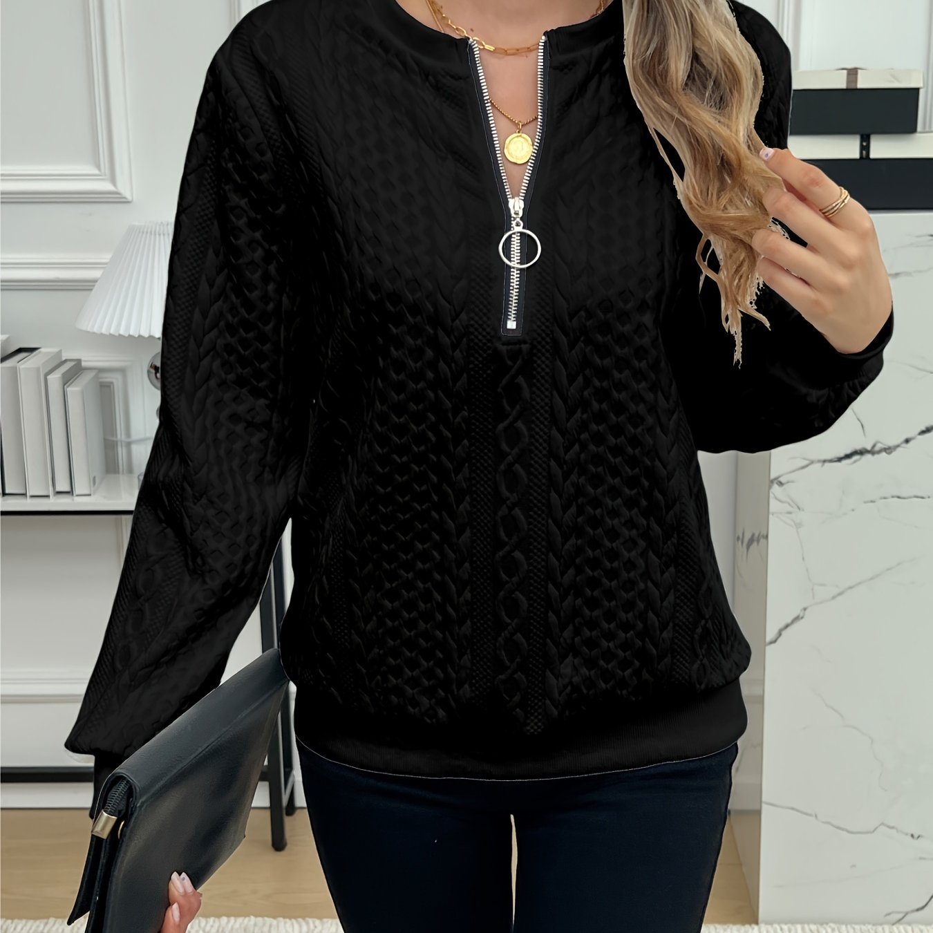 Women's Elegant Zip-Up Hoodie - Soft Knit, Comfortable Layering