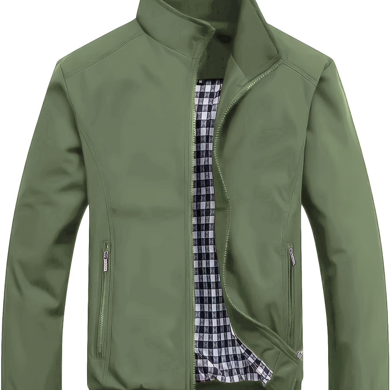 Men's Solid Stand Collar Jacket - Casual Zip-Up for Spring & Fall