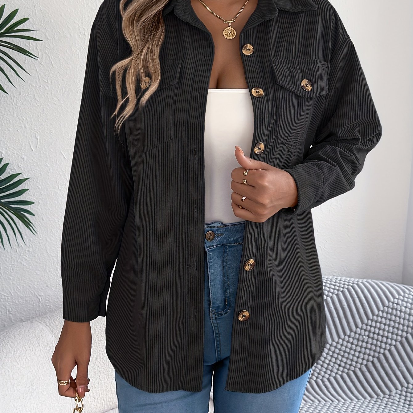 Elegant Long Sleeve Corduroy Jacket for Women - Casual Solid Color
