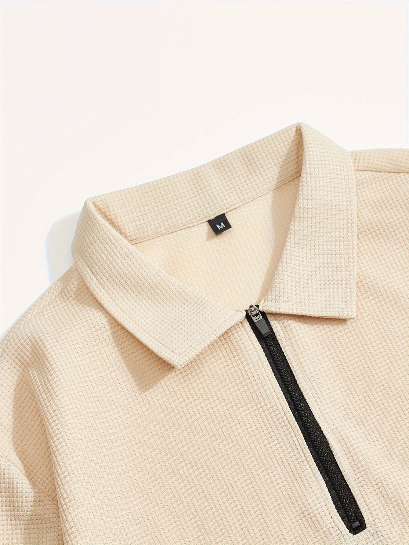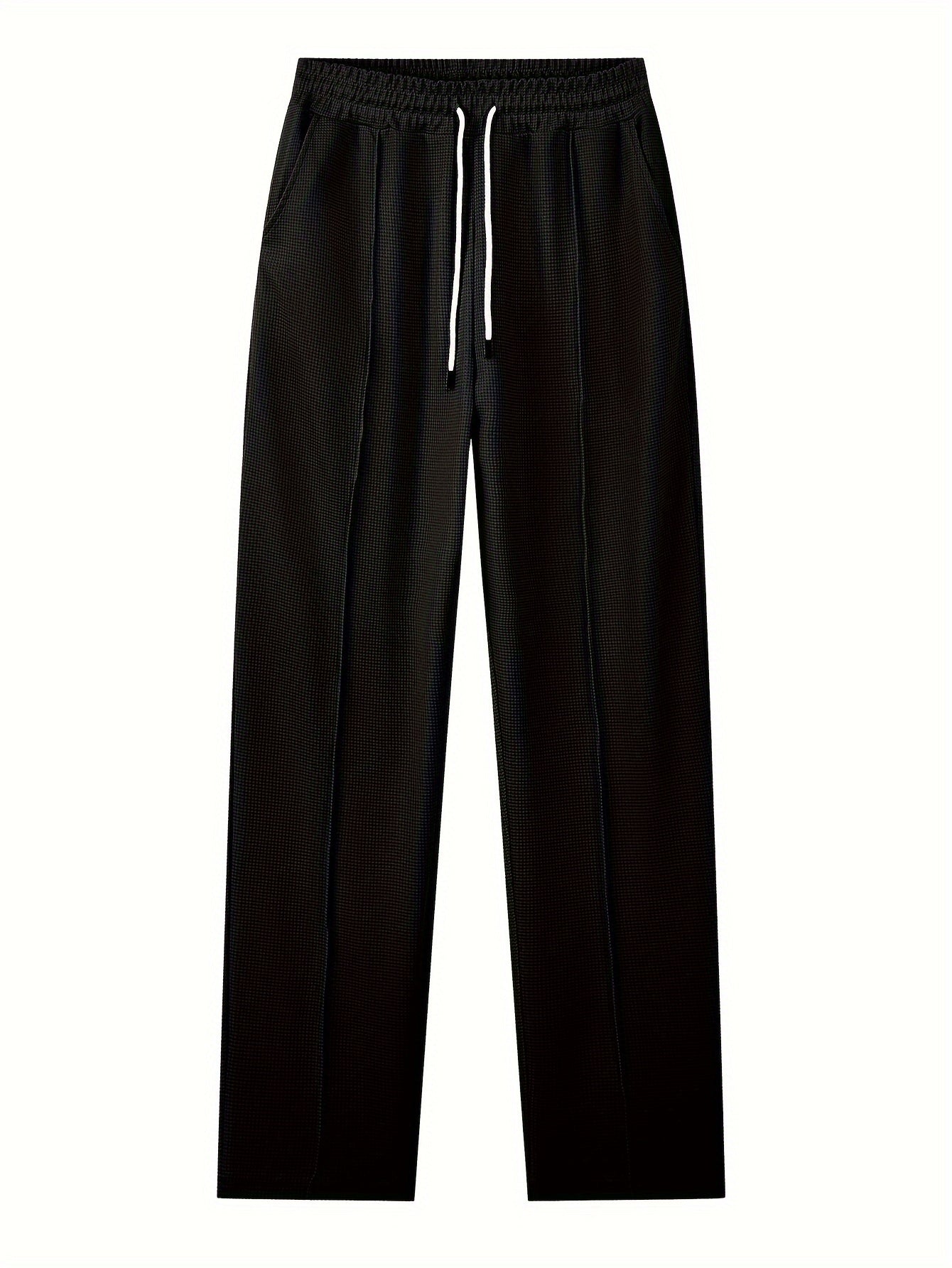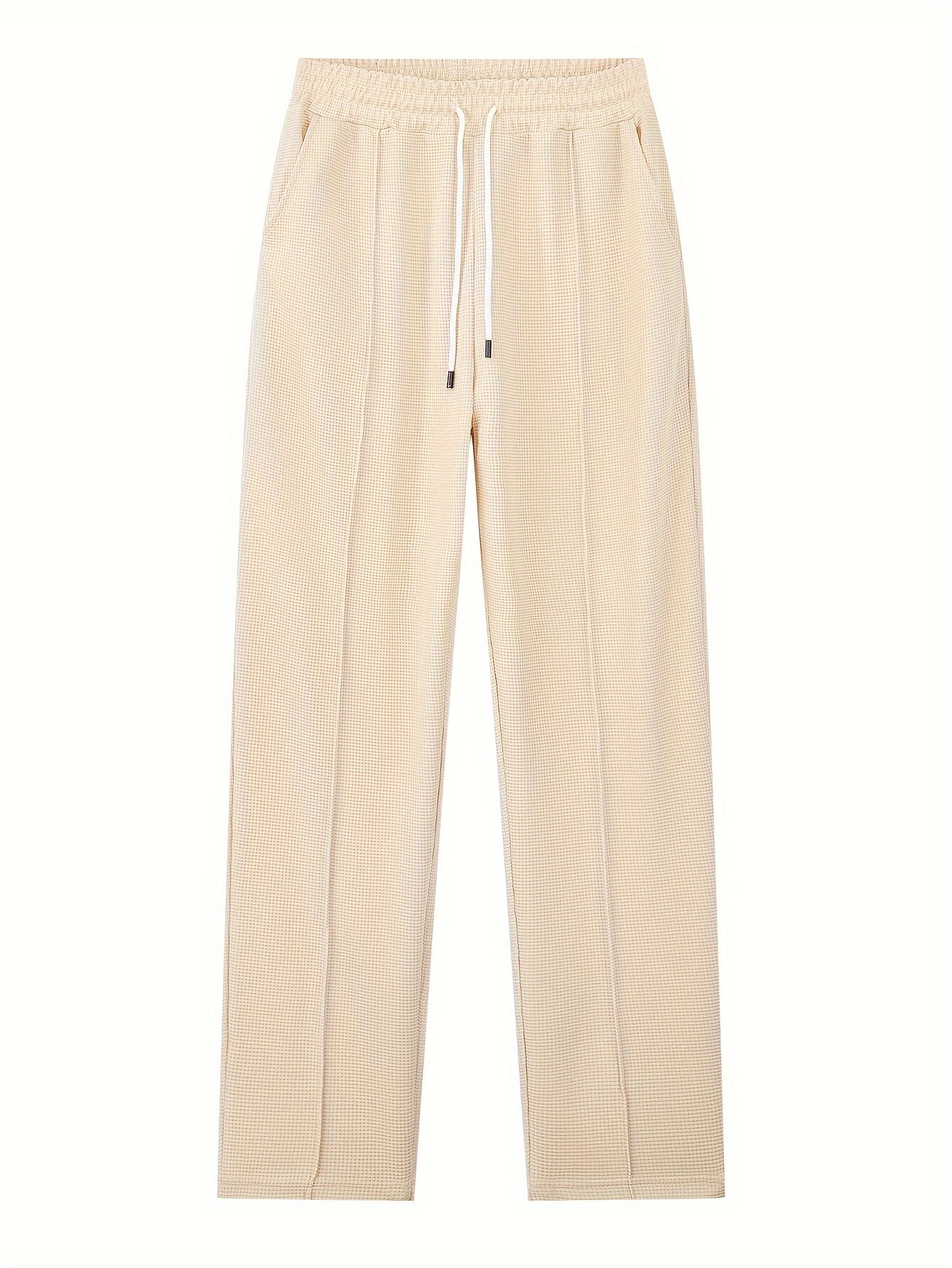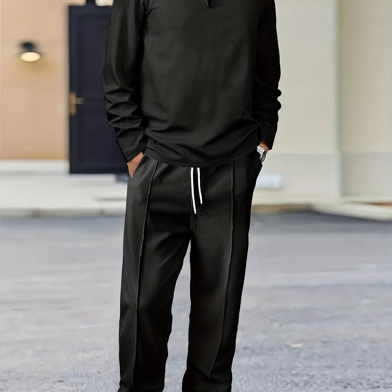 Men's Casual Solid Color Plaid Suit - Long Sleeve & Drawstring Pants