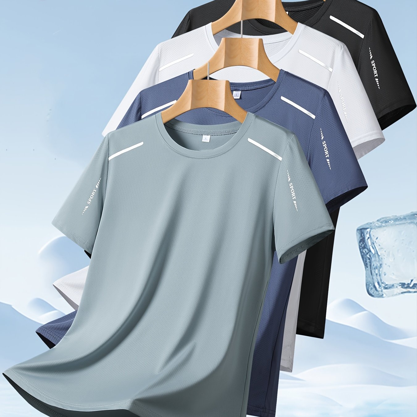Discover unparalleled comfort and style with our 4pcs Set of Men's Moisture-Wicking Athletic T-Shirts. Designed for active lifestyles, these breathable crew neck tops feature medium stretch knitted fabric, ensuring a regular fit that keeps you cool and dry during your workouts or casual outings.