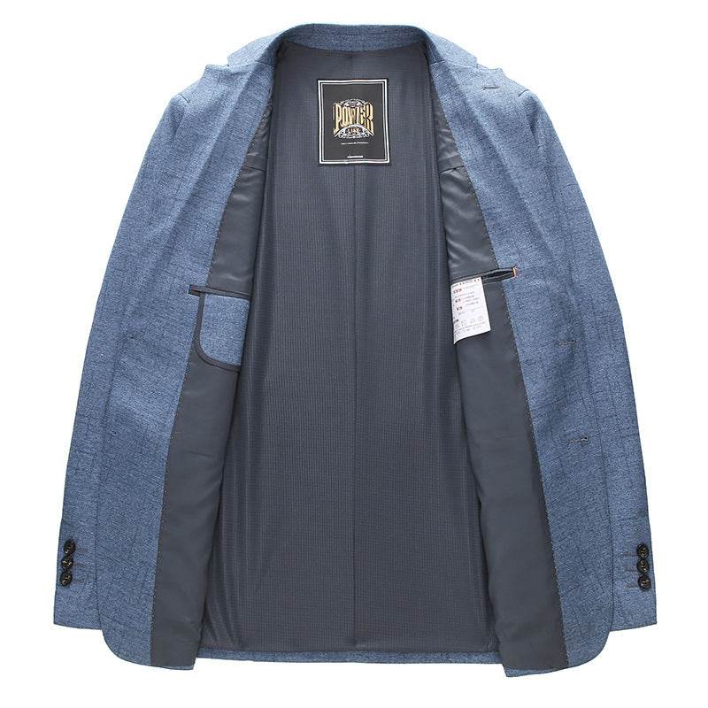 Introducing the Buycenter Men's Light Blue Solid Color Jacket, designed for the modern professional who values style and comfort. This slim fit business suit jacket combines a chic light blue hue with a breathable polyester fiber fabric, making it the perfect choice for daily wear or special occasions.