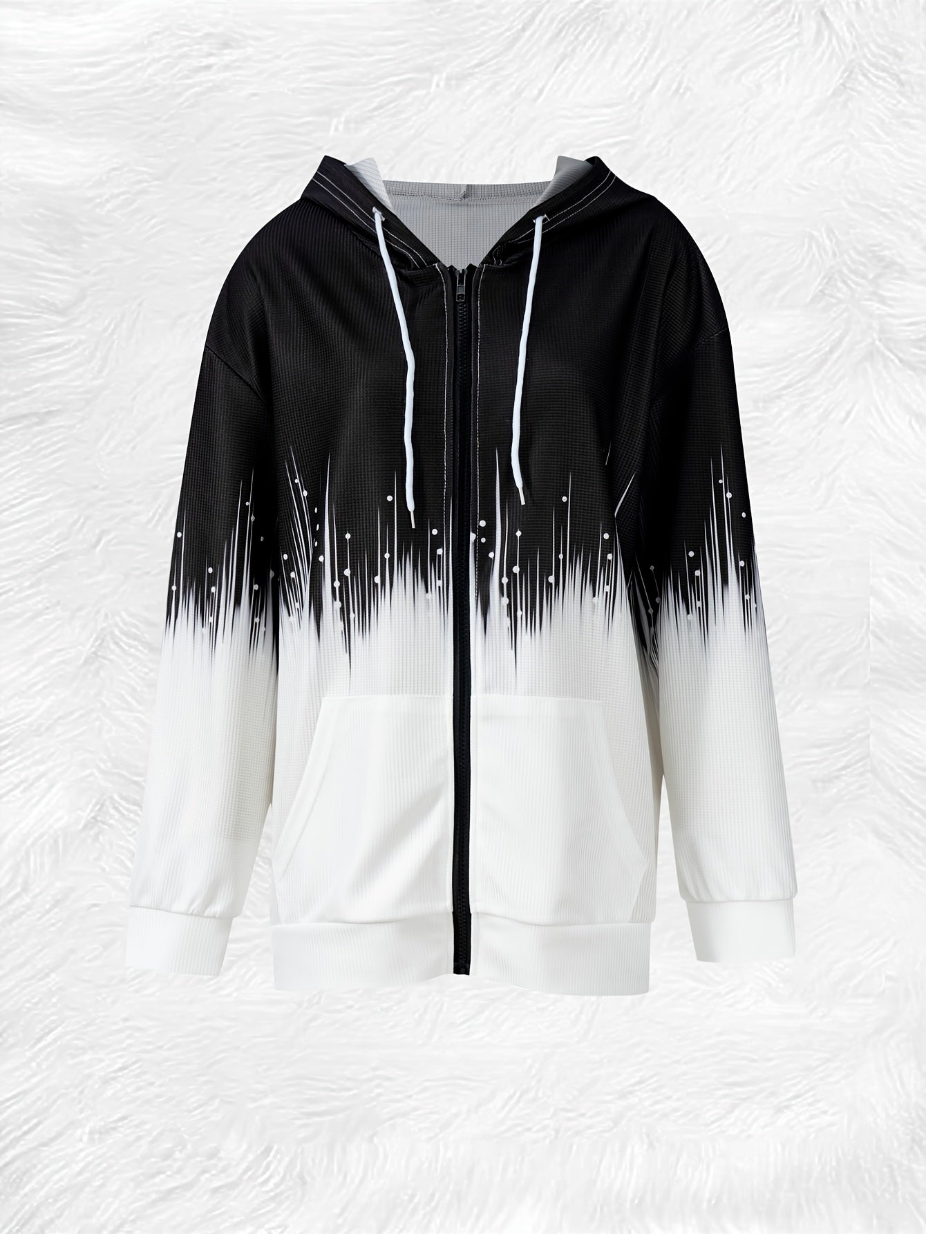 Upgrade your outerwear collection with our Women's Casual Galaxy Print Hooded Zip-Up Jacket. Its unique galaxy pattern and cozy fit make it ideal for those chilly days, whether you're out for a casual stroll or running errands. Don't miss out on the chance to showcase your individuality while enjoying unparalleled comfort.