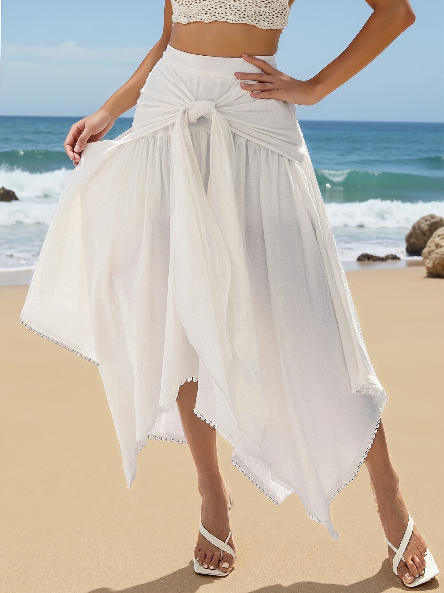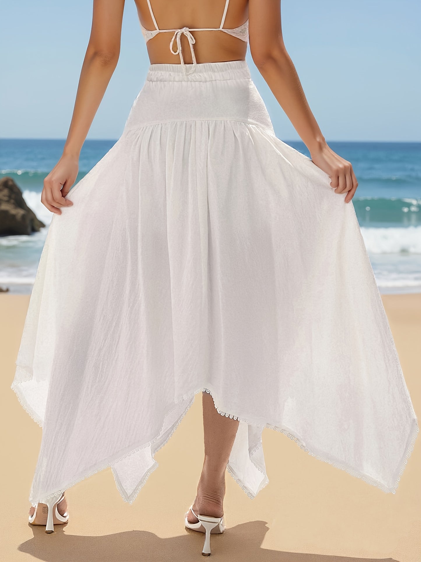 Elevate your wardrobe with our Women's White Asymmetrical Midi Skirt, designed for effortless elegance throughout Spring, Summer, and Fall. Made from high-quality 100% polyester, this skirt combines style and comfort, making it a must-have for beachwear and casual attire.