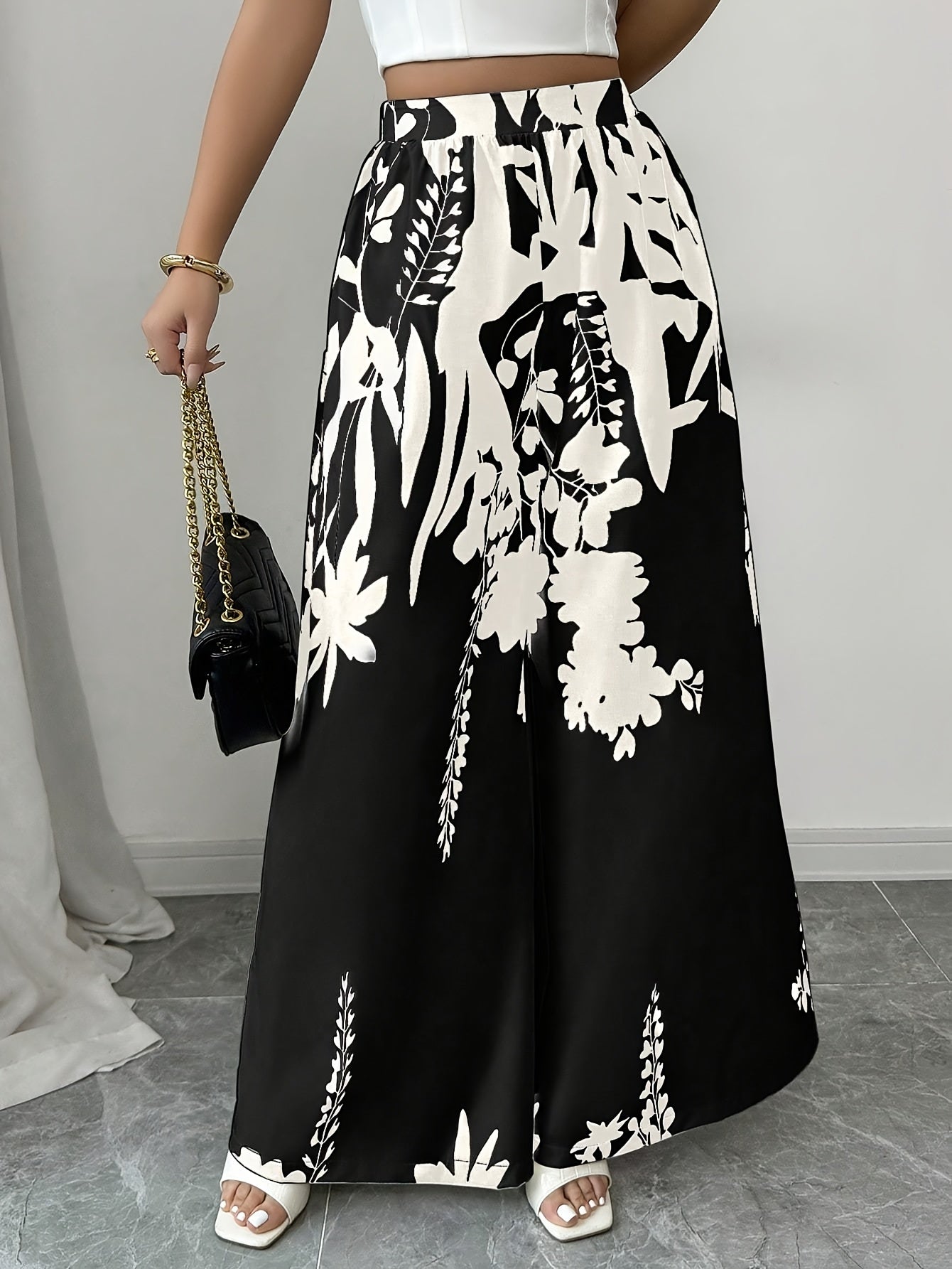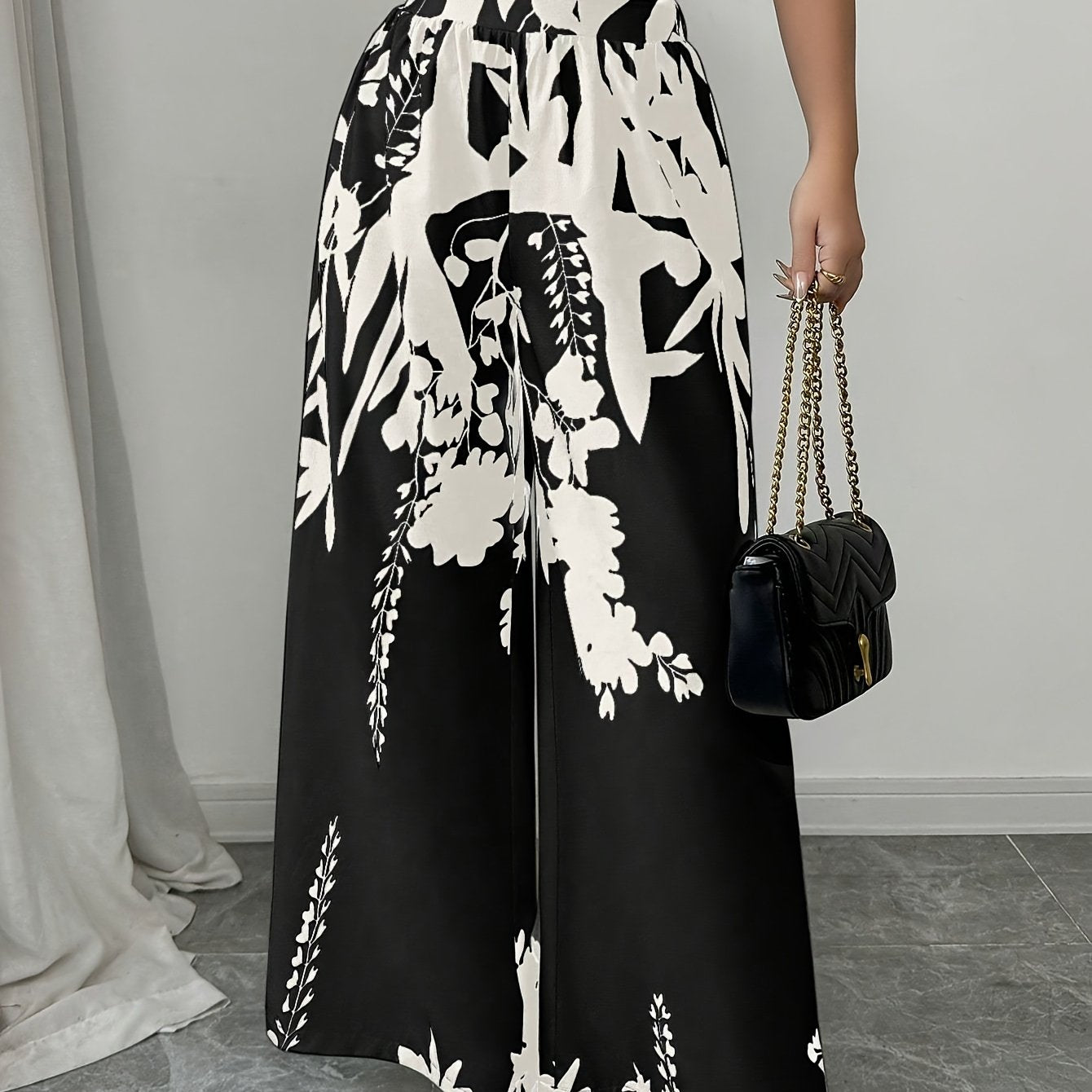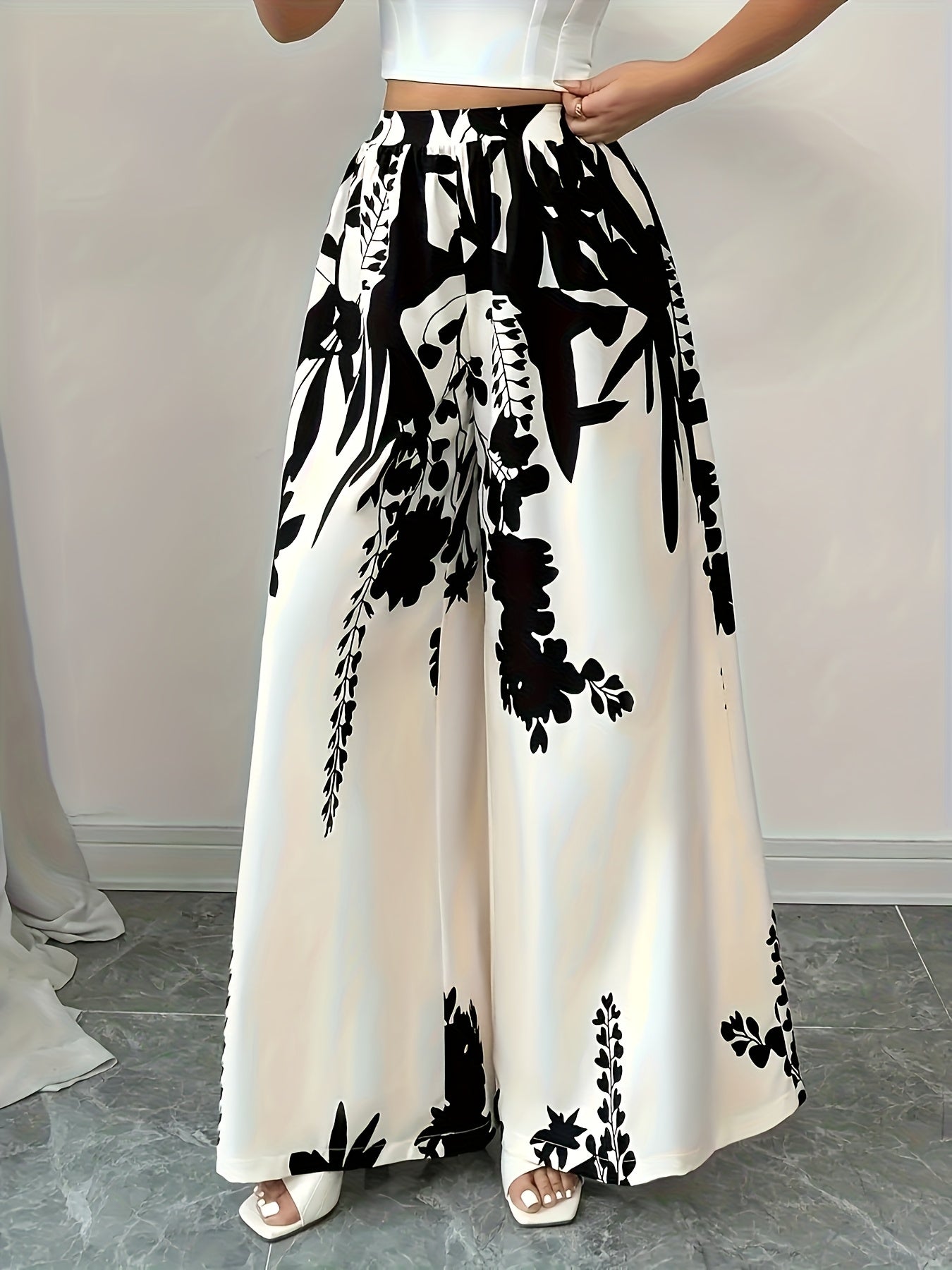 Women's Elegant Floral Print Wide-Leg Pants - Lightweight Casual Style