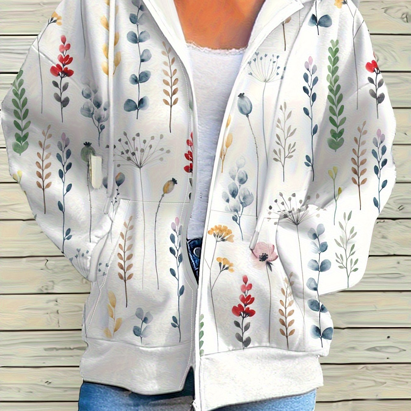 Casual Floral Print Hooded Jacket - Lightweight & Machine Washable