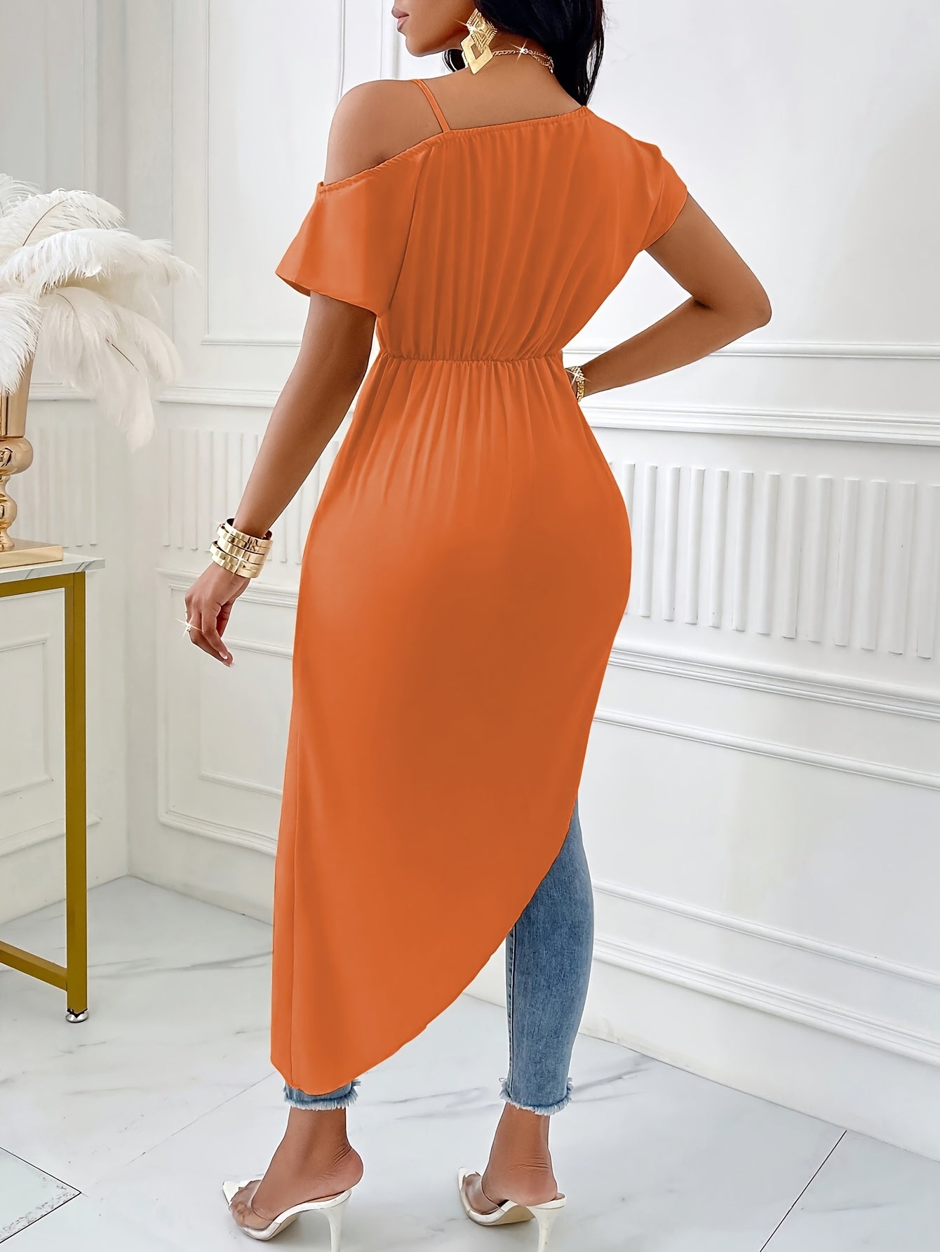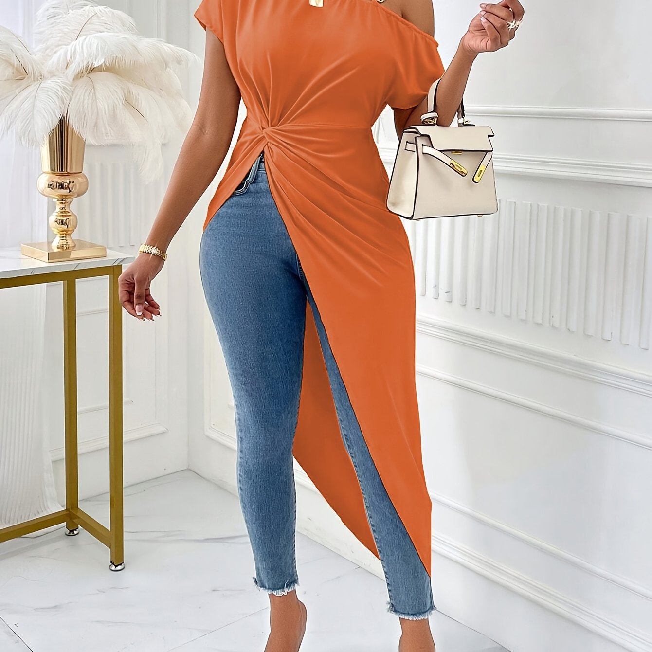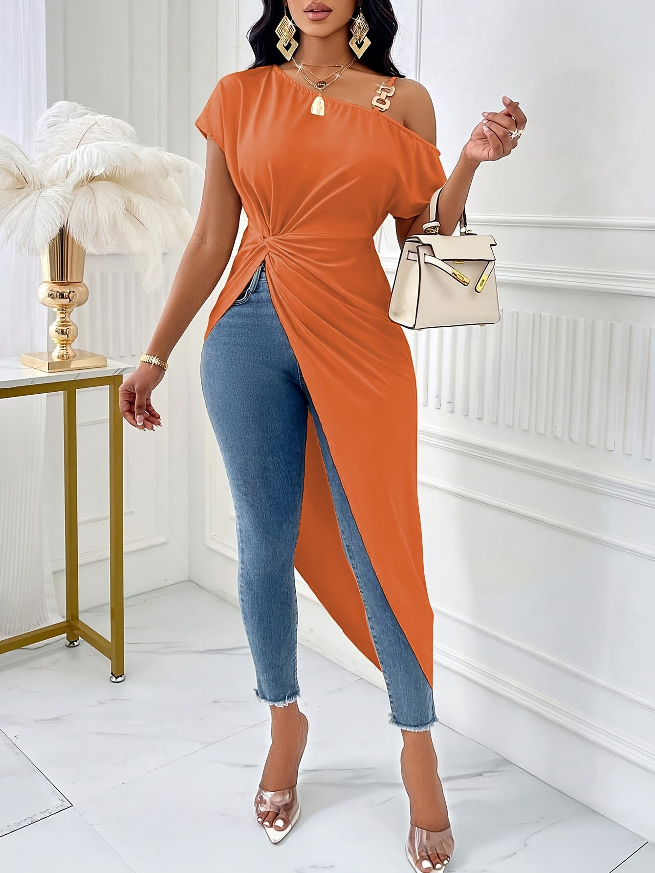 - Elegant asymmetrical neckline for a unique style