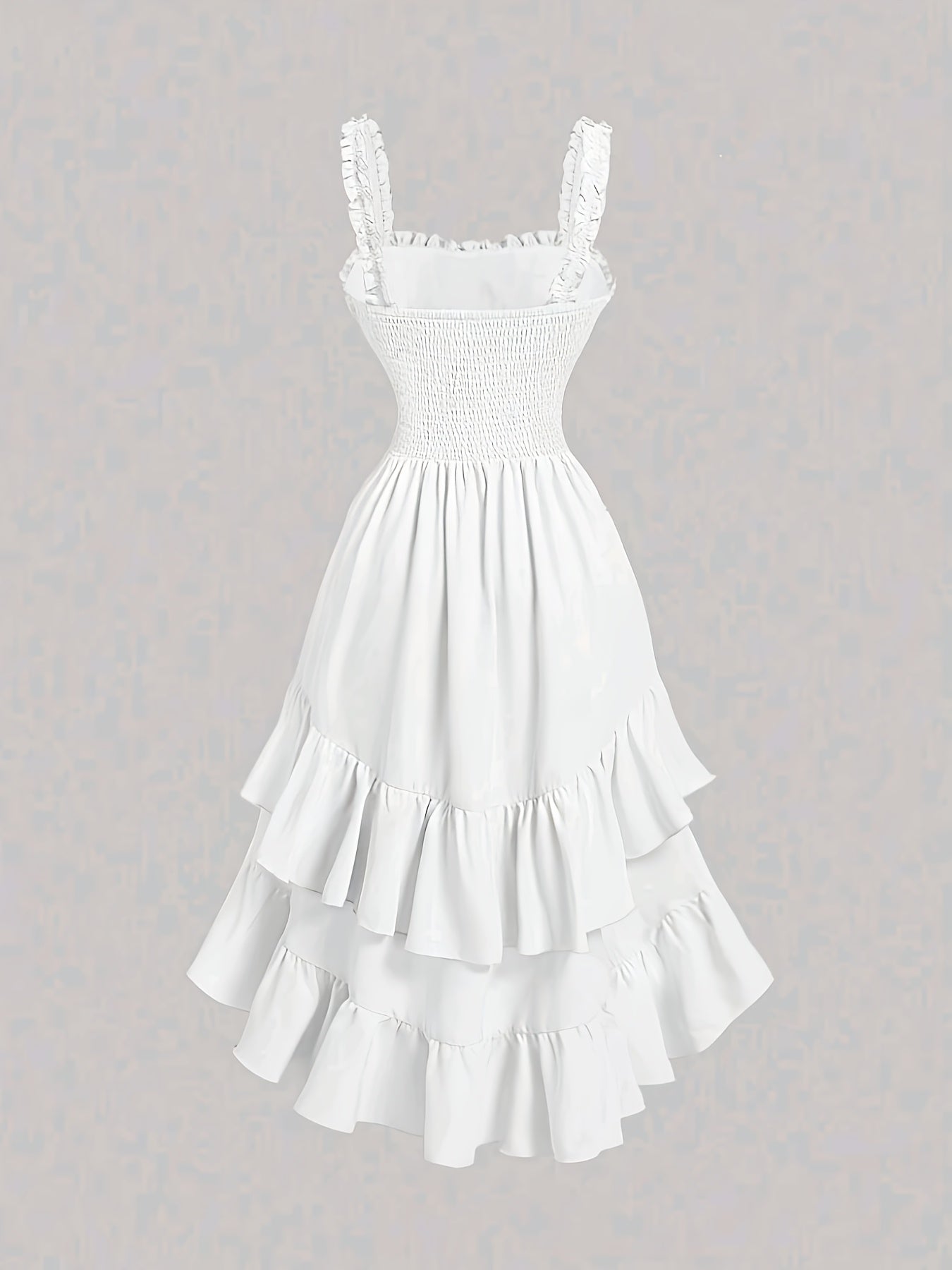 Embrace your elegant side with this Stunning Vintage Ruffle Hem Sleeveless Dress, perfect for special occasions and casual outings alike. The unique off-shoulder design highlights your neckline, while the flowing silhouette provides freedom of movement. Step out in style and confidence this season!