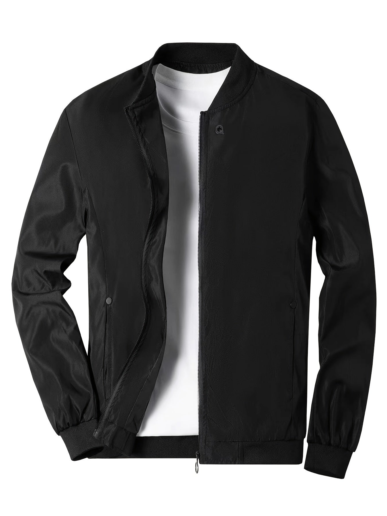 Discover the perfect blend of style and comfort with our Men's Classic Stand-Up Collar Zipper Jacket in Navy Blue. Crafted from 100% lightweight polyester, this casual jacket features a classic baseball collar and invisible zipper pockets, making it an ideal choice for spring and fall outings.