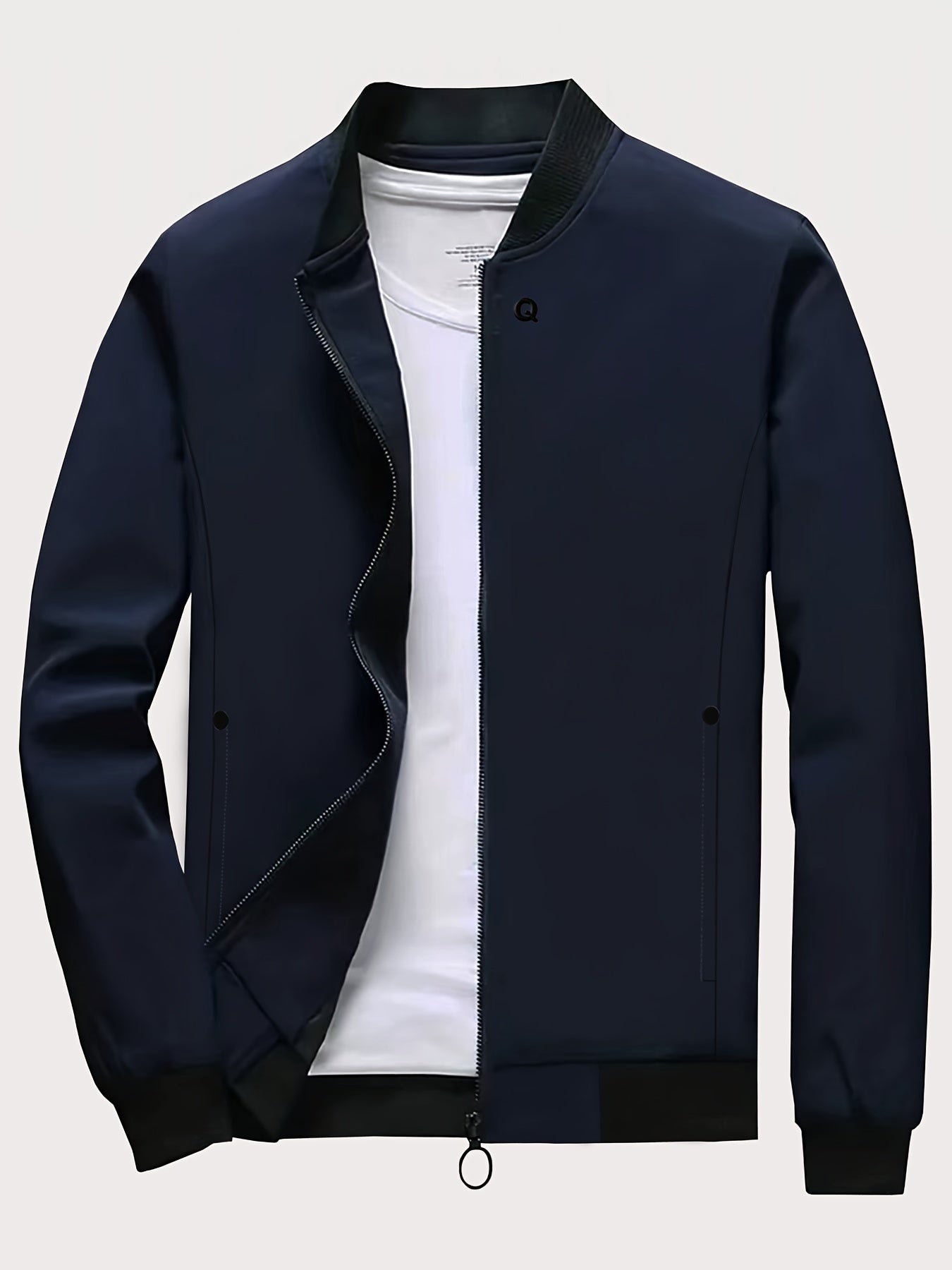 Men's Lightweight Stand-Up Collar Jacket - Navy Blue Zipper Design