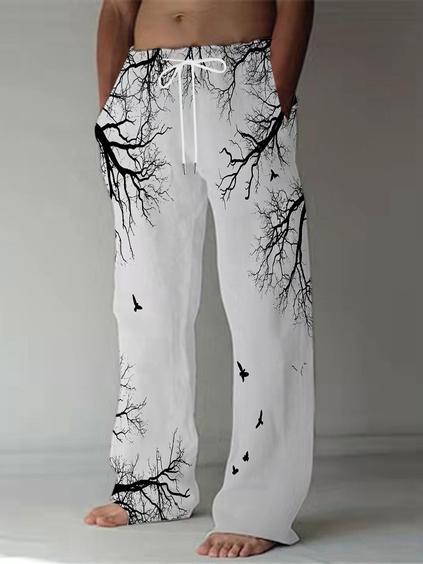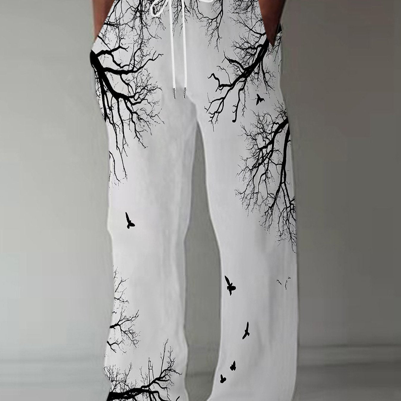 Elevate your casual wardrobe with our Men's Loose-Fit Straight Leg Pants. The eye-catching Black Tree & Bird Print adds a touch of nature-inspired aesthetic to your outfit, making them versatile for any occasion. Ideal for relaxed outings or lounging at home, these pants combine style and practicality, ensuring you look great while enjoying unparalleled comfort.