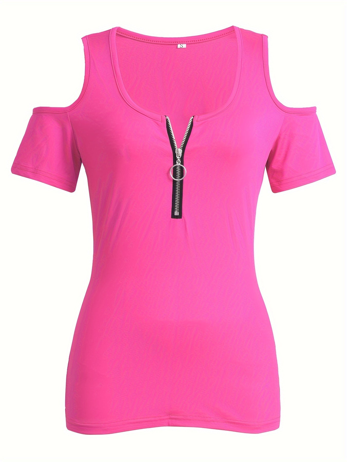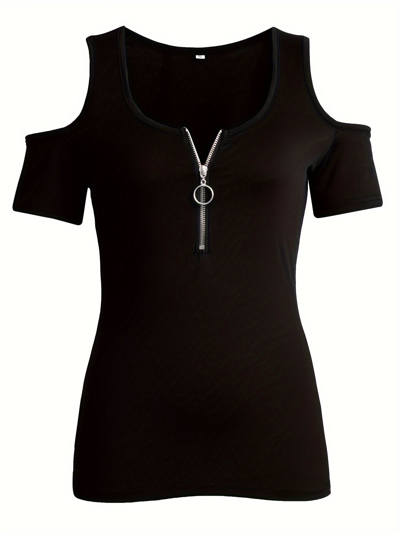 Discover the perfect blend of style and comfort with our Chic Solid Color Zip-Up T-Shirt. Ideal for layering or wearing solo, this t-shirt transitions seamlessly from day to night. Its modern design and soft fabric make it a must-have staple in any woman’s wardrobe. Embrace a chic casual look that you'll love to wear again and again.