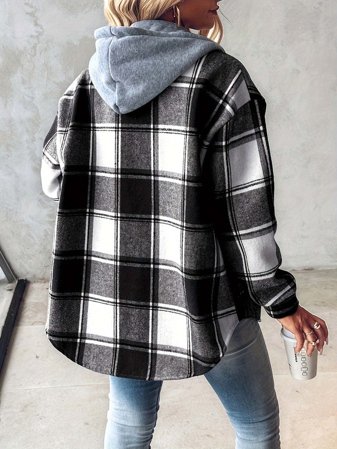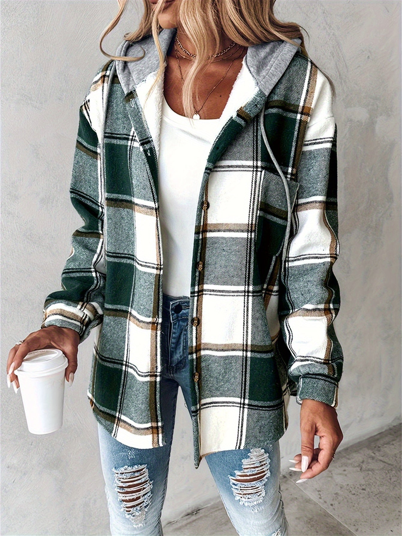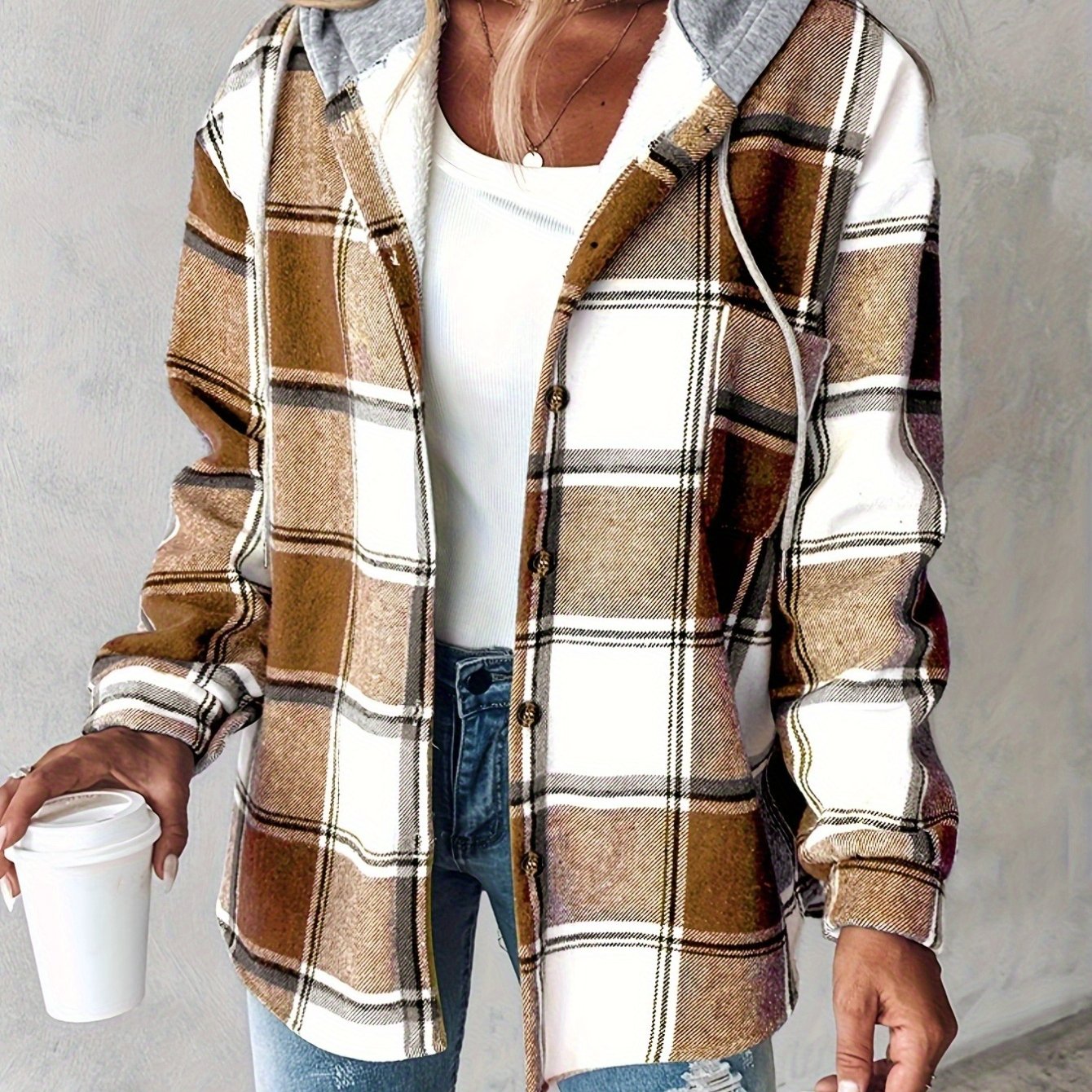 Elevate your fall or winter look with our Women's Hooded Plaid Jacket. This casual outerwear piece combines functionality with fashion, making it a must-have addition to your wardrobe. Perfect for layering, it pairs effortlessly with jeans or leggings while keeping you cozy and chic. Don't miss out on this stylish staple!