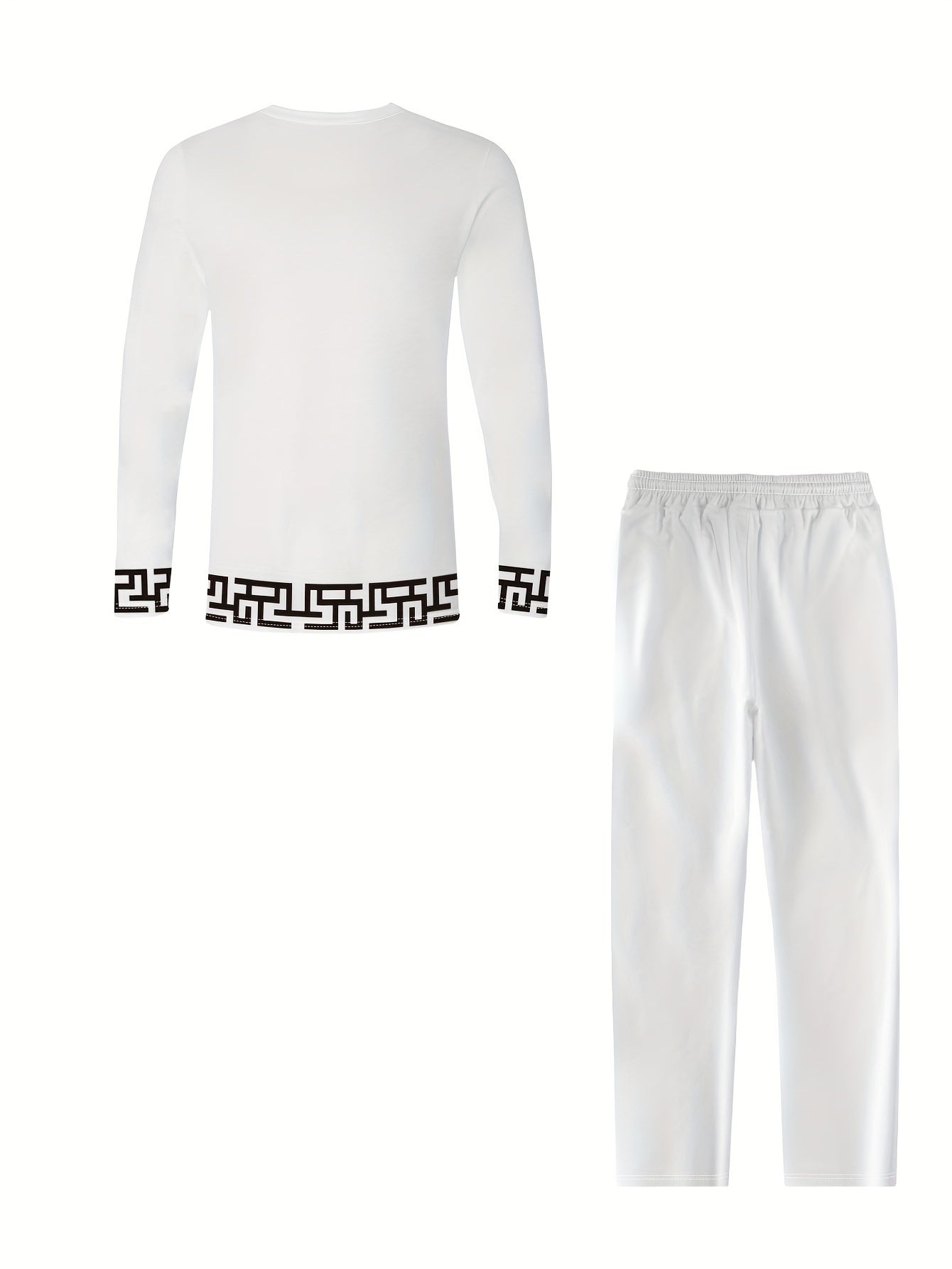 Elevate your wardrobe with this Men's Stylish White Long-Sleeve Pants Set, ideal for those who appreciate a blend of comfort and contemporary fashion. Its unique geometric design adds a touch of sophistication, ensuring you stay fashionable in any casual occasion. Don't miss out on this perfect addition to your all-season collection.