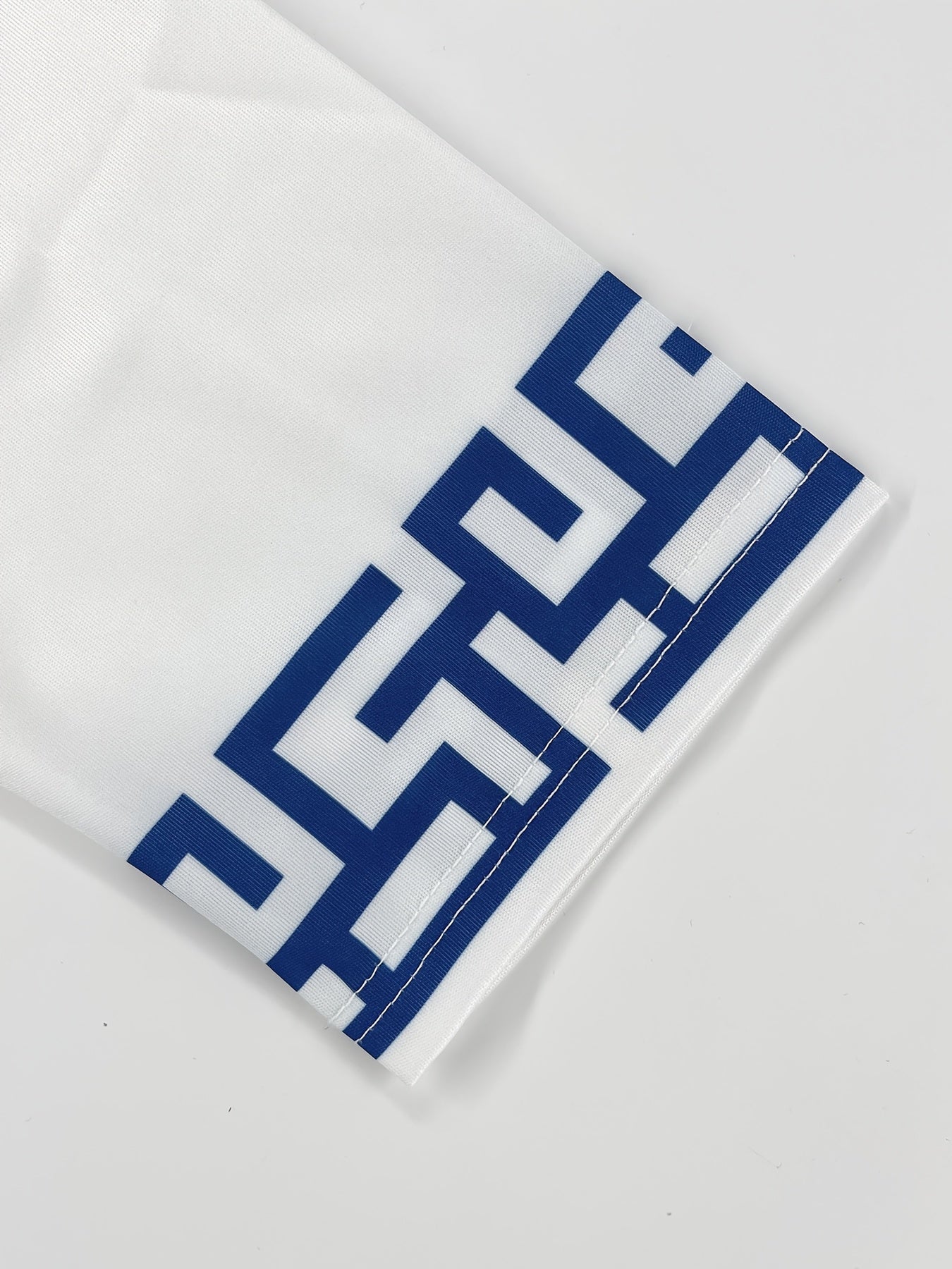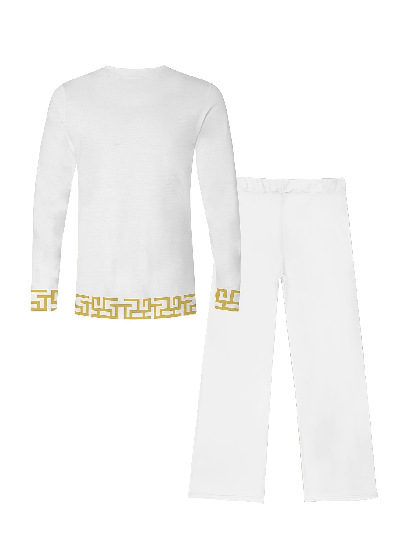 Men's Stylish White Long-Sleeve Pants Set - Blue Geometric Print