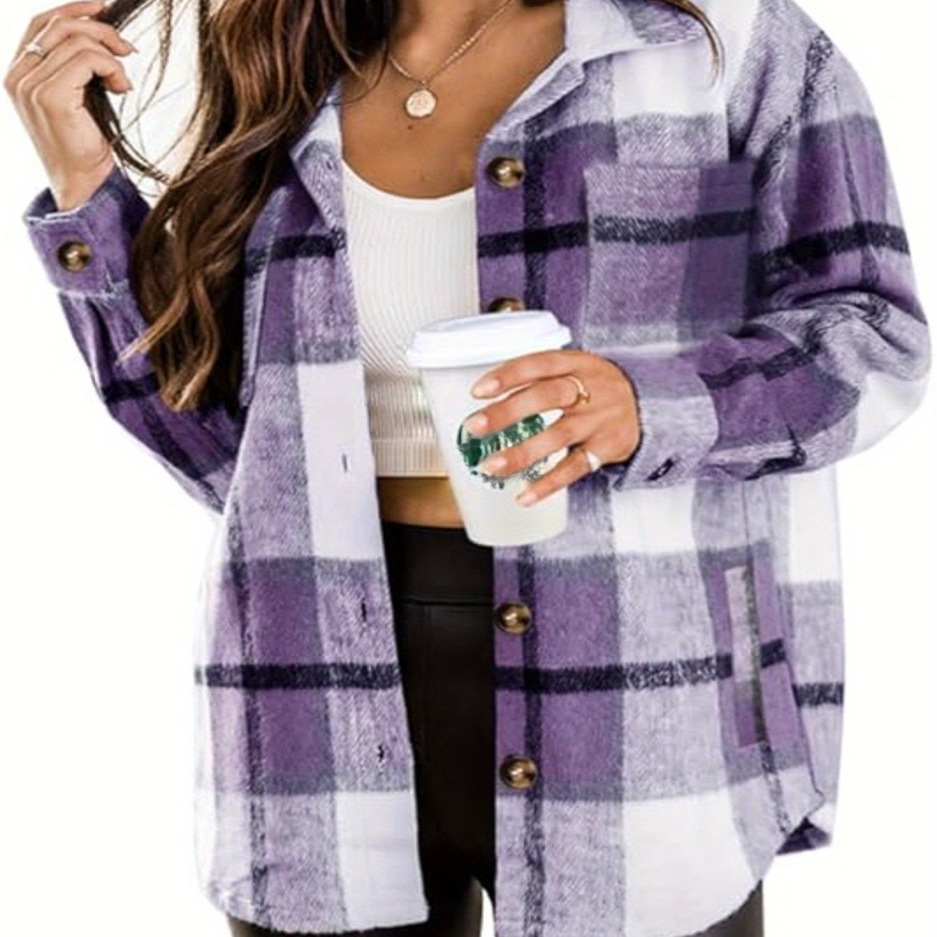 Discover the latest trend with our Women's 2025 New Season Plaid Shacket, expertly crafted from 100% warm polyester fabric. This stylish and versatile outerwear is ideal for daily commuting, casual outings, and romantic dates throughout the autumn season.