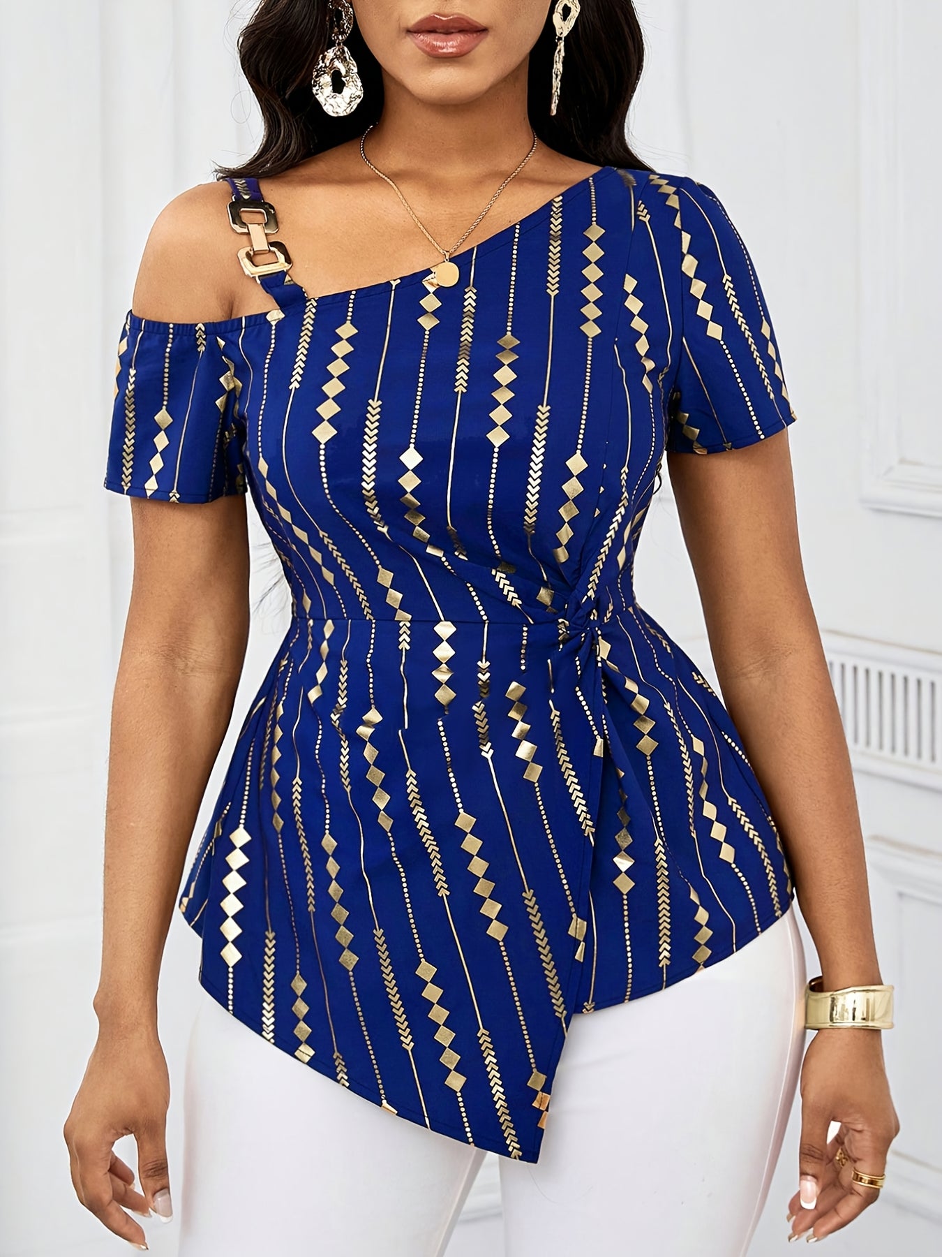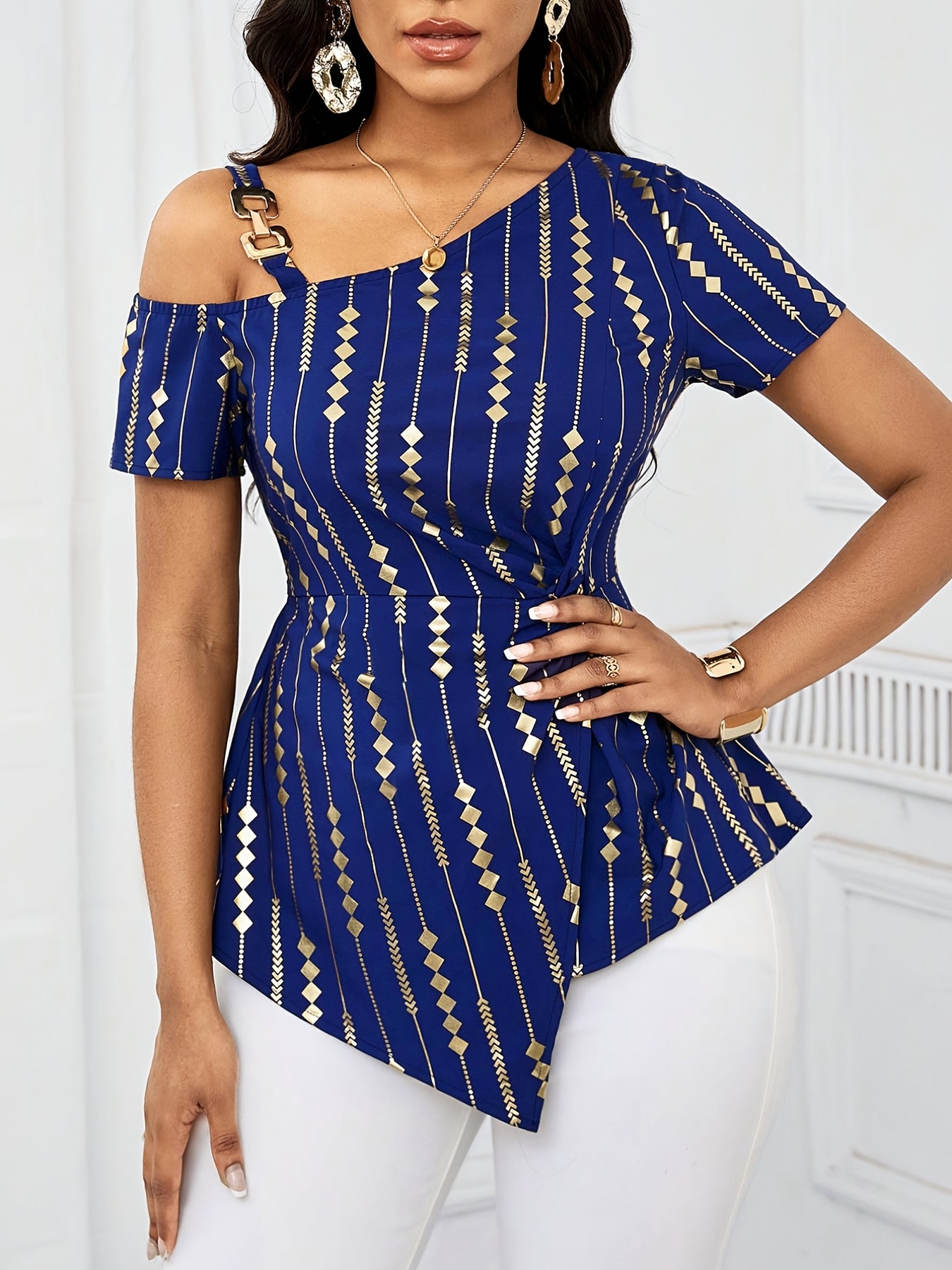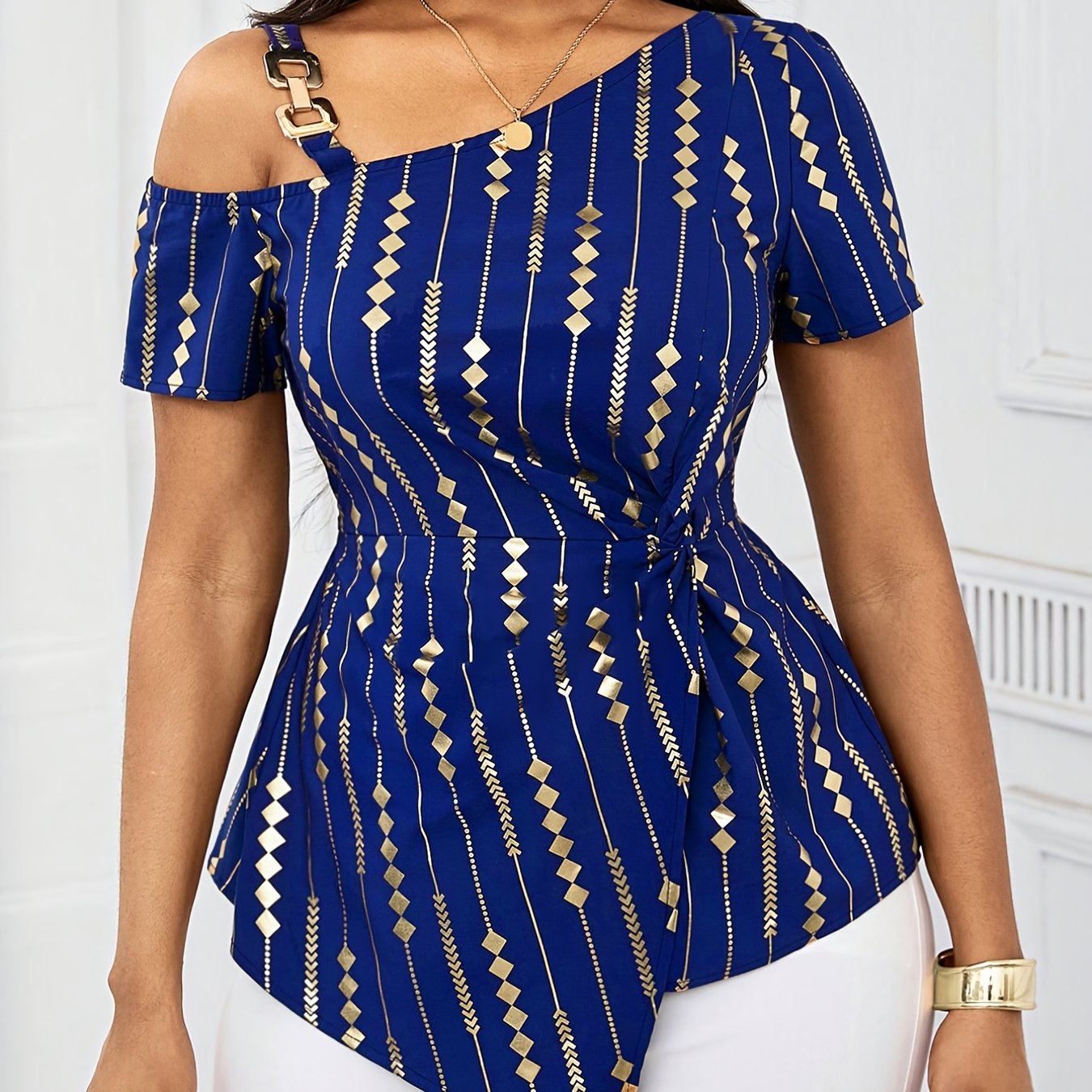 Elegant Off-Shoulder Geometric Blouse - Stylish Blue Summer Top