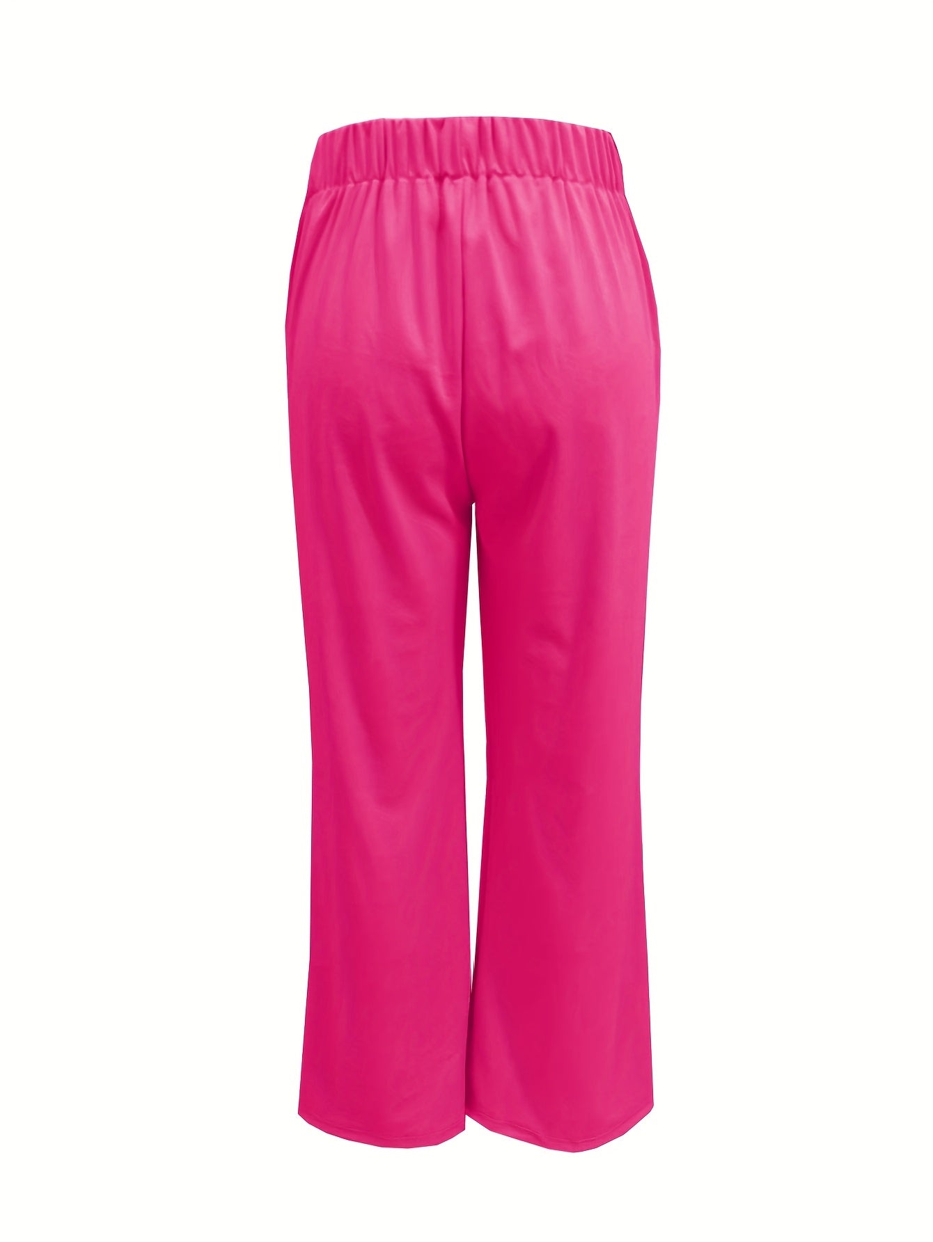 Introducing our Elegant Solid Color Wide-Leg Pants with a stylish metal chain detail, crafted from a stretchy polyester blend. These machine-washable pants are perfect for all seasons, offering a blend of comfort and sophistication for any occasion.