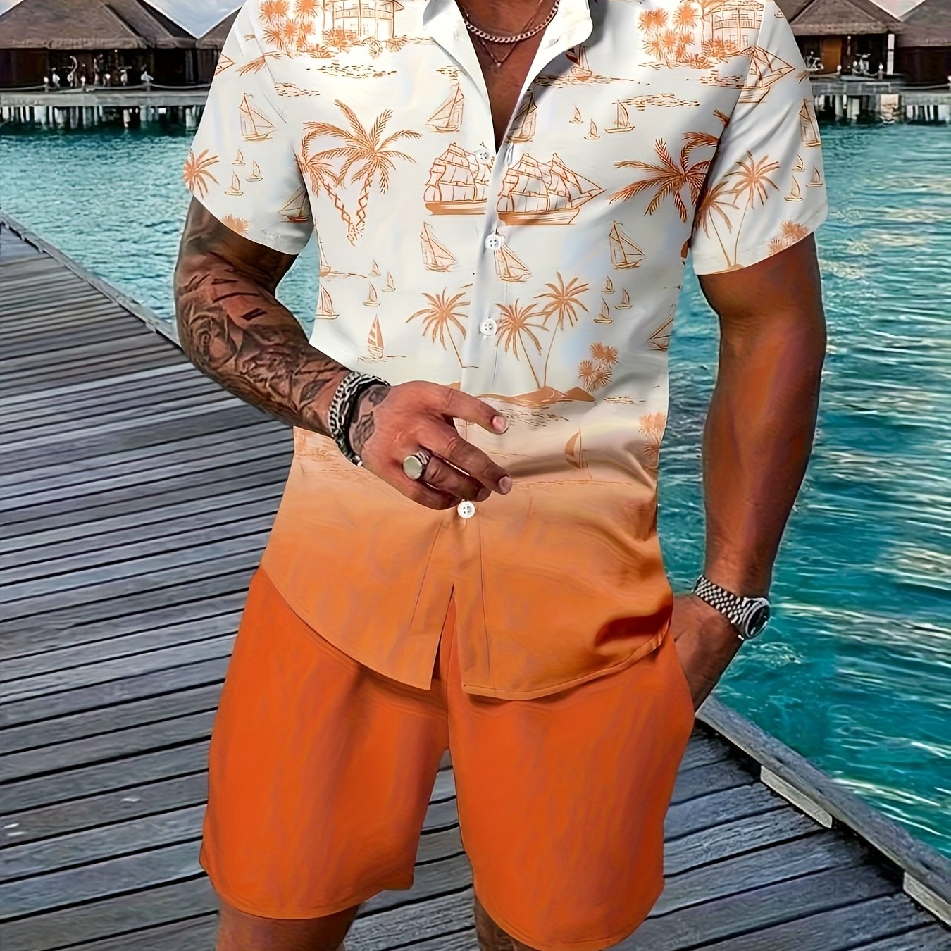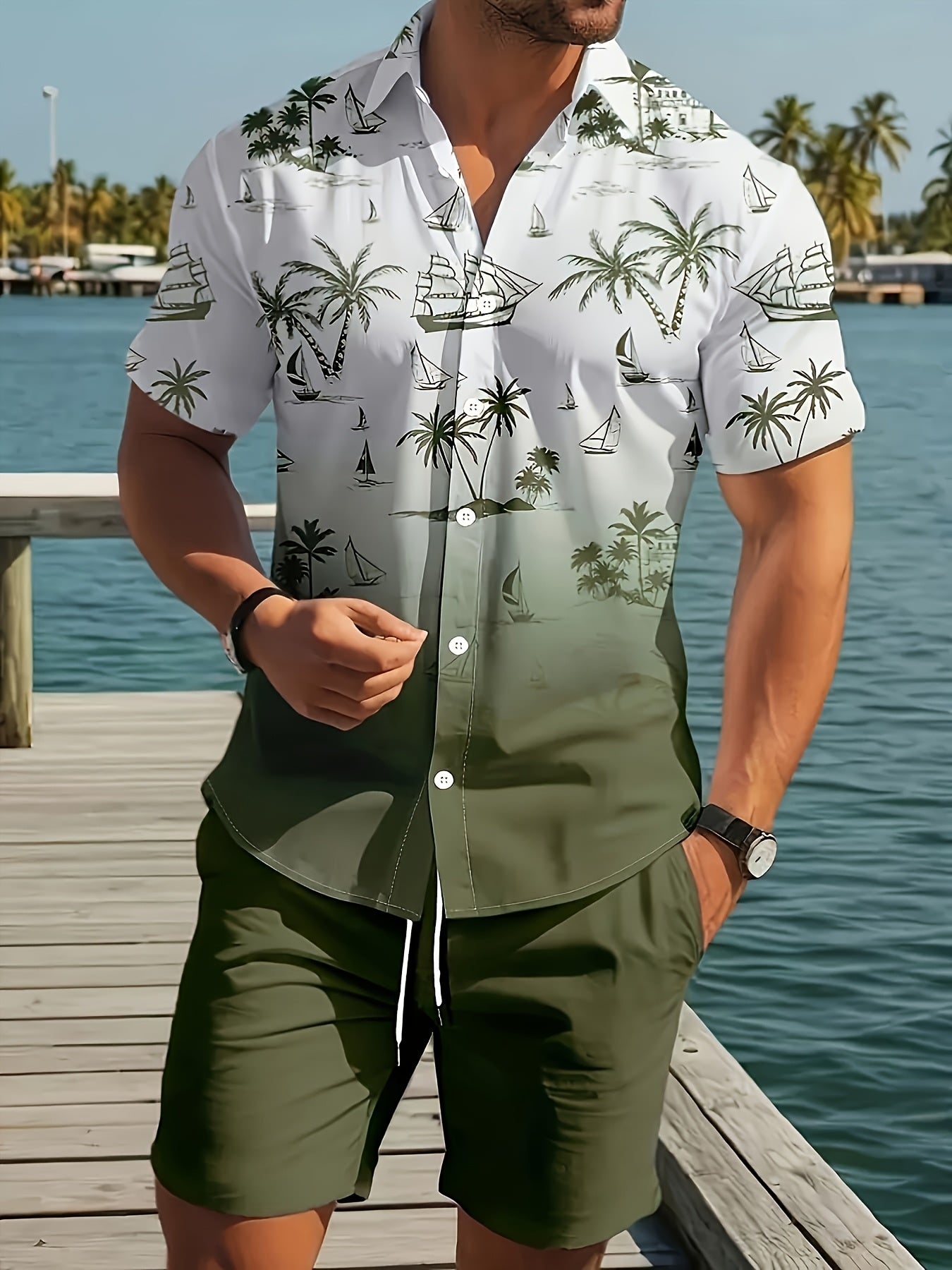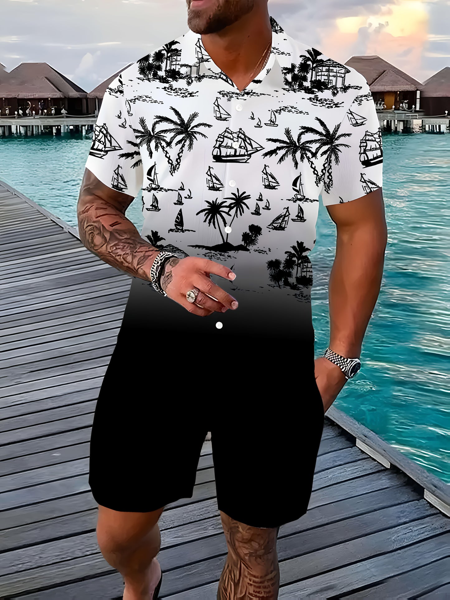 Men's 3D Printed Casual Shirt and Shorts Set - Vintage Lapel Style