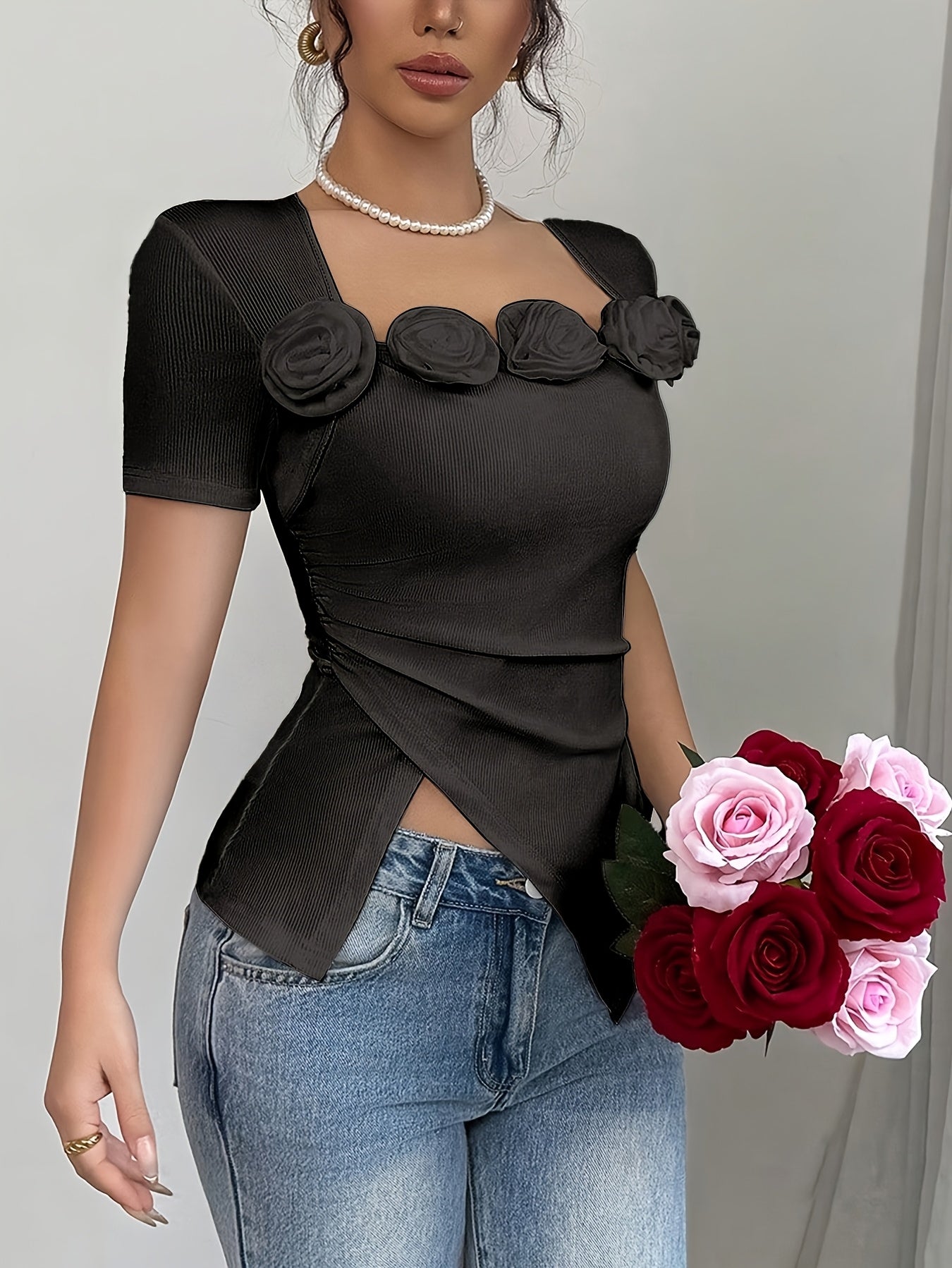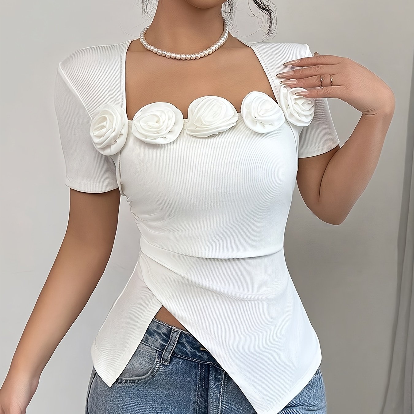 - Square neck collar for a flattering neckline