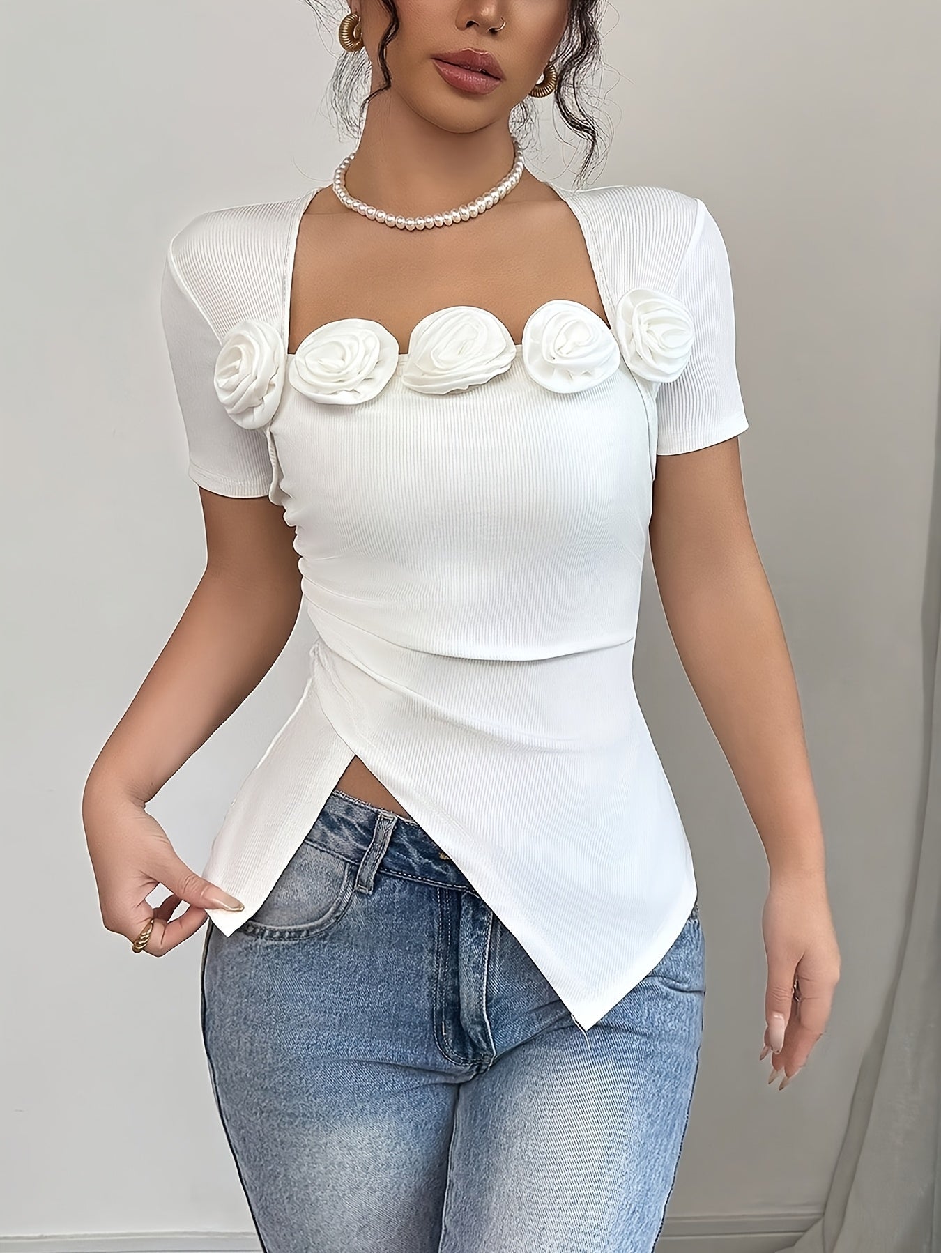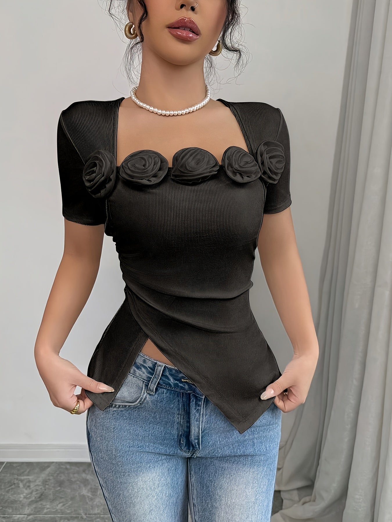 Elevate your summer wardrobe with our Women’s Elegant Asymmetrical Blouse. Crafted from a lightweight 95% polyester fabric, this semi-sheer square neck top combines comfort with style, making it perfect for weekend casual outings. The asymmetrical design adds a unique touch, setting you apart with effortless sophistication.