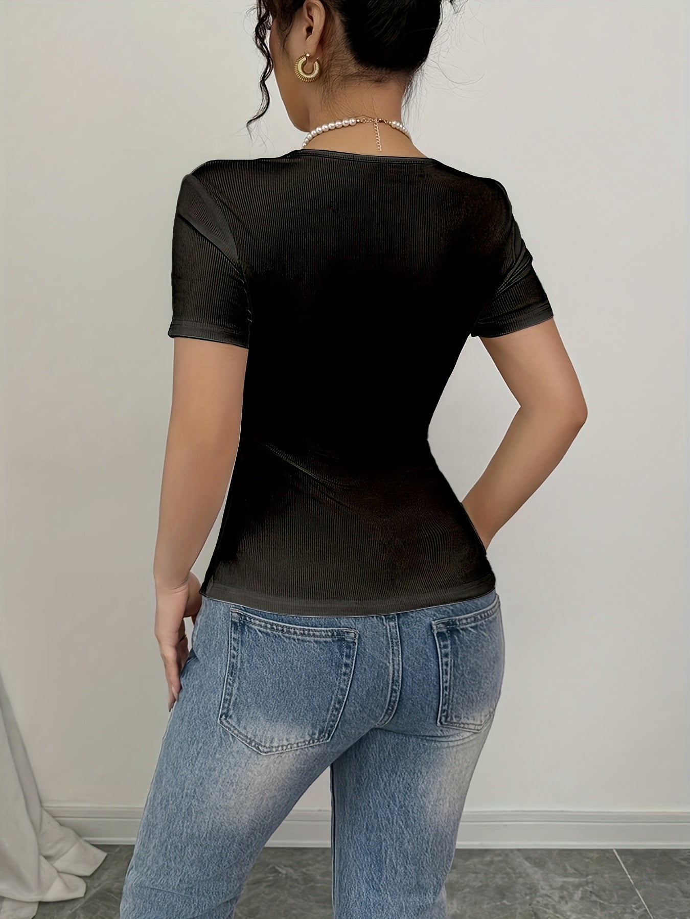 - Semi-sheer fabric offers a stylish layering option