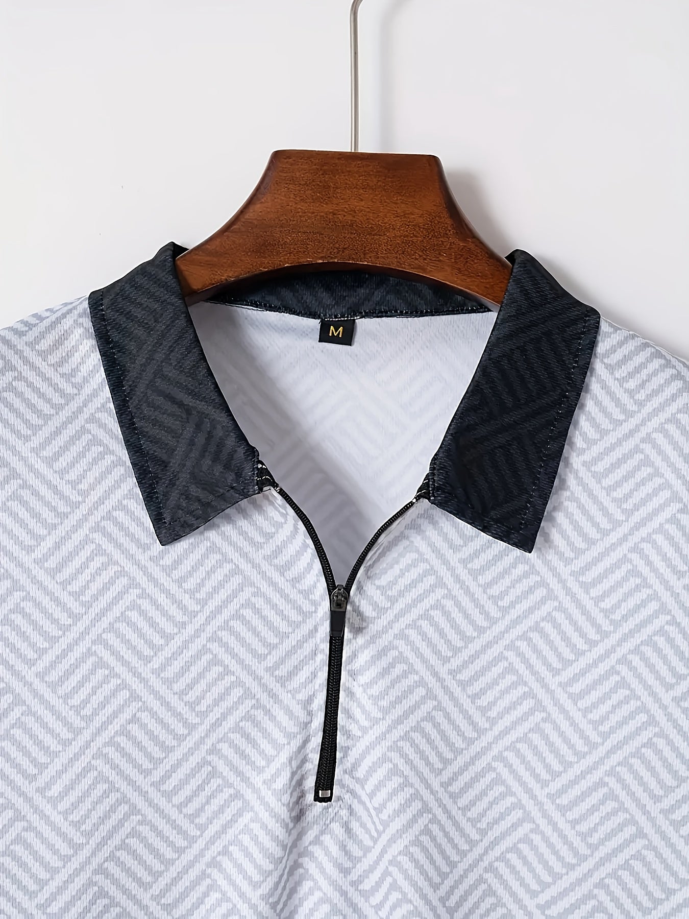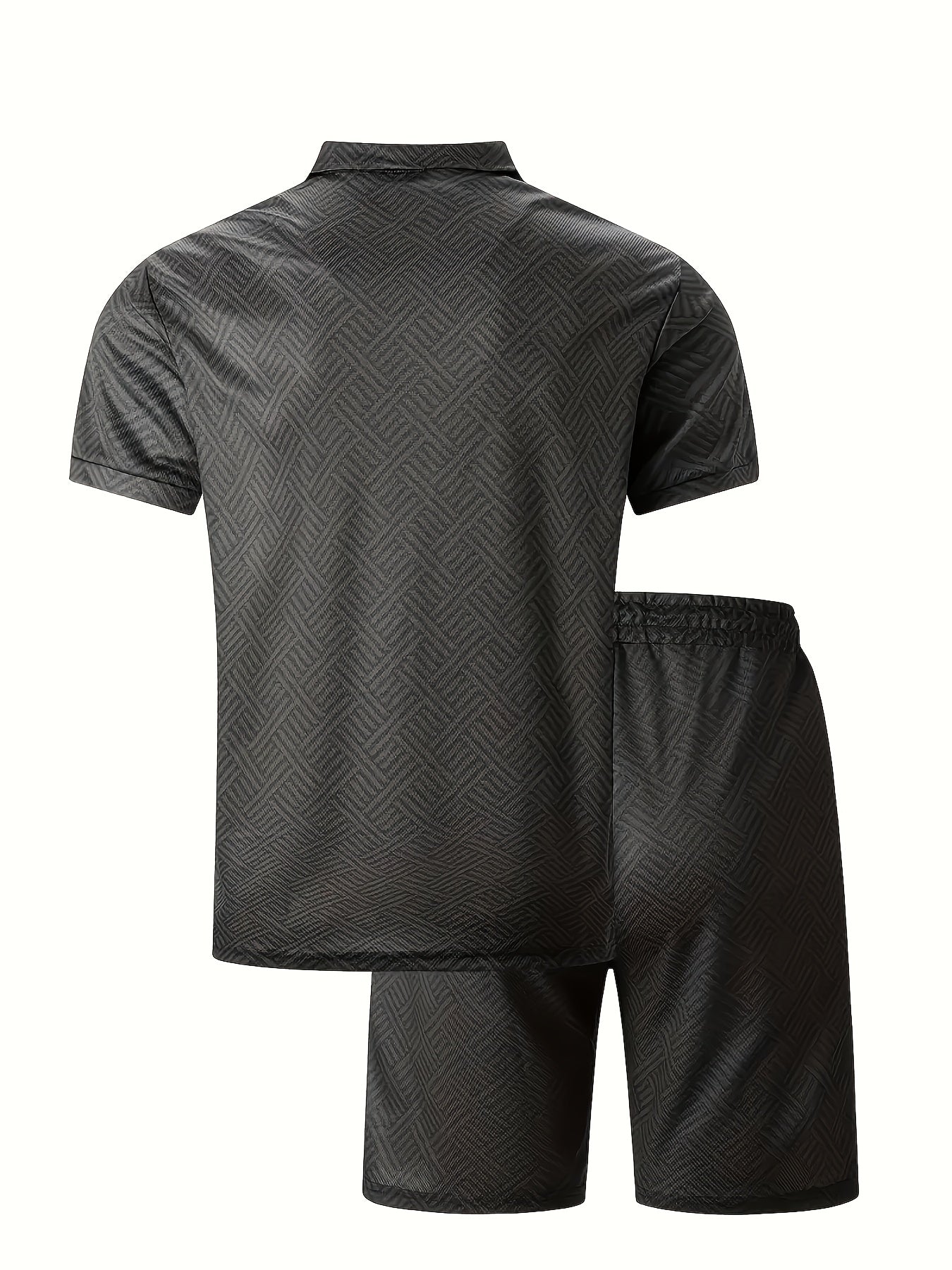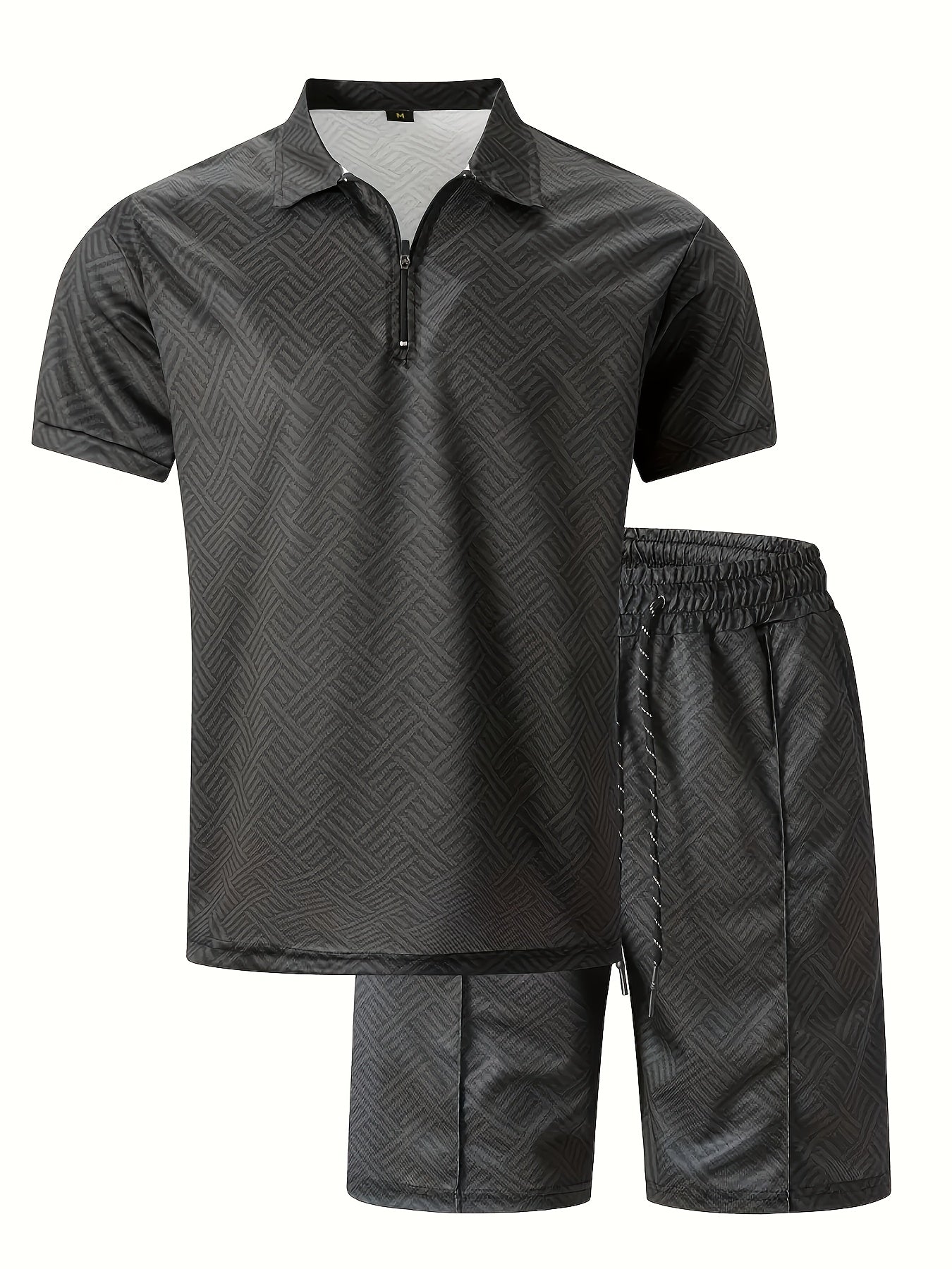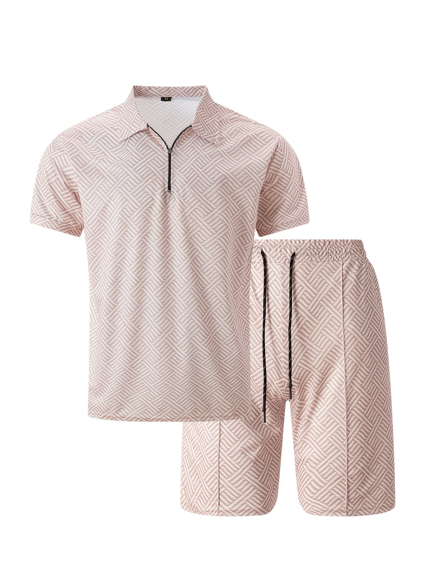 Men's Tropical Print Casual Outfit Set - Short Sleeve Zip-Up & Shorts