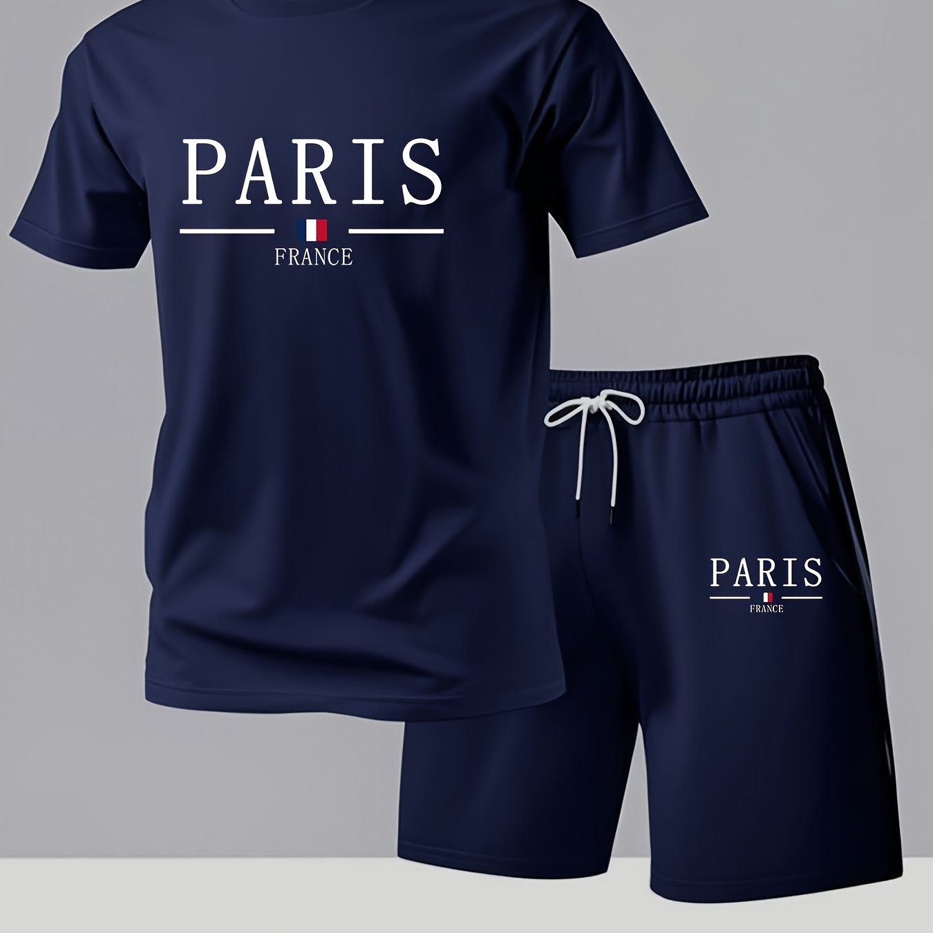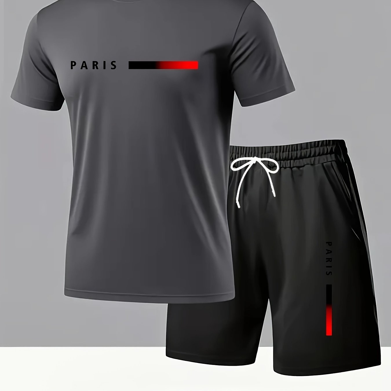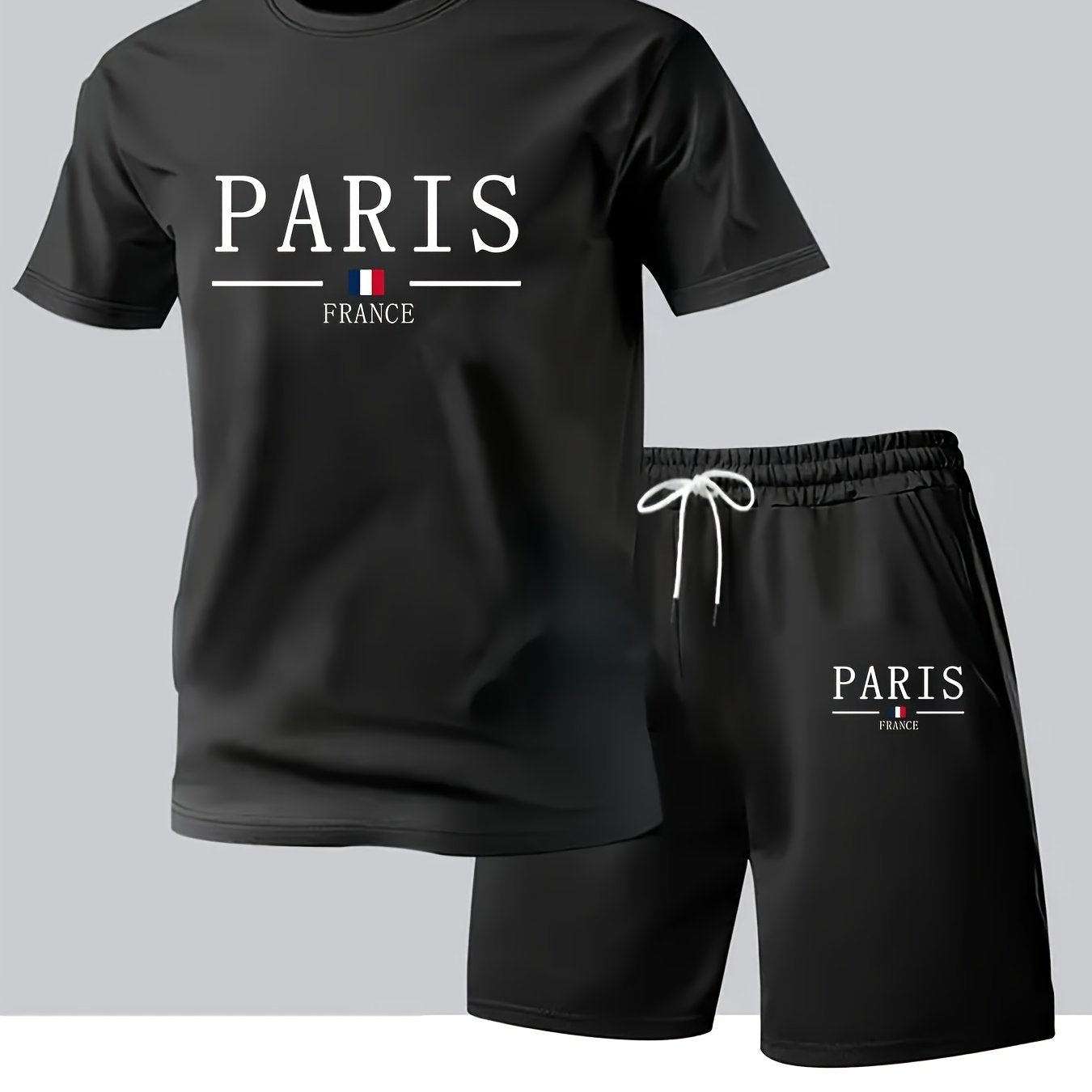 Elevate your summer wardrobe with the Paris Gradient Letter Print Men's Set, which features a casual crew neck T-shirt paired with comfortable shorts. Designed for versatility and comfort, this set is perfect for any casual outing.
