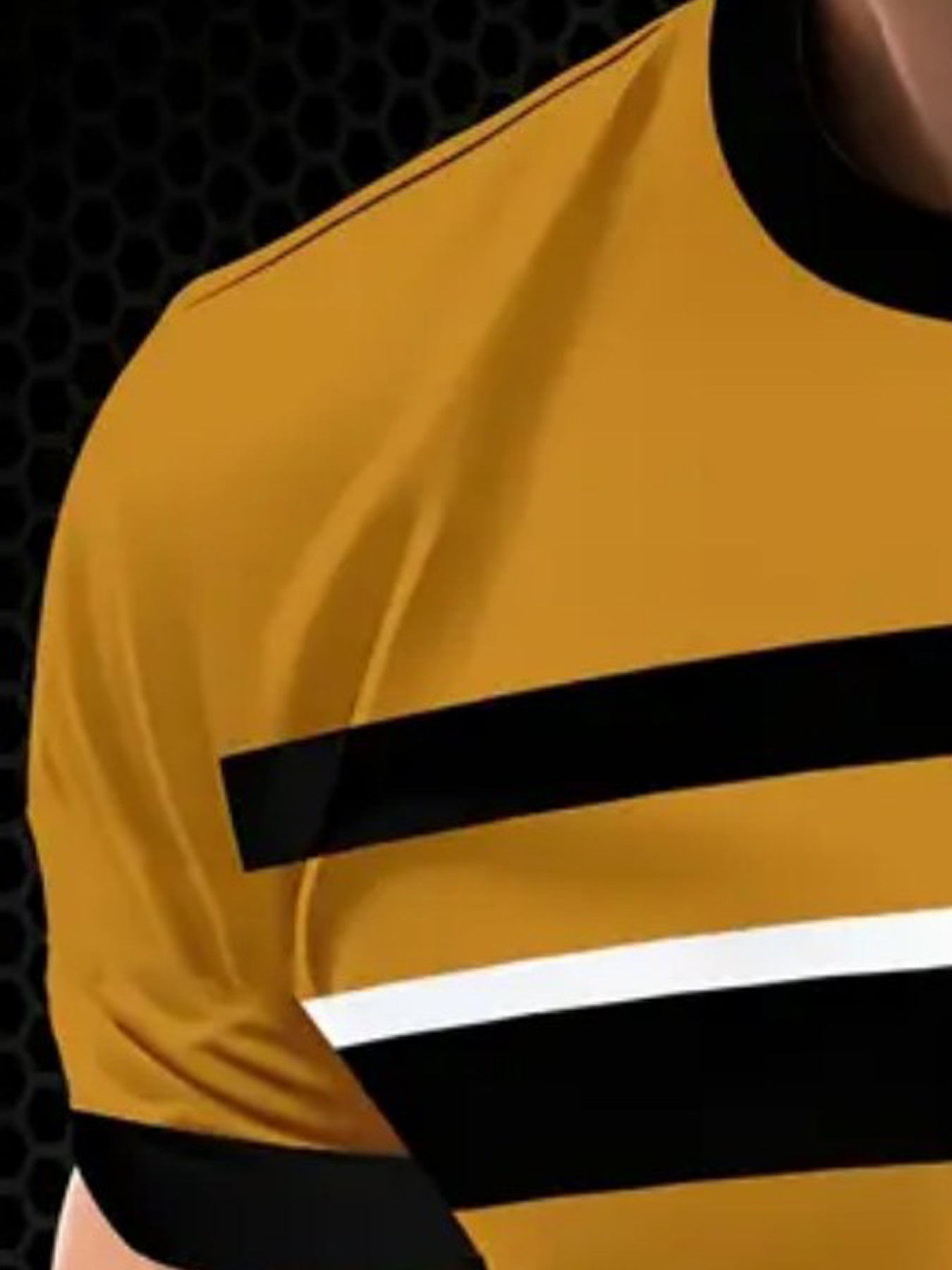 Elevate your summer wardrobe with this fashionable Golden digital printed T-shirt. Its comfortable stretch fabric and mature style make it an excellent choice for weekend outings, while the standout design ensures you make a stylish statement. Whether treating yourself or finding the perfect gift, this T-shirt is a must-have for any fashion-conscious individual.