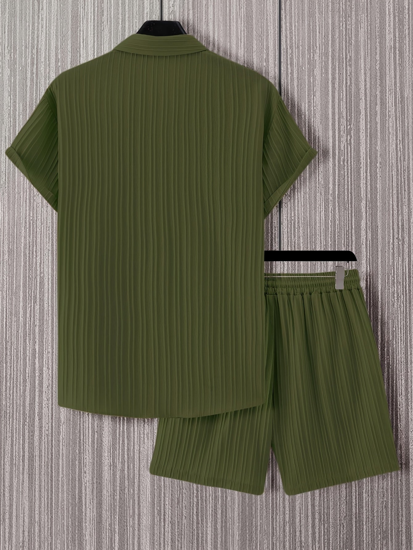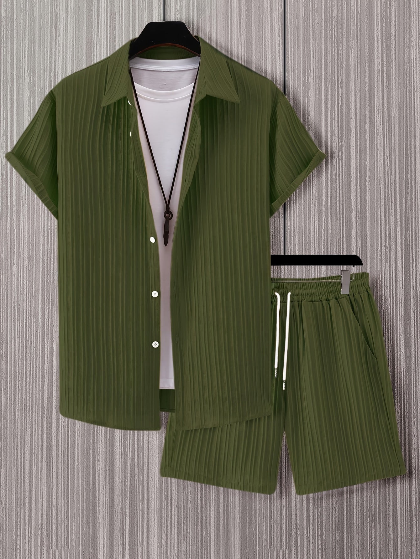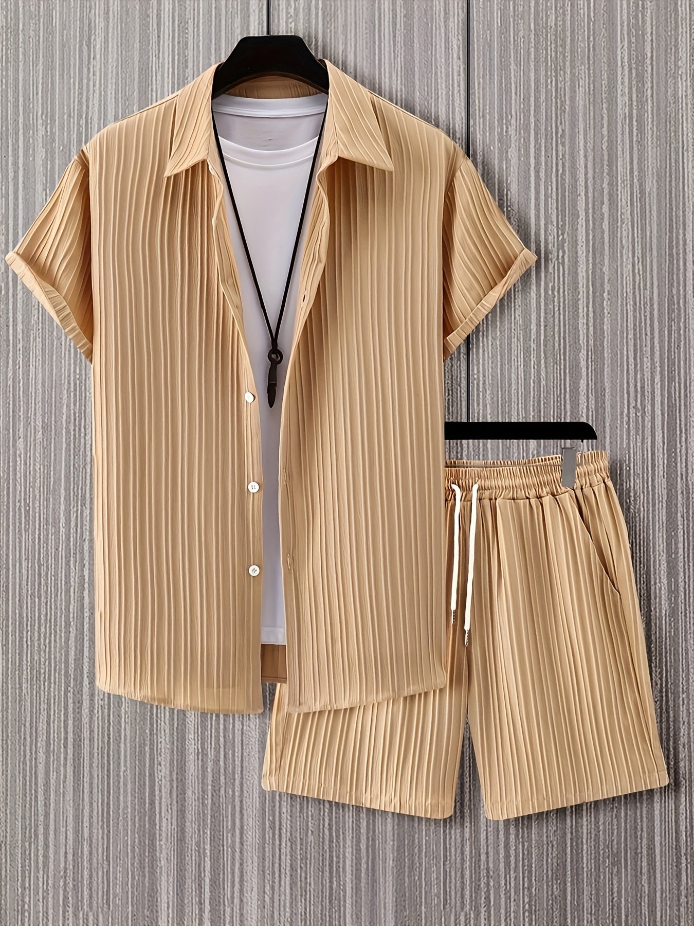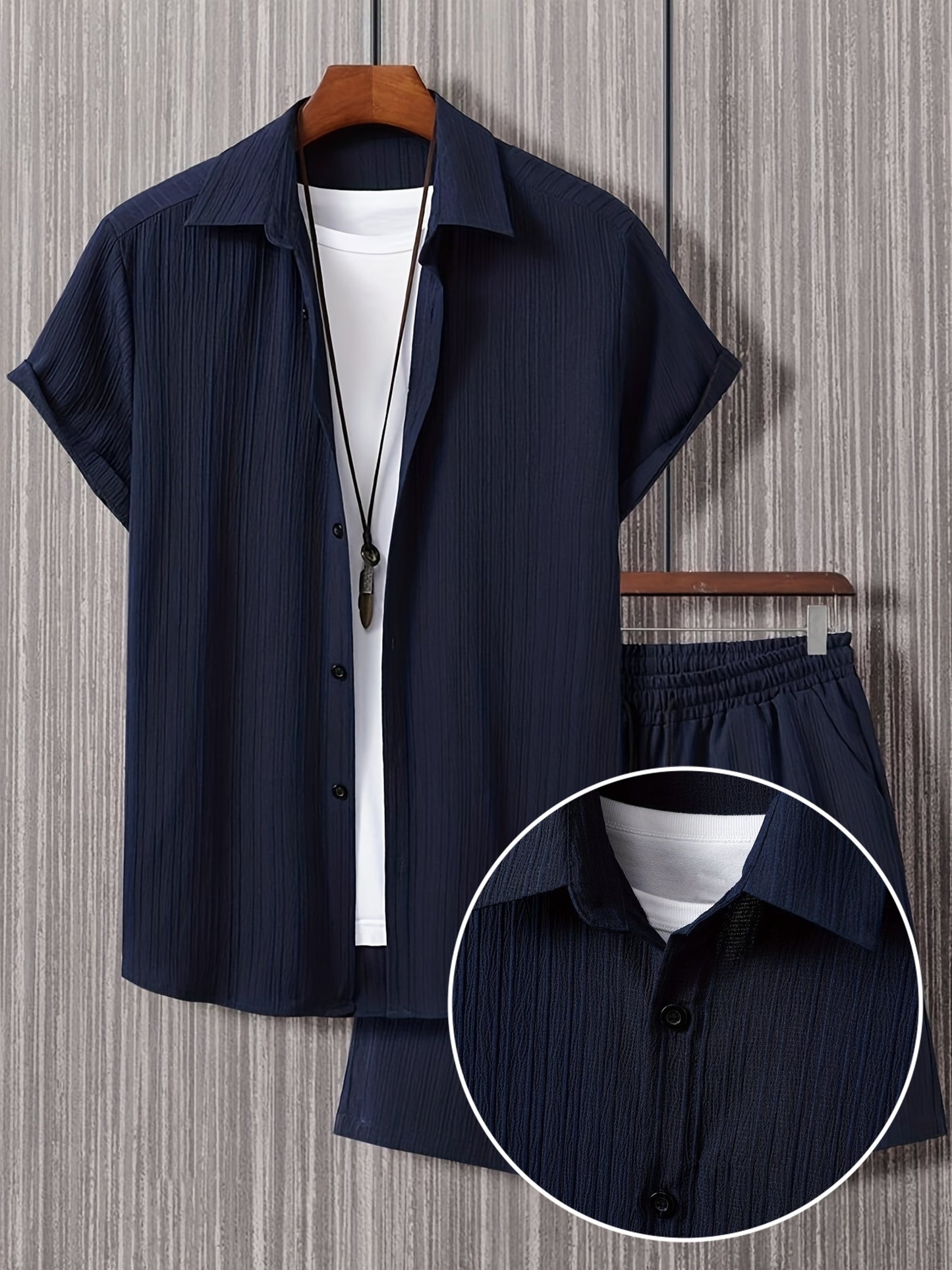 Men's Relaxed Solid Color Button-Up Shirt Set - Casual Summer Style